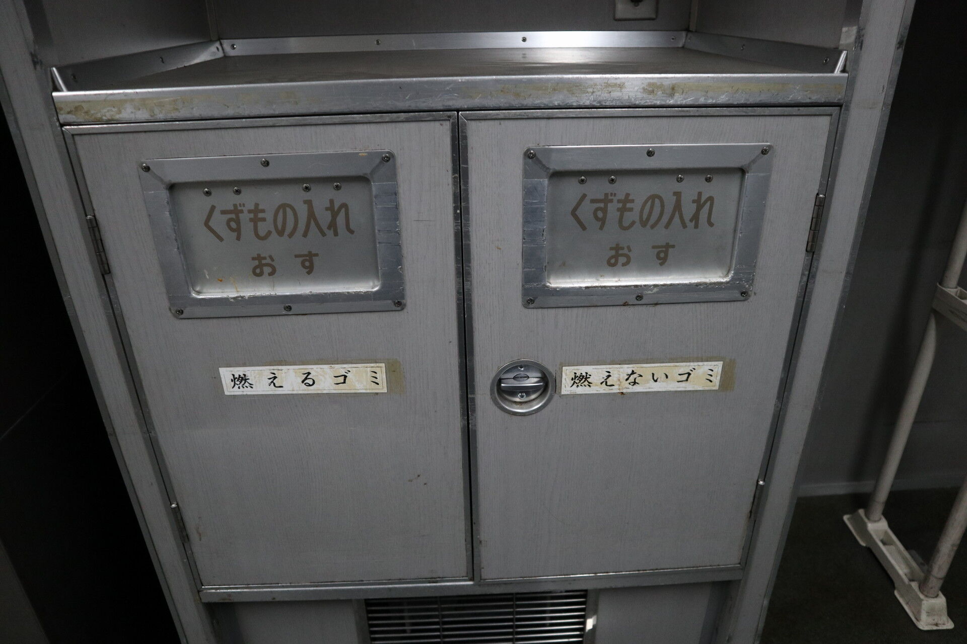 くずもの入れ 分別ステッカーが貼られたままです。