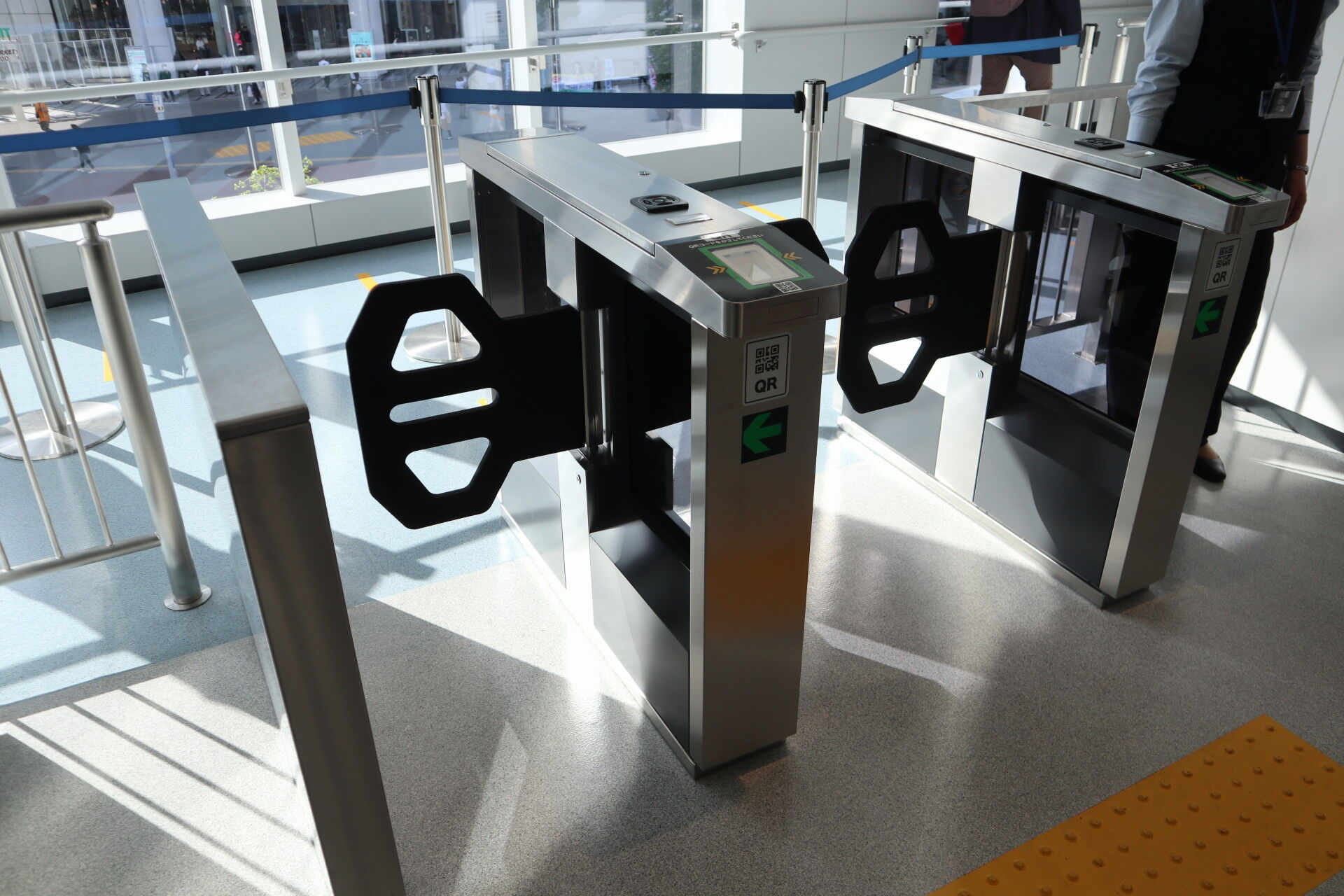 改札機にQRコードをかざして通過します。
