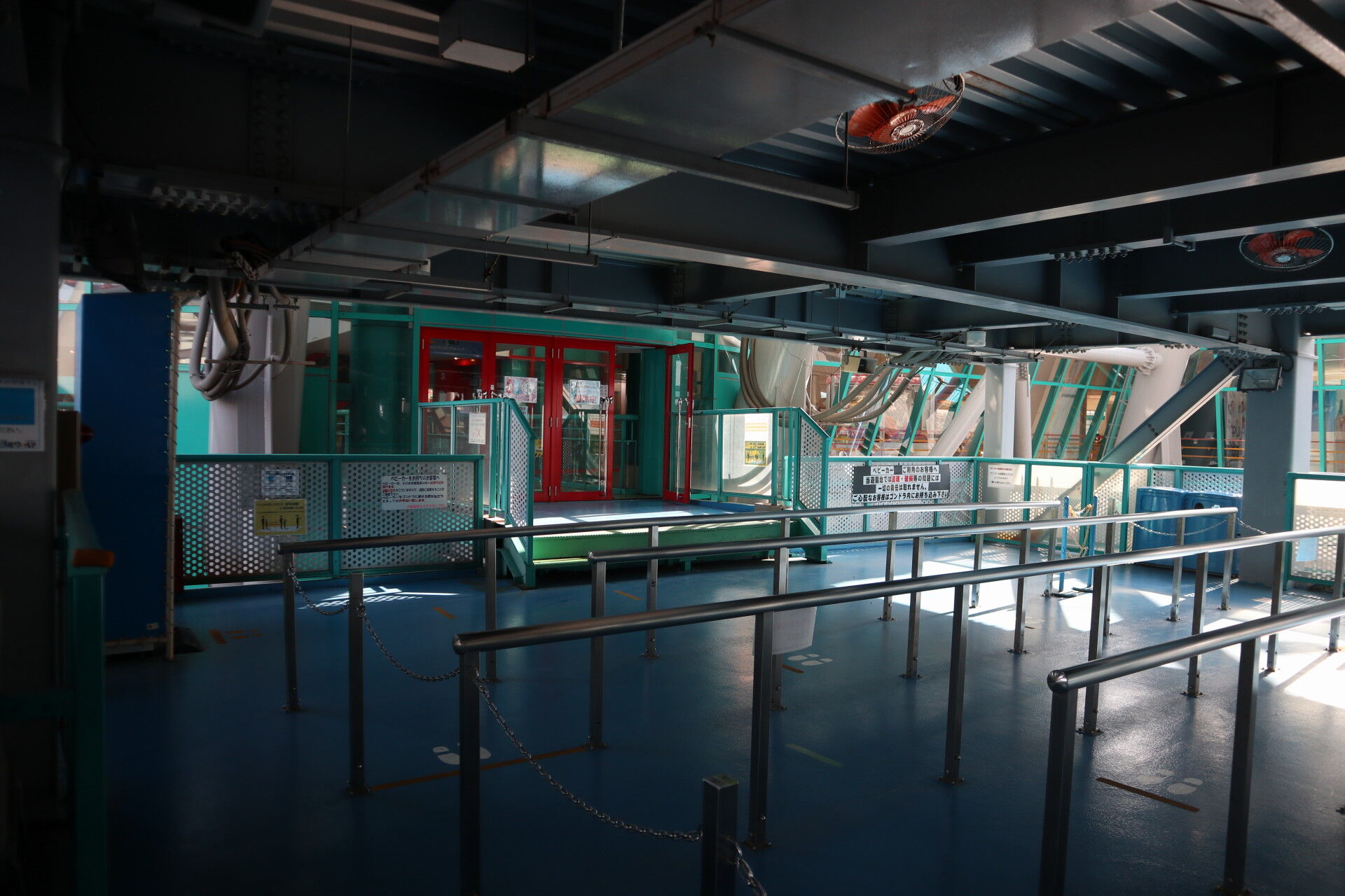 デッキから、ゴンドラが到着する様子を眺めます。