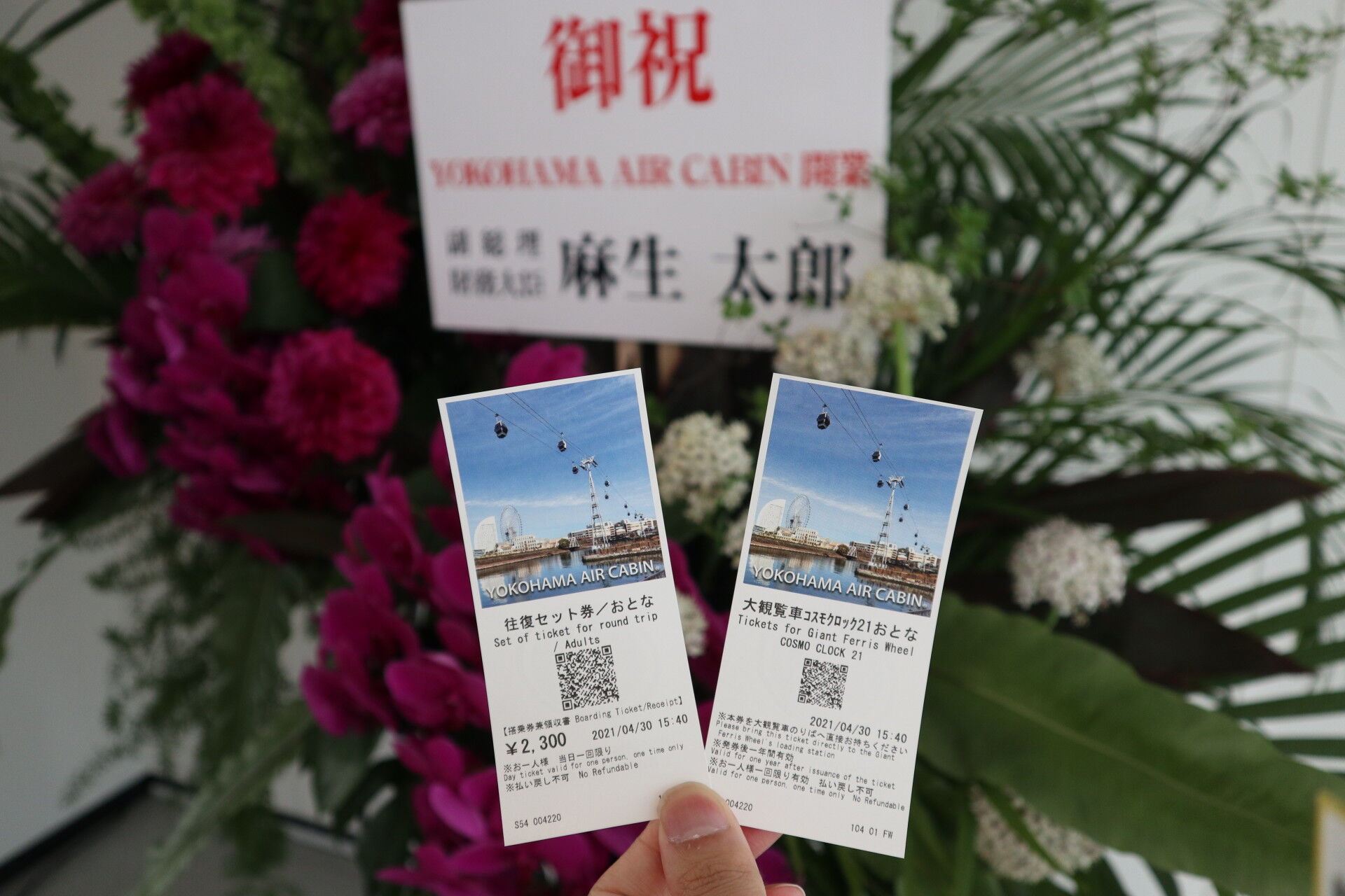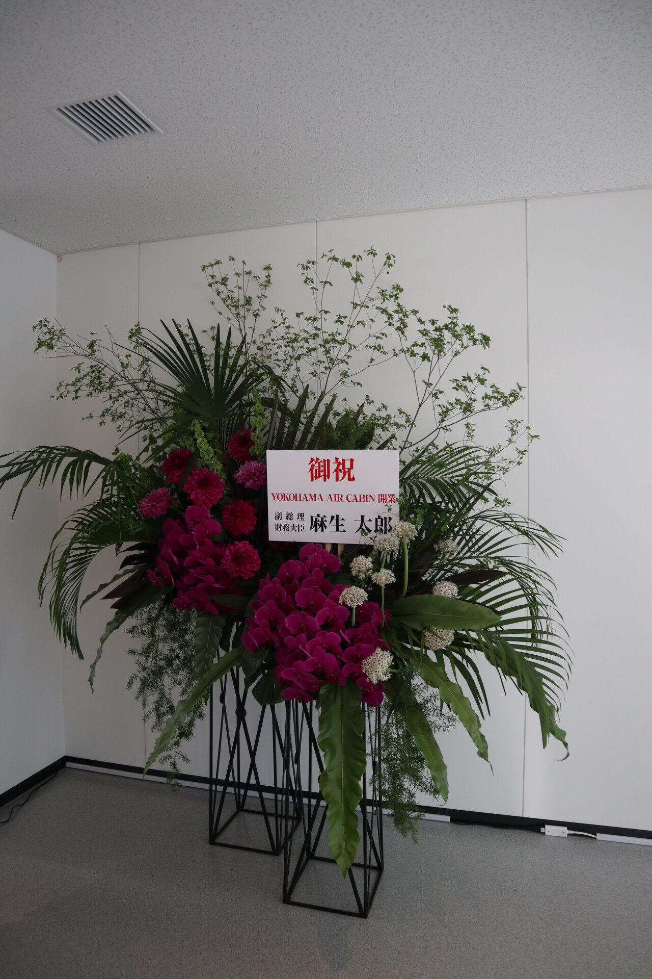 後ろには麻生太郎副総理のフラスタが。