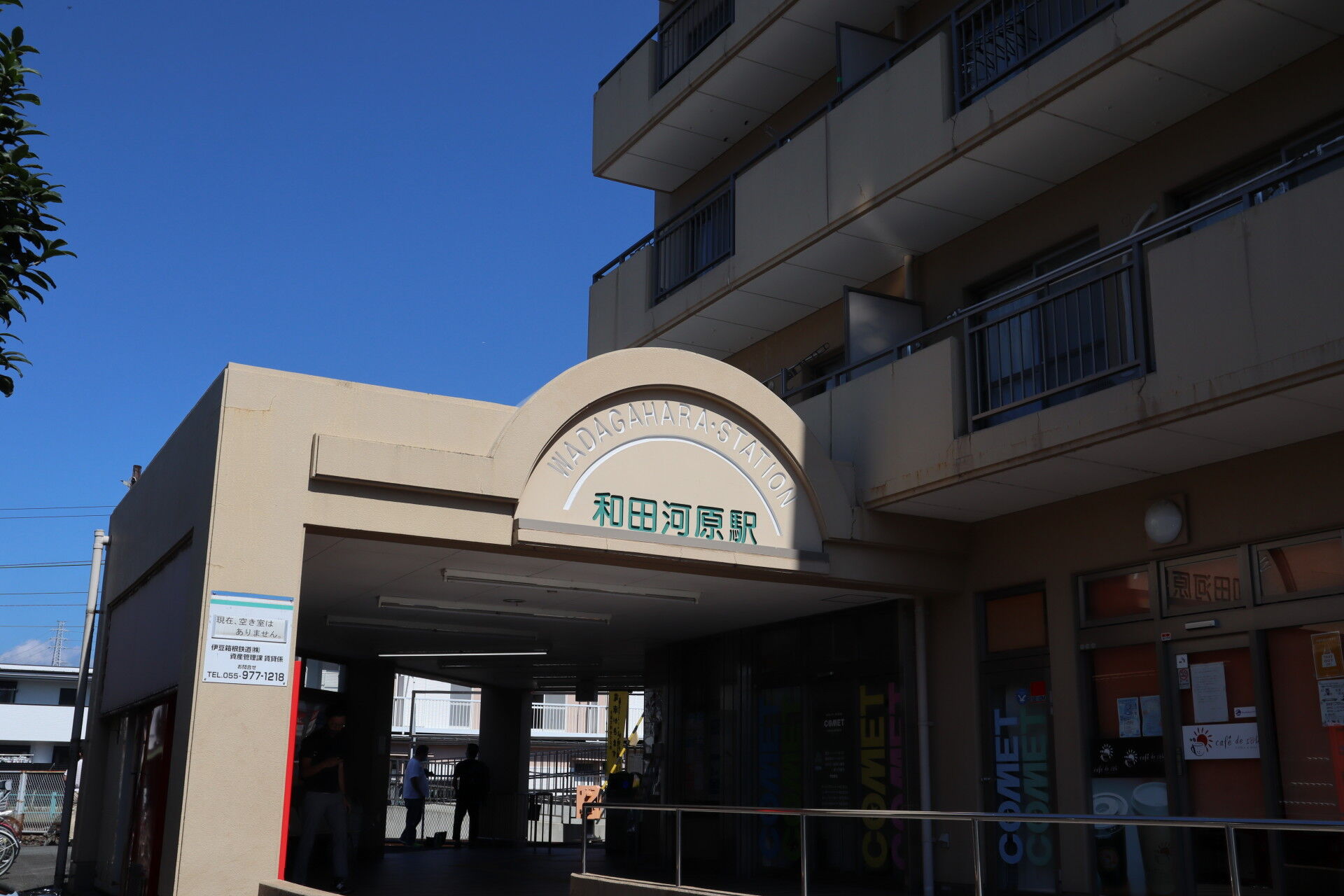 なんとアパートと駅が繋がっているという不思議な駅舎。大雄山線にはこのようなスタイルの駅舎が五百羅漢とここの2駅あります。