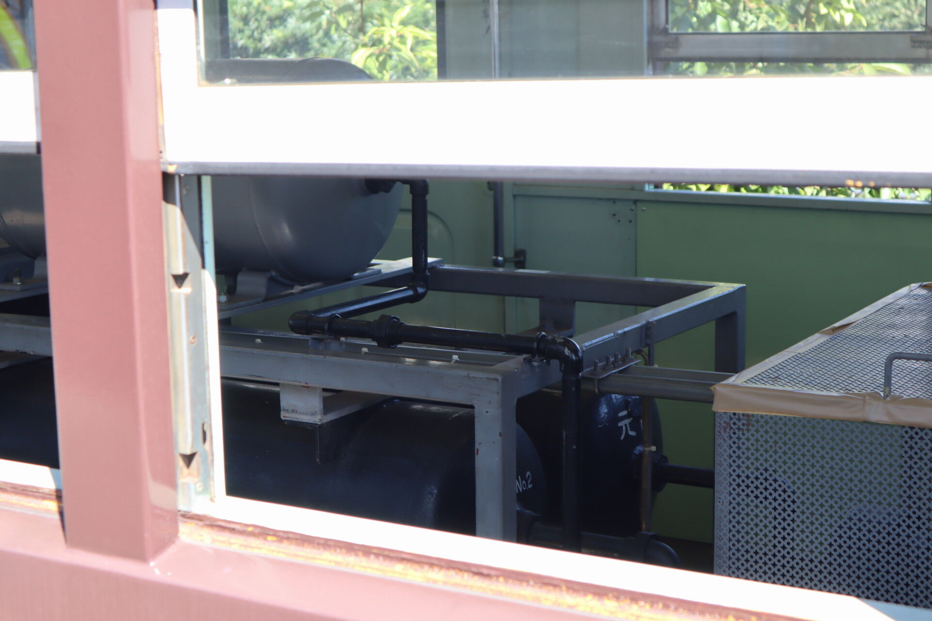 おそらくは貨車や電車を牽引するための空気をここで供給するのでしょう。