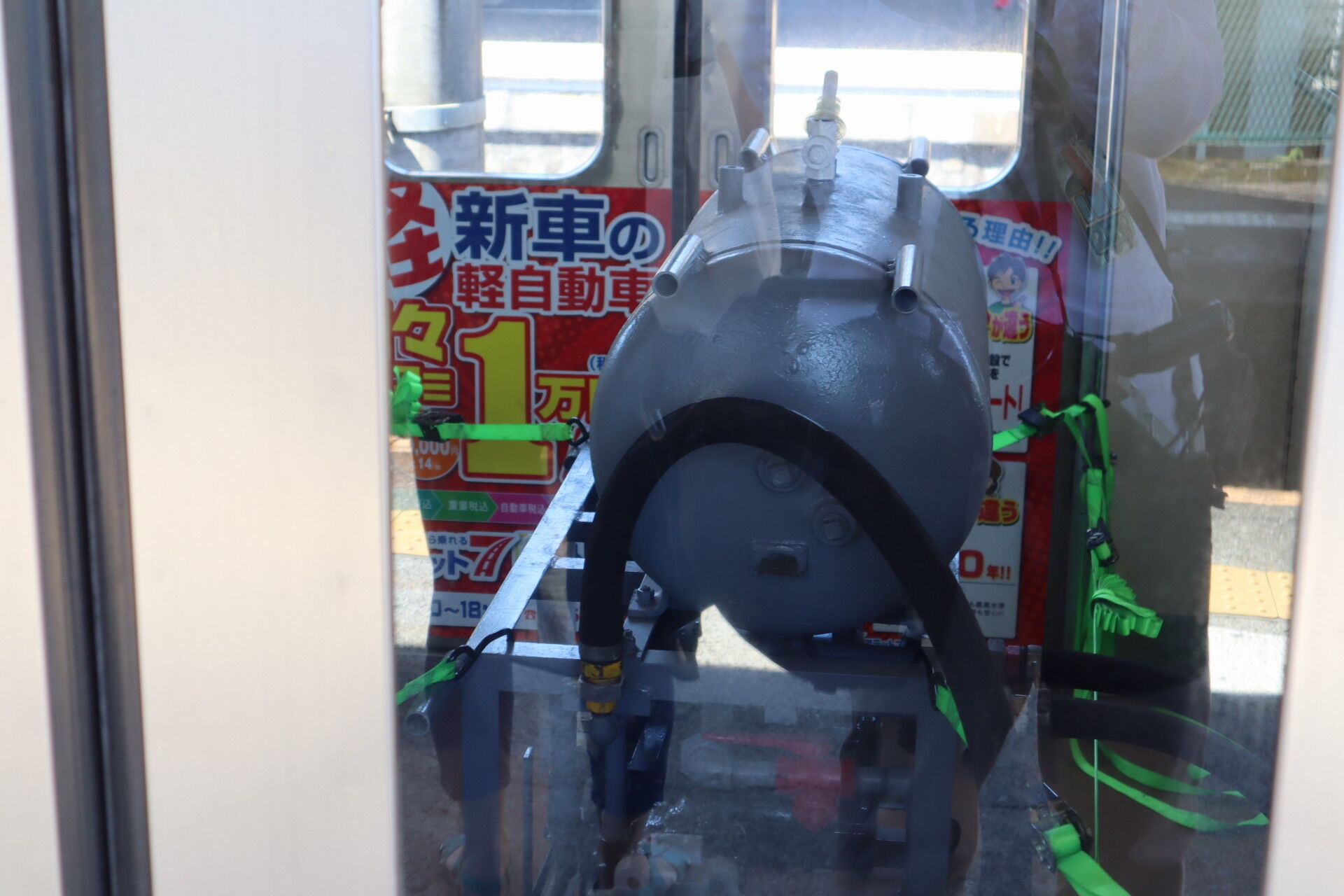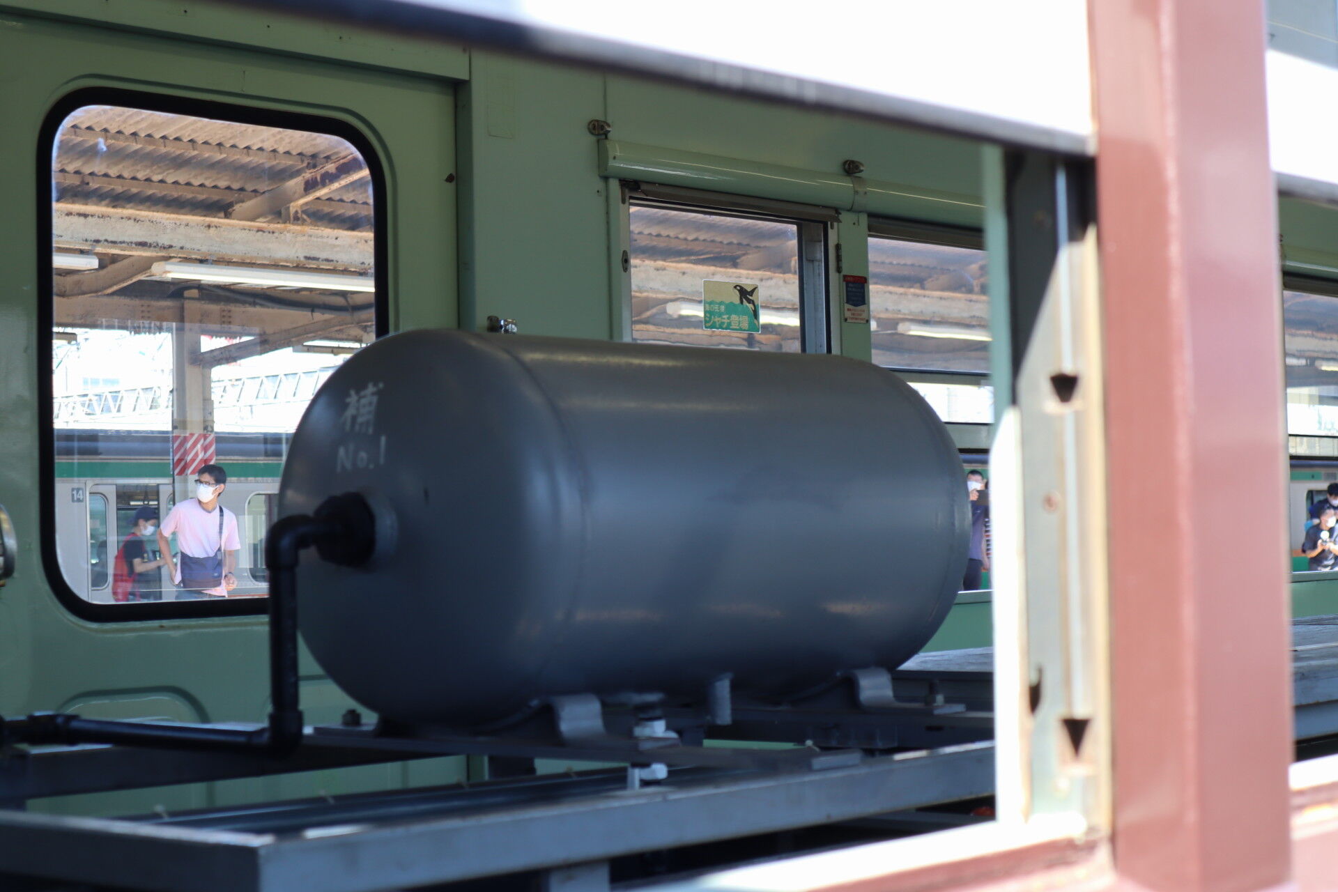 そのためにこのエアータンクを仮設するようですね。3年に1度しか使わないから各車に付けるより経済的というところでしょうか。