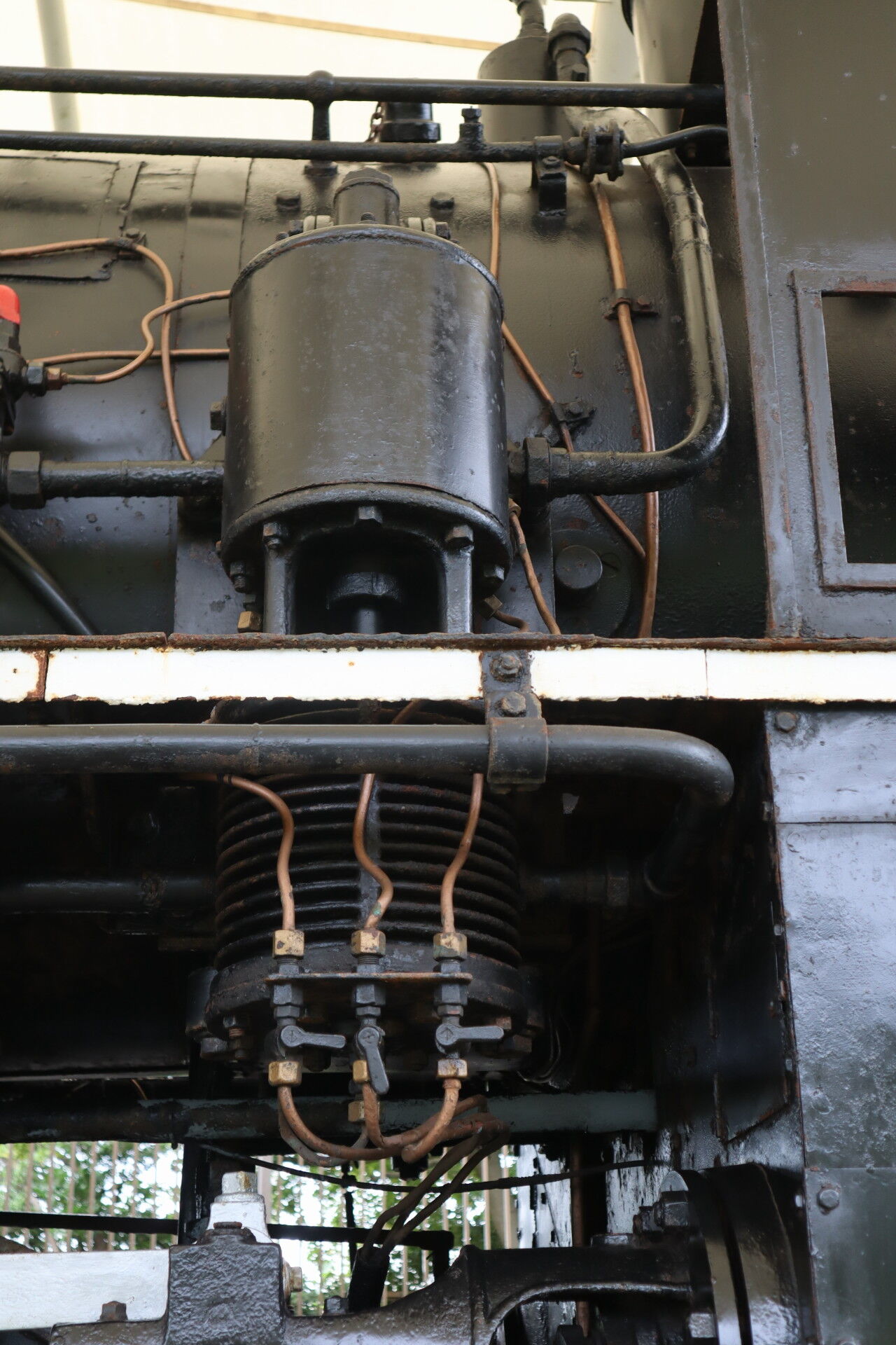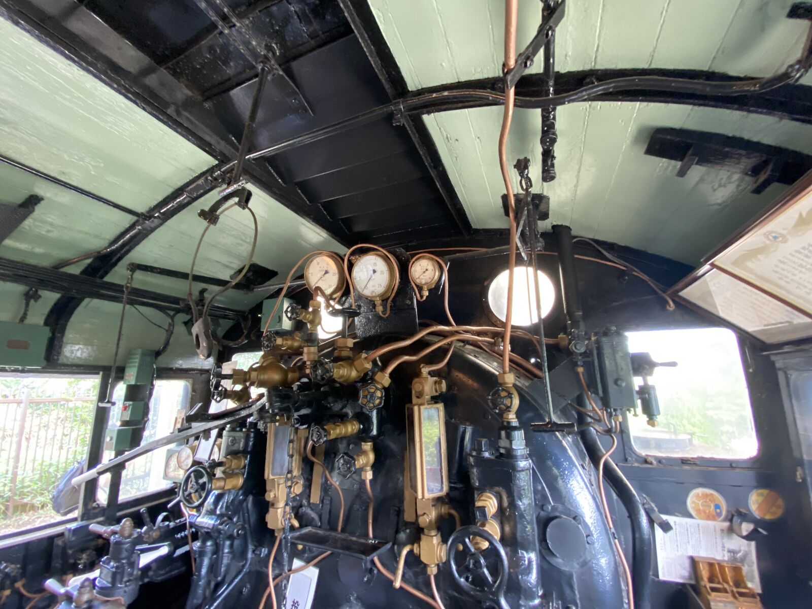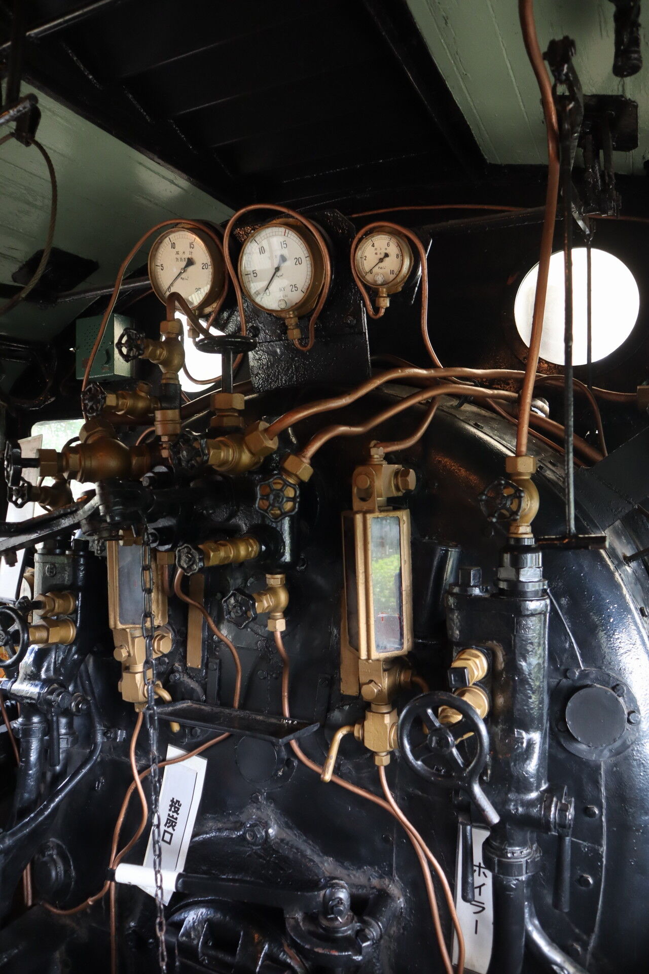 右の水位計の右にある管は水槽からボイラーに水を入れる注水器のハンドルのようです。