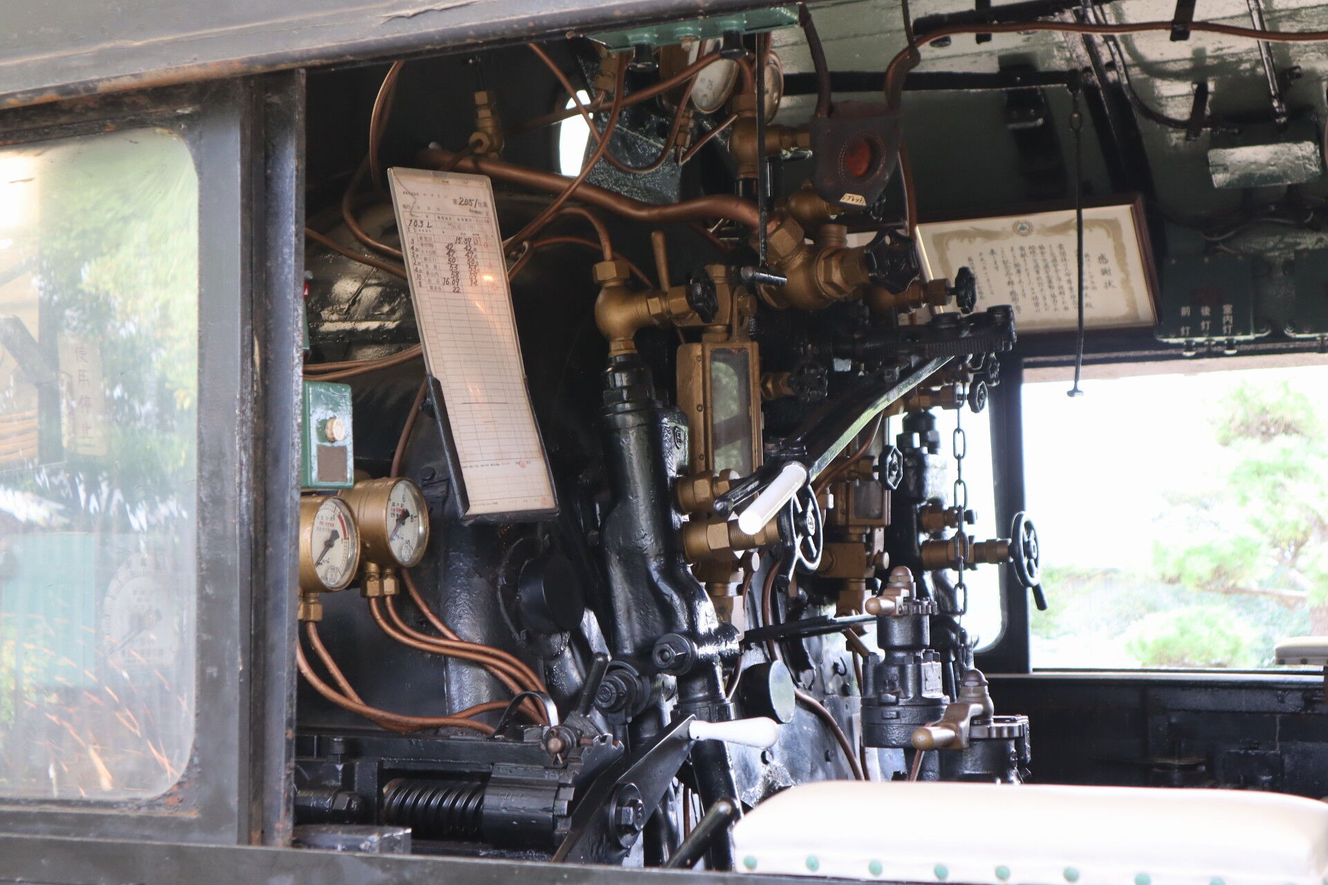 特に操作機器はなく、どちらかというと機関士の死角となる右側の監視用の窓ですね。