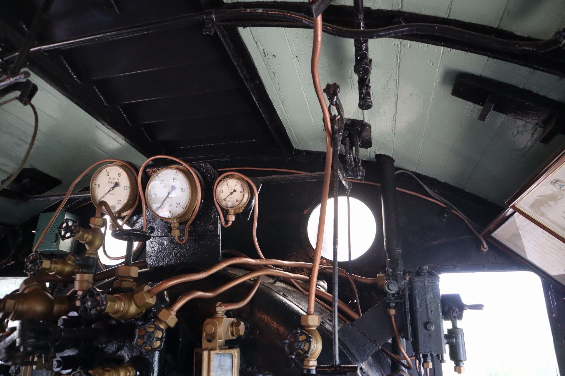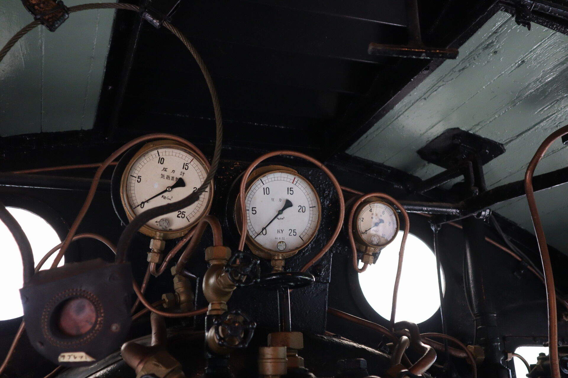 中央部にはボイラー圧力を示す計器が並びます。