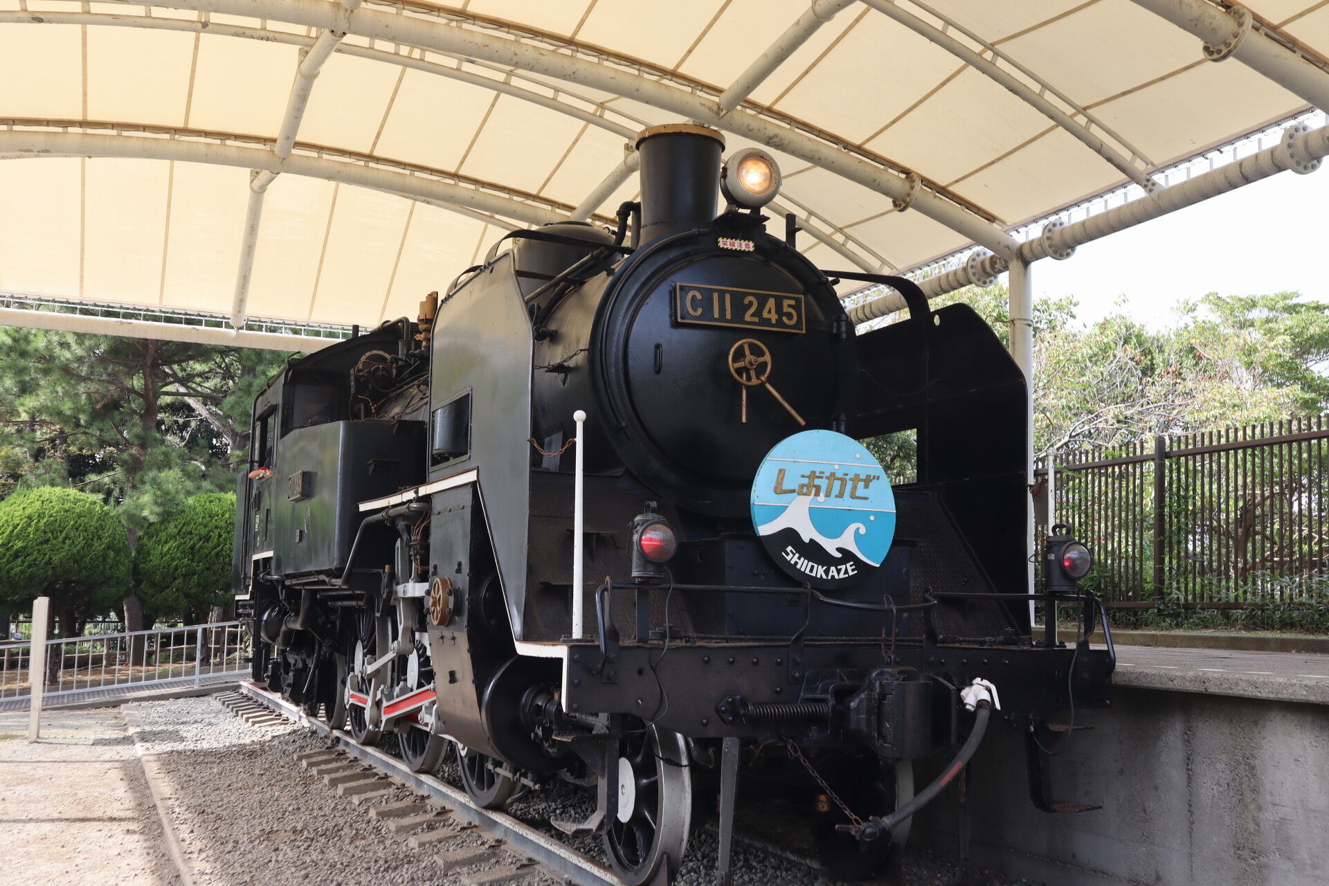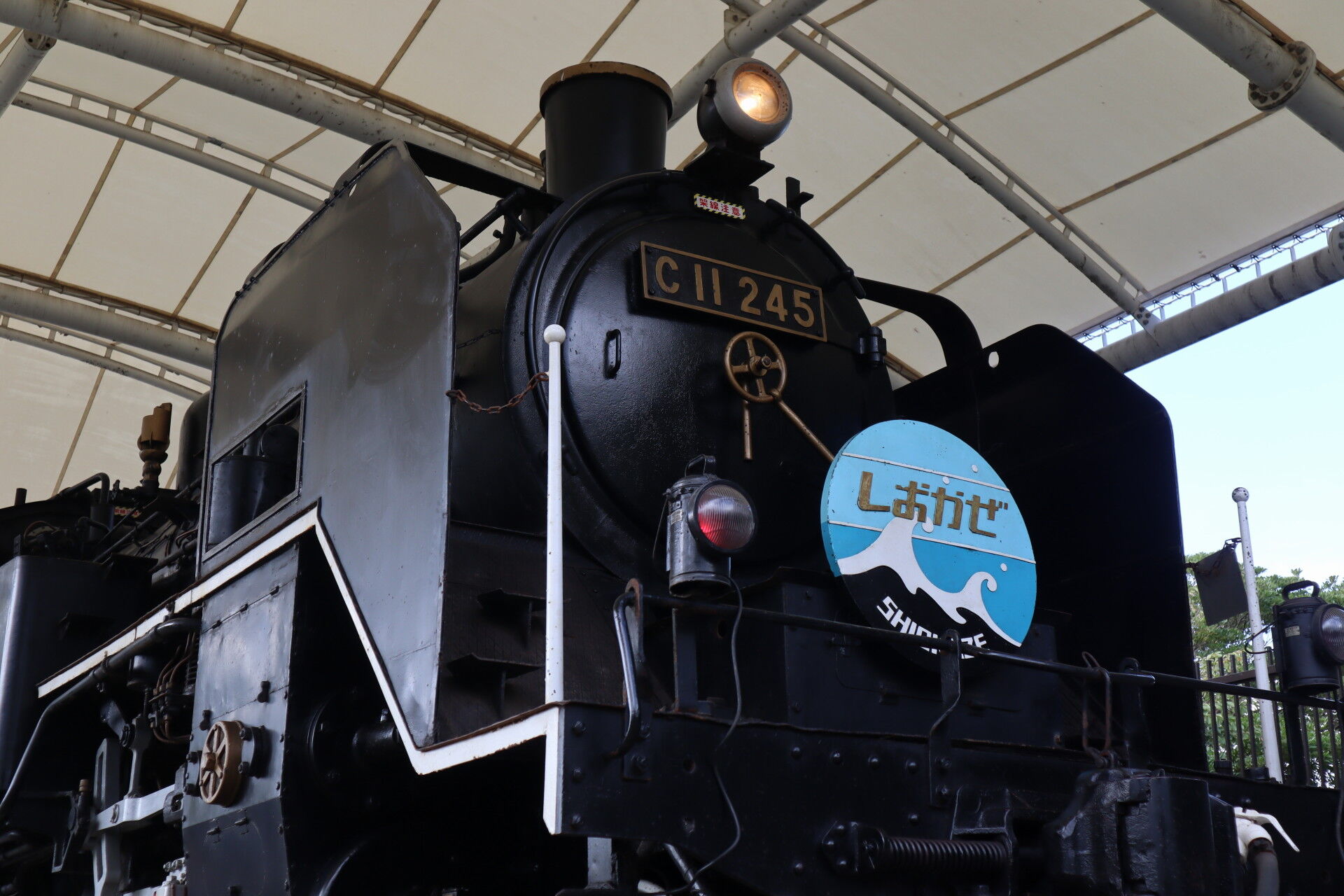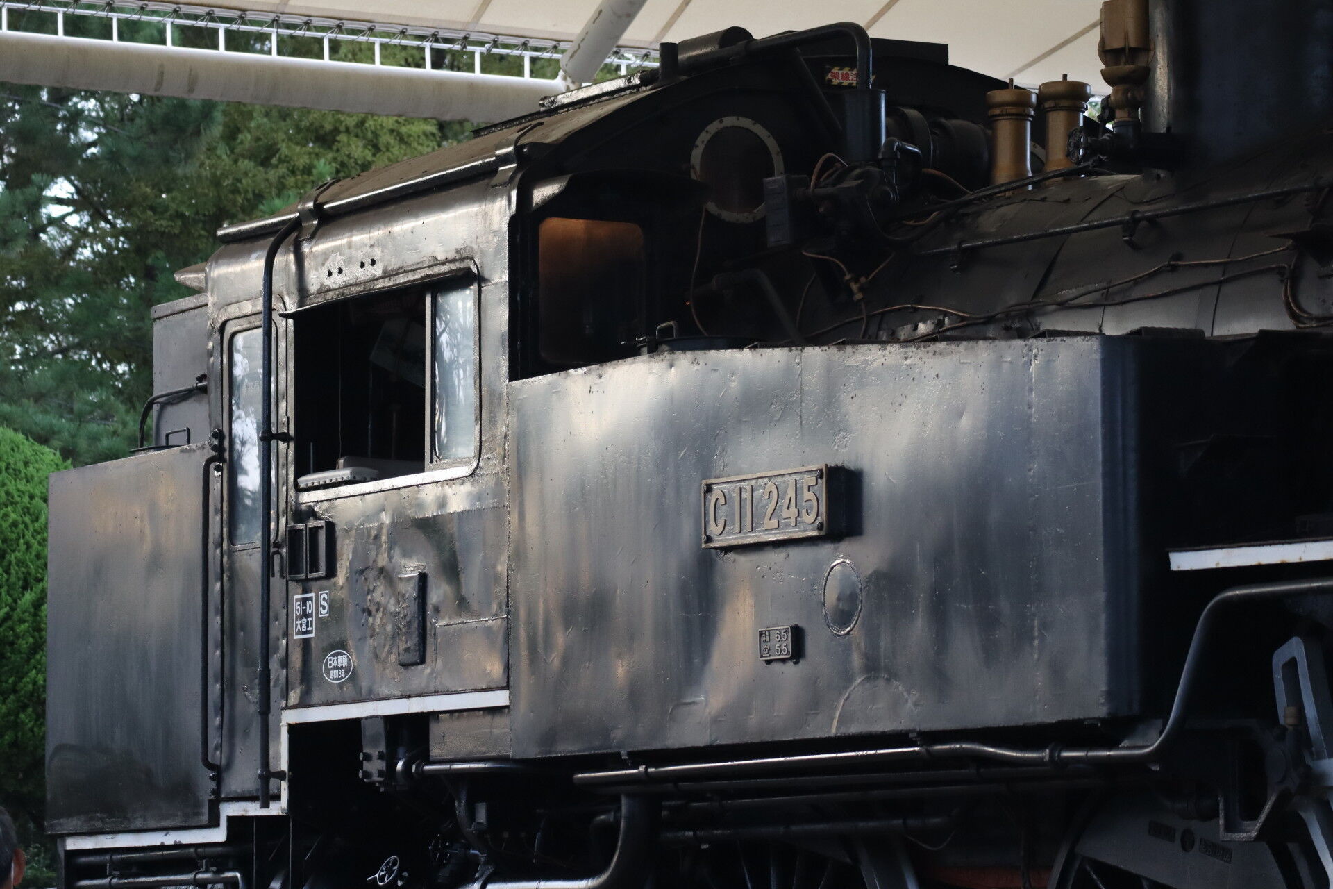 SL広場に保存展示されているC11 245はライトを点灯し、キャブを公開していました。