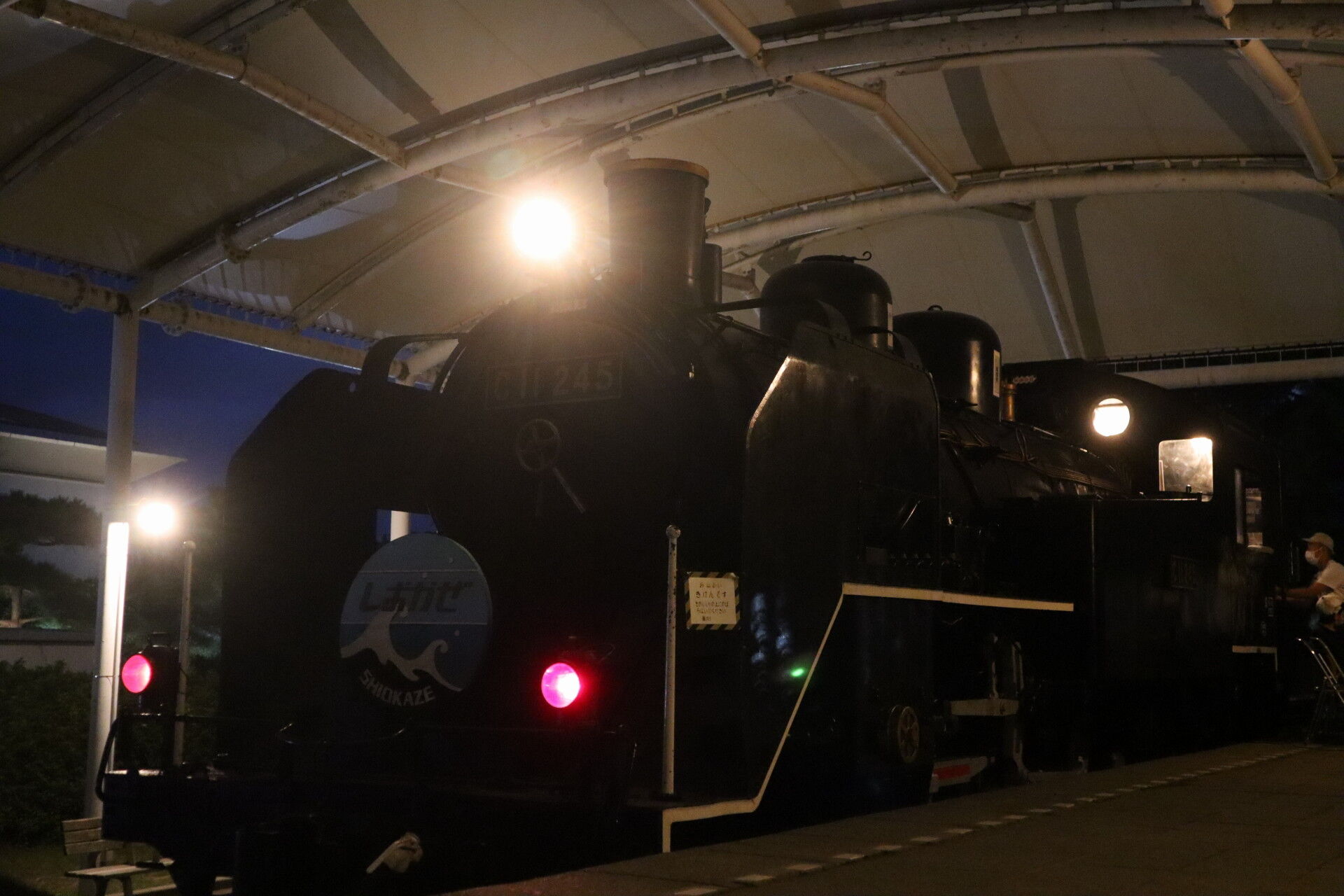 大井工場謹製のヘッドマークがあたたかい明りに照らされます。