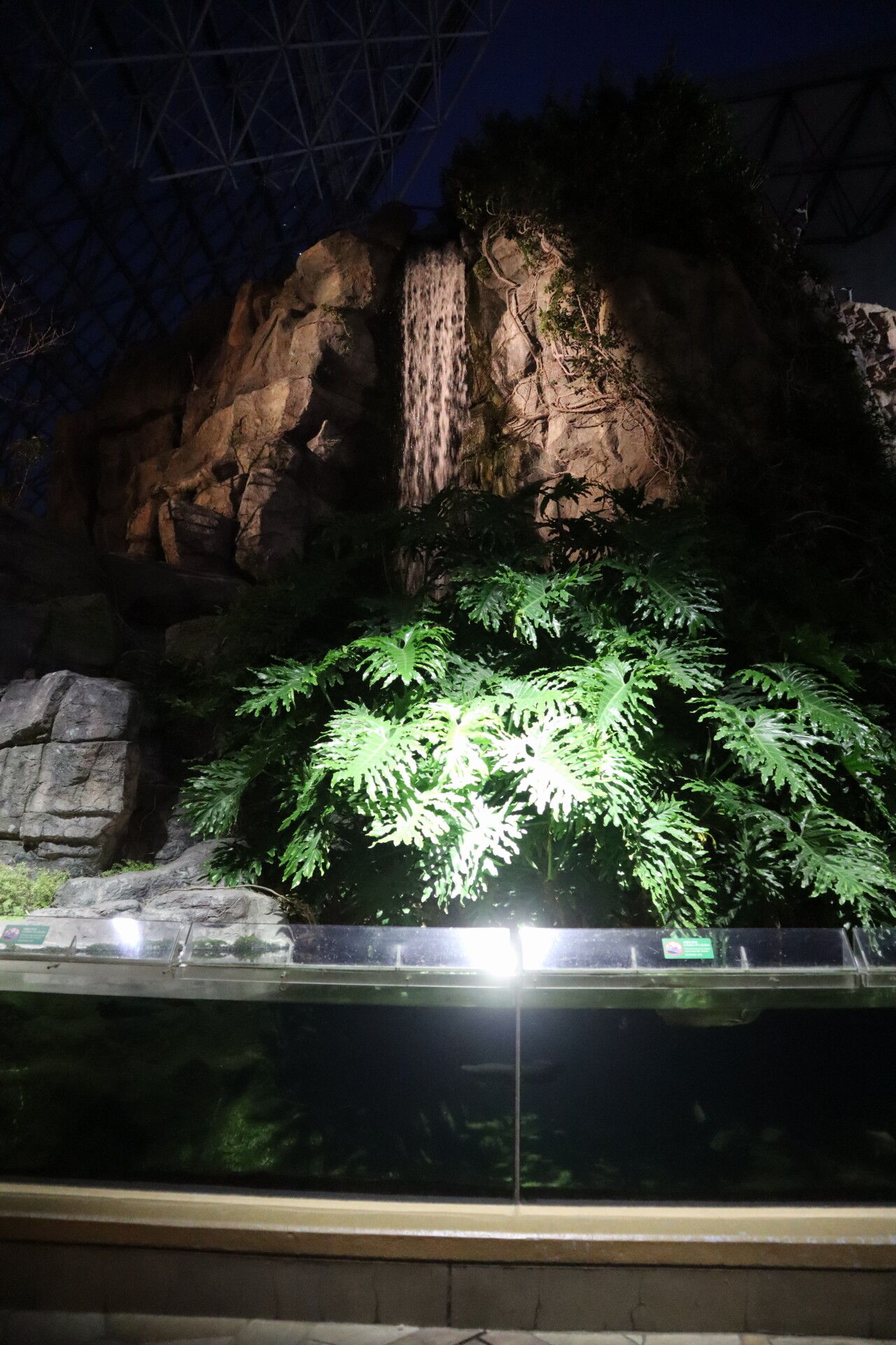 この滝の裏は通路になっていて、アクアシアターに繋がっています。