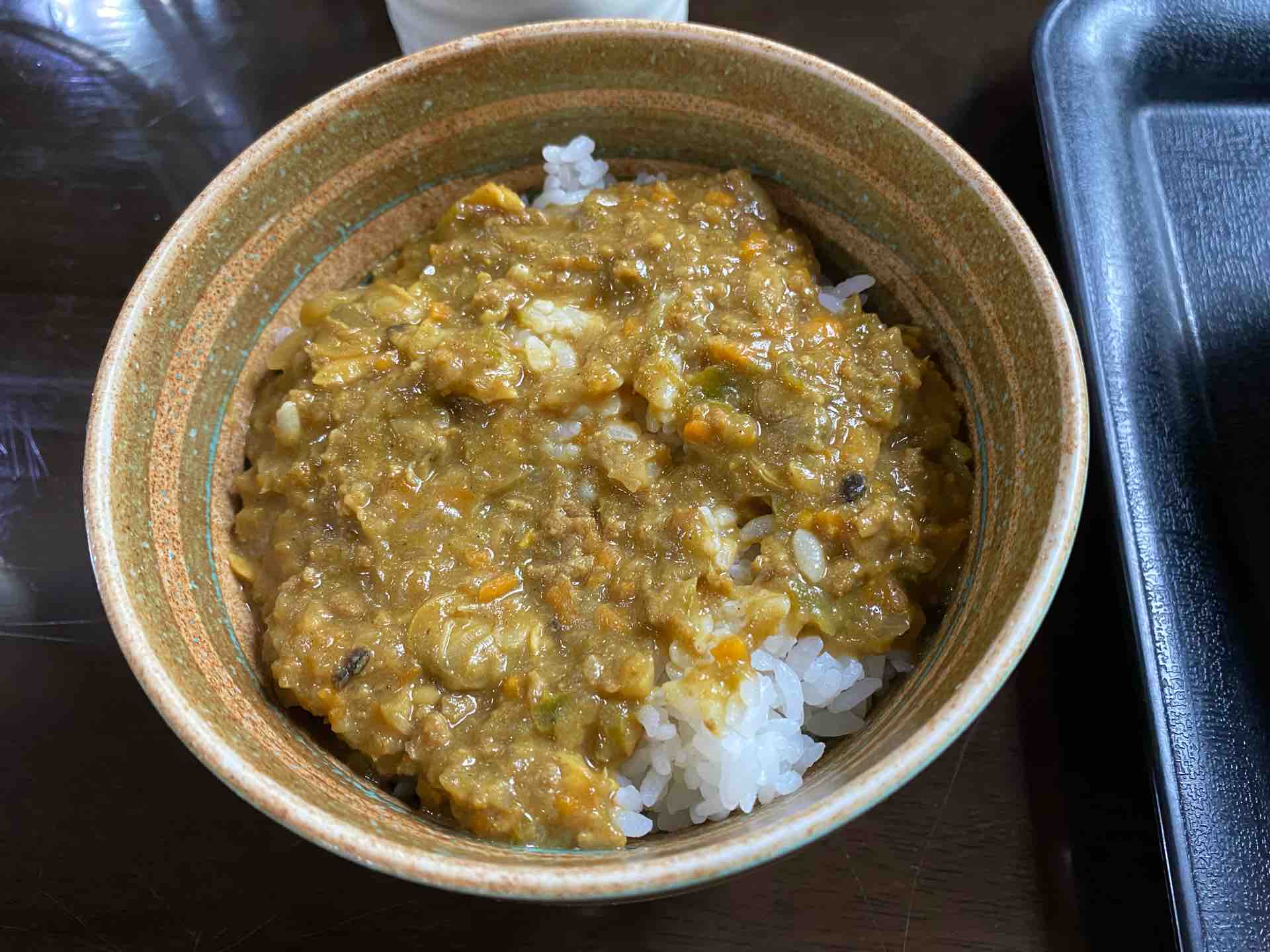 キーマカレーをセットに。なんとアサリが入っている意外なシーフードカレーです。