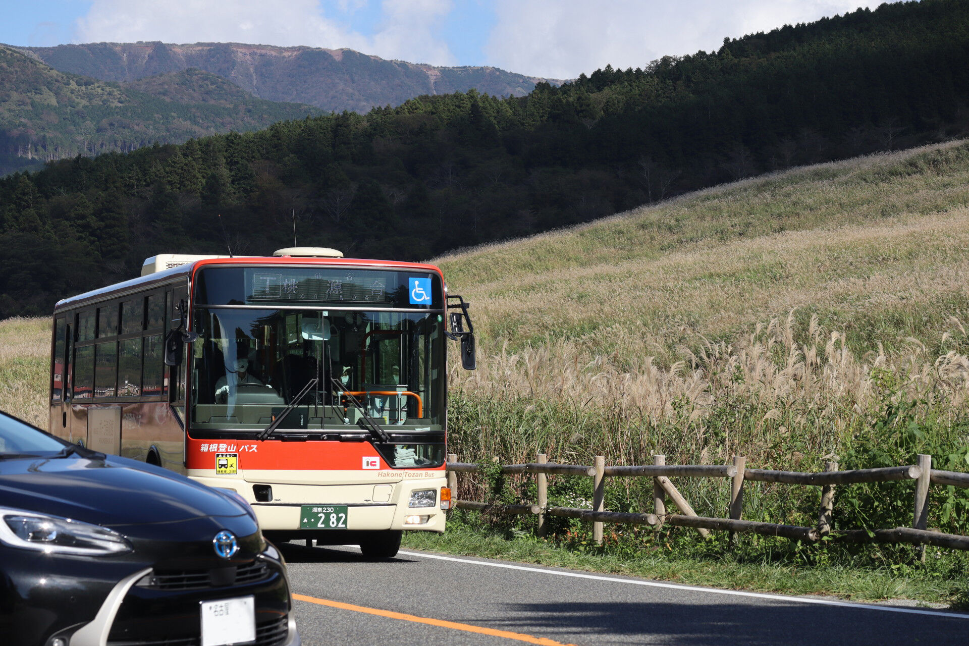 仙石原へ向かうバスは箱根登山バスだけなので、これで仙谷高原へ向かいます。