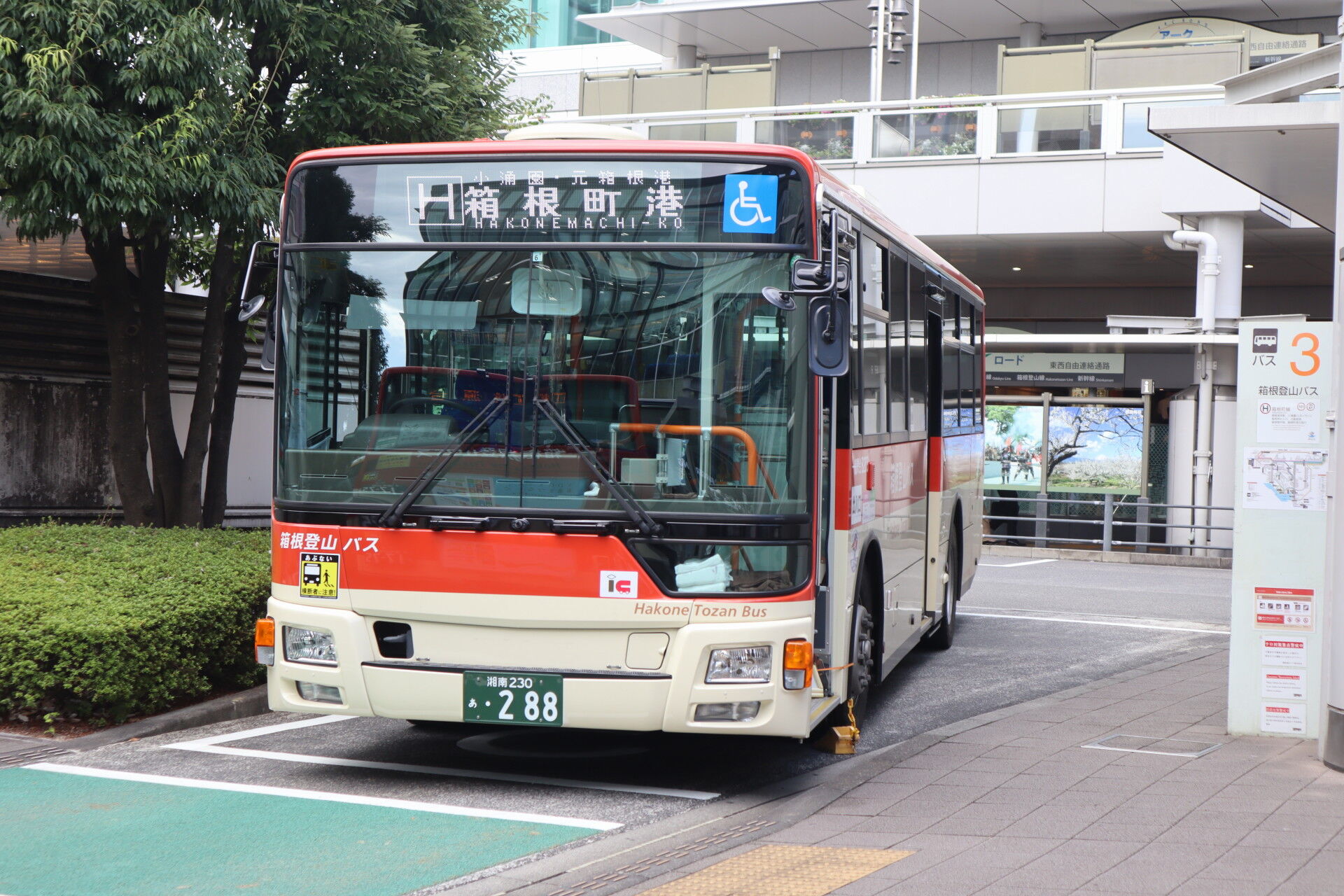 地下道か歩道橋からはバスの行先が見えないので箱根行がわからないんですよ。