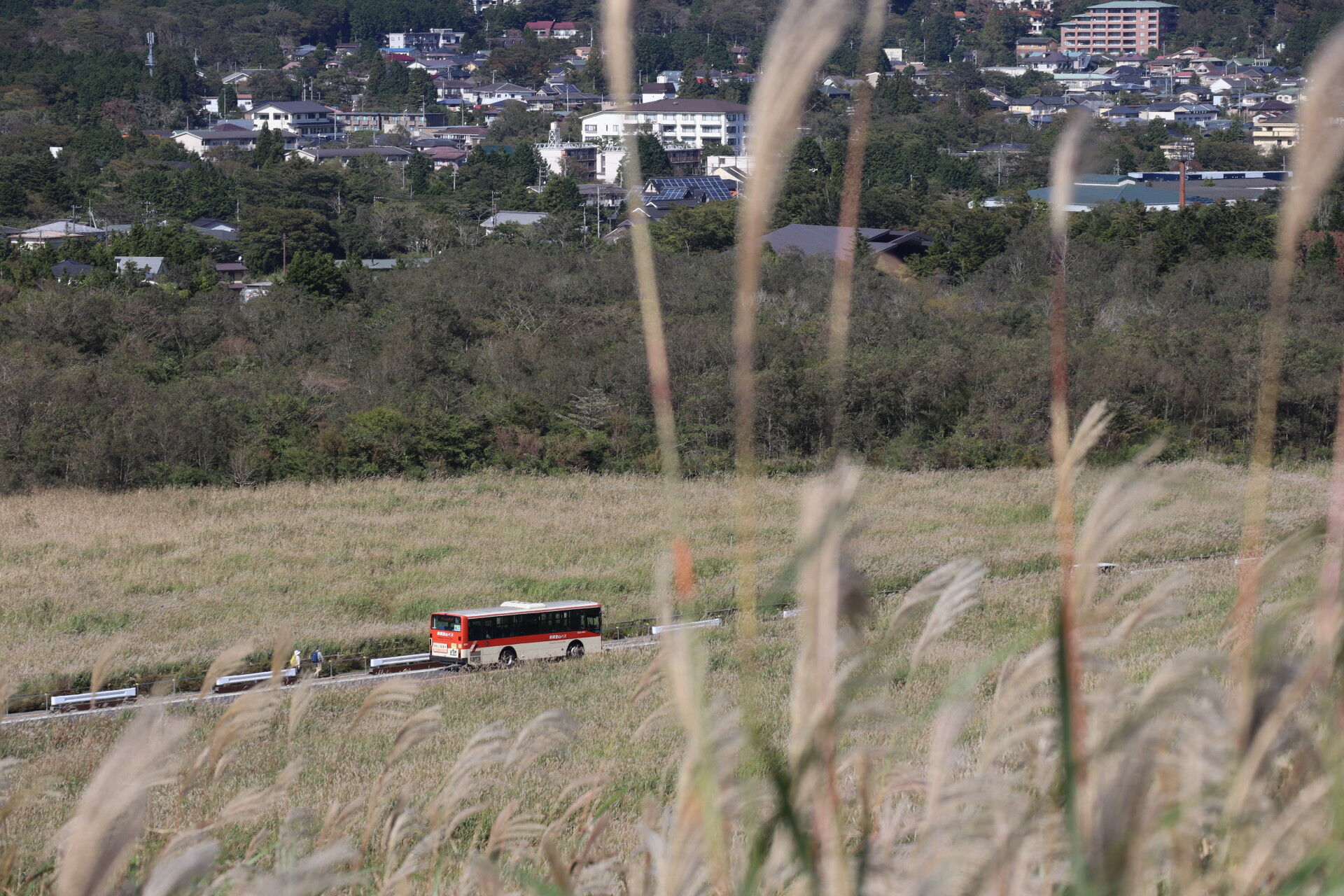 一面のススキの中をエアロスターが走ります。