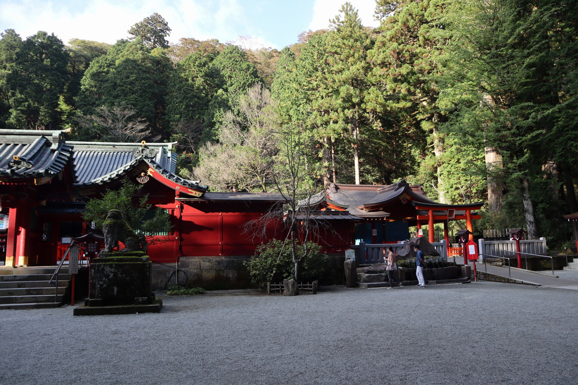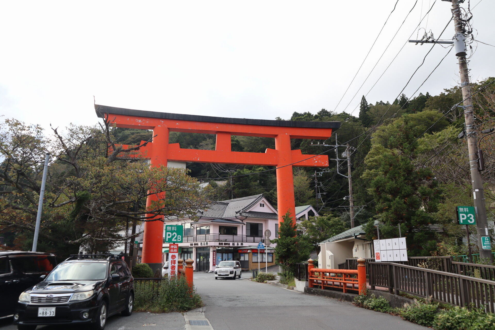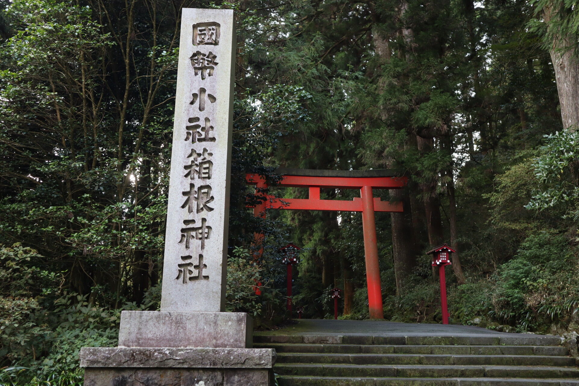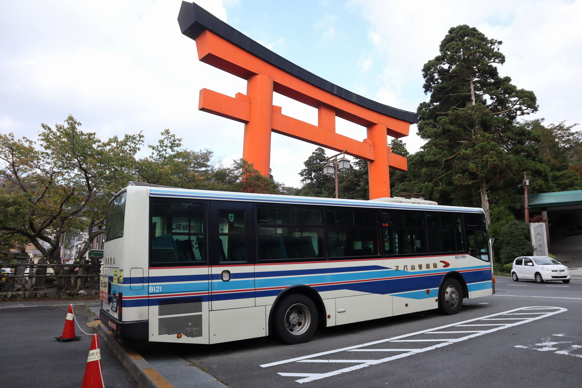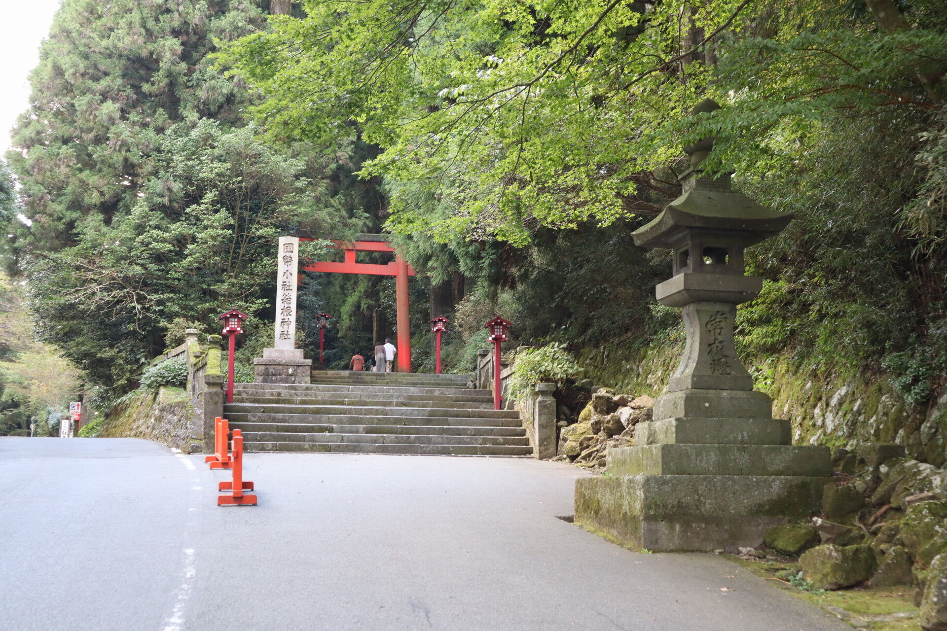 背後にあるのは箱根神社の一ノ鳥居です。