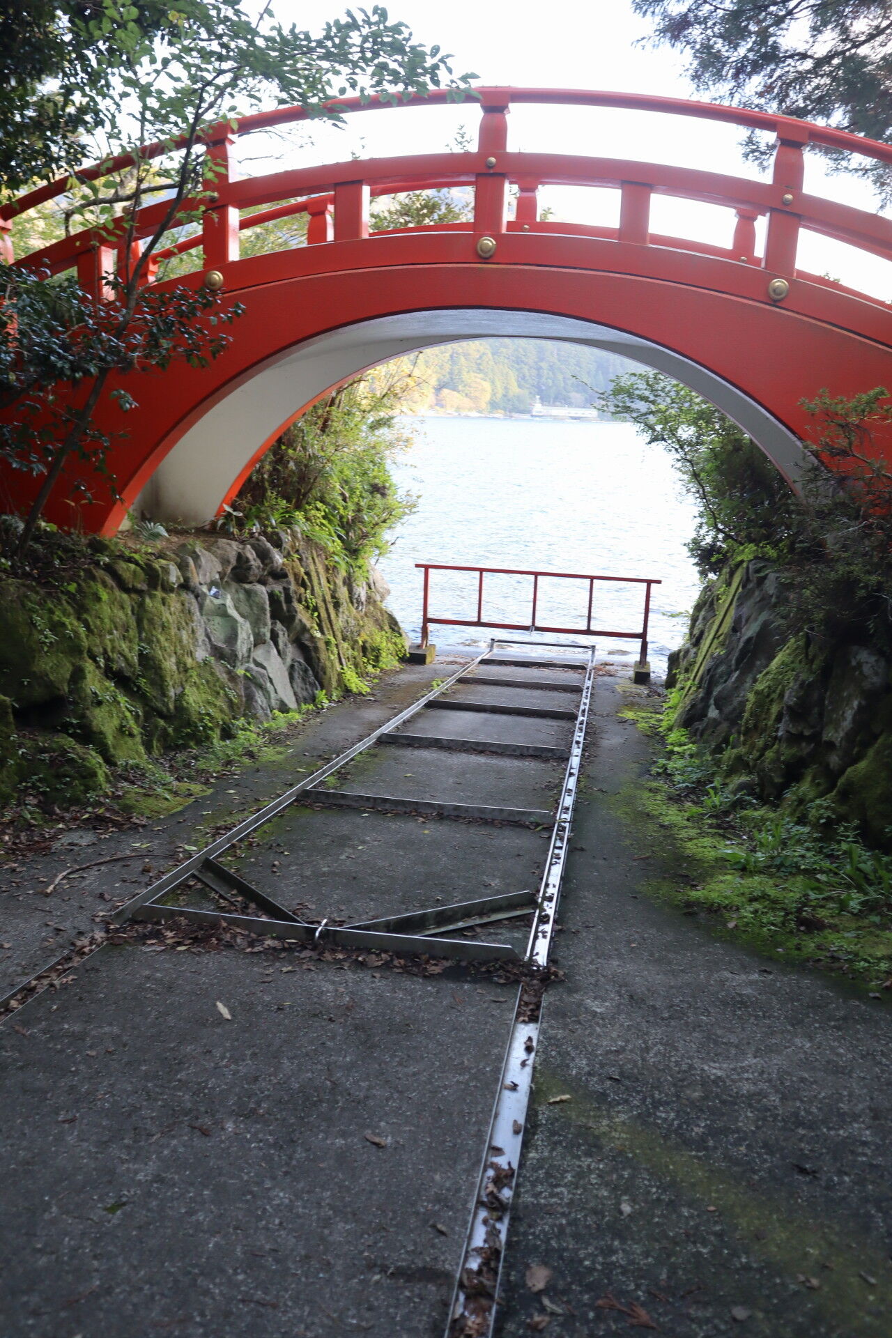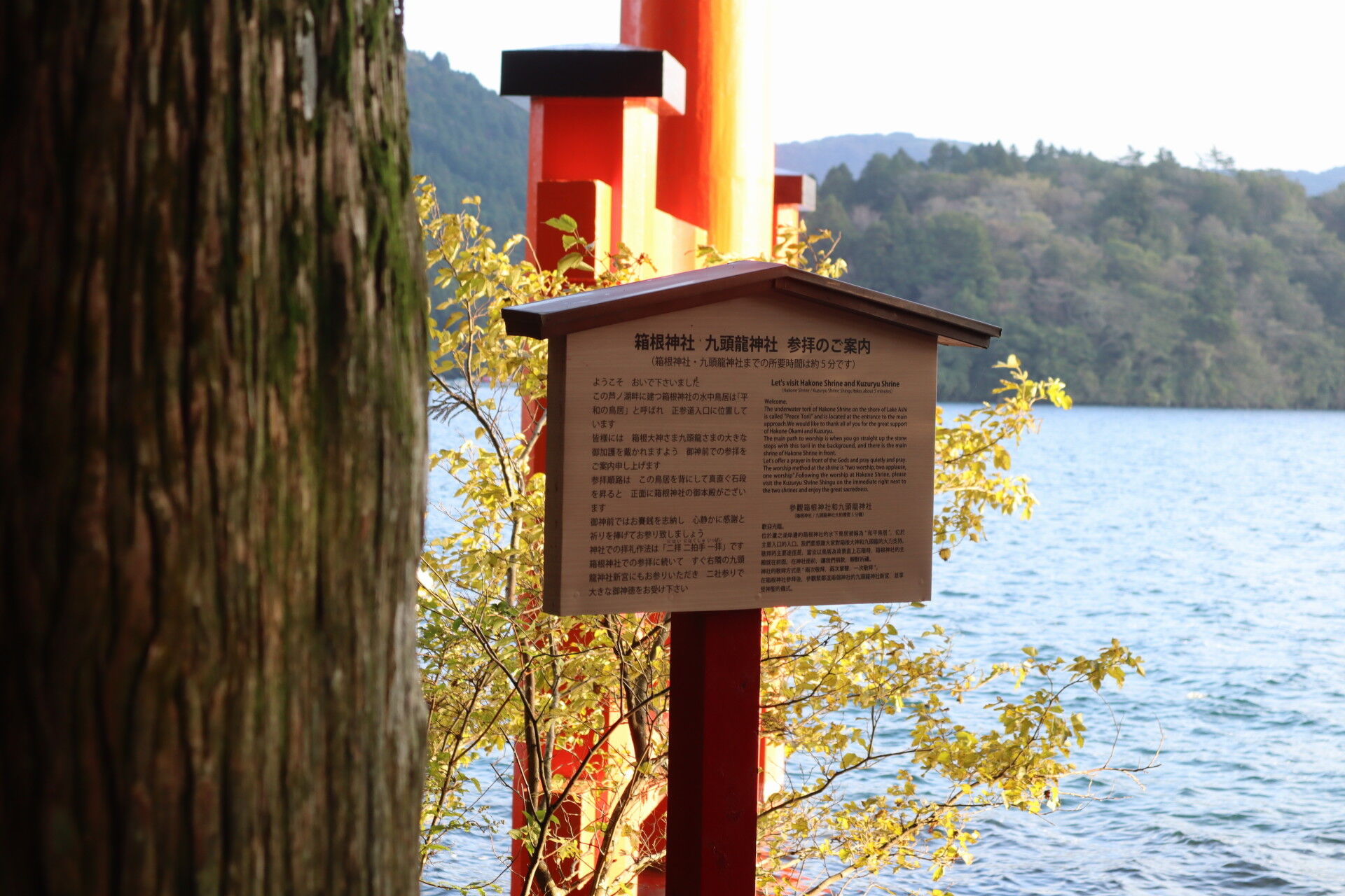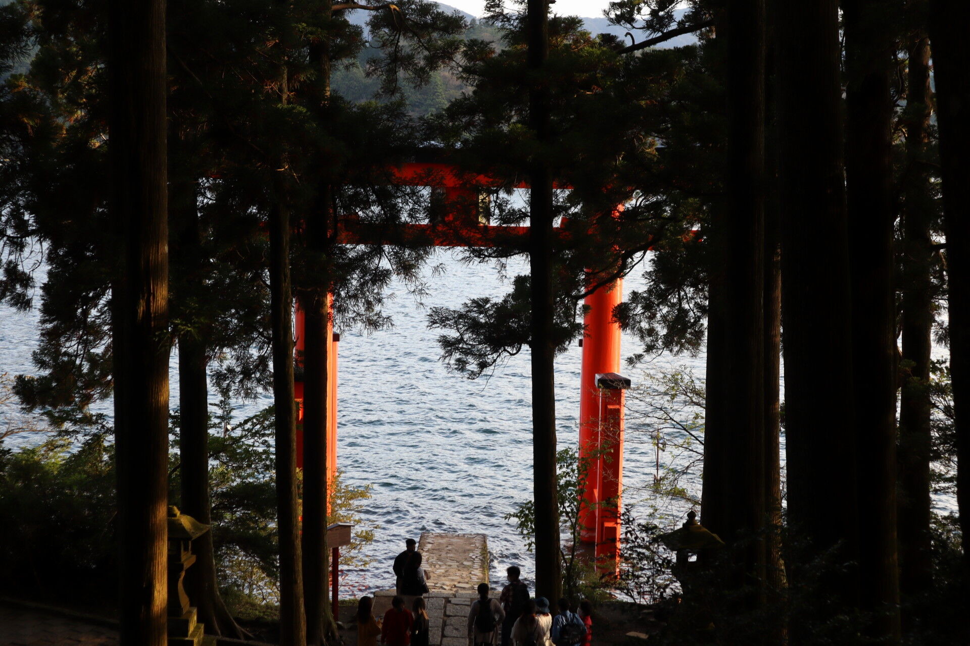 (芦ノ湖から鳥居が見える場所は南北に計2か所あって、南の方は後述)