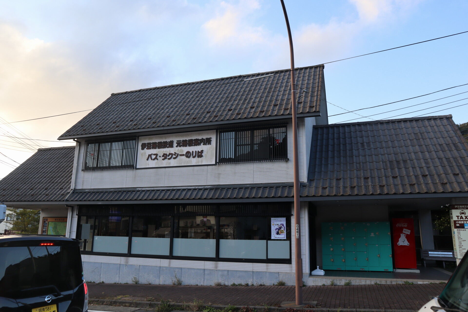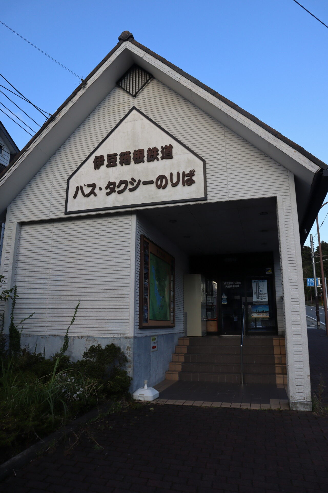 さて、この案内所の向かいにローソンがあって、その隣に伊豆箱根バスのターミナルがあります。