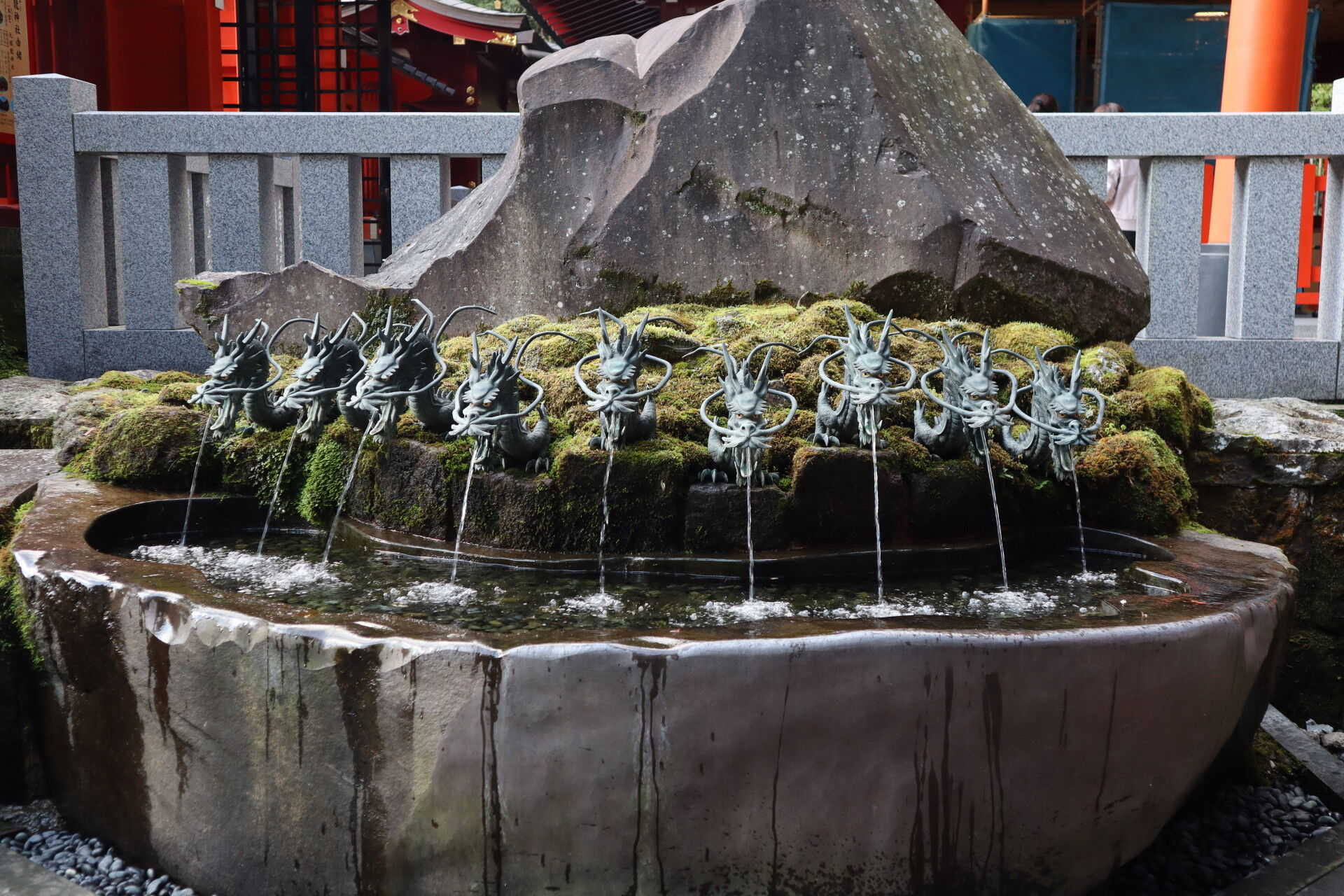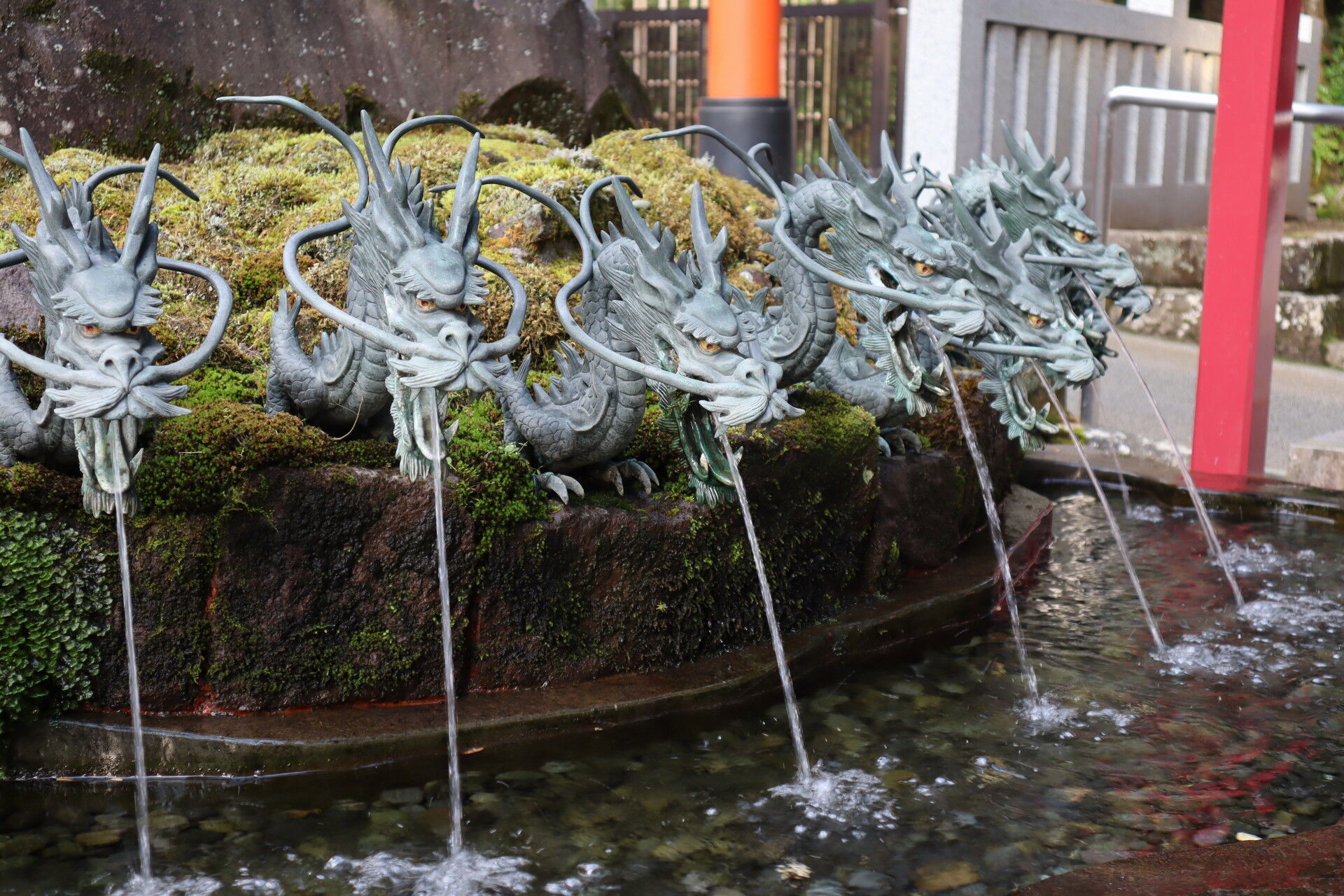 湧水があり、九頭竜の像があります。