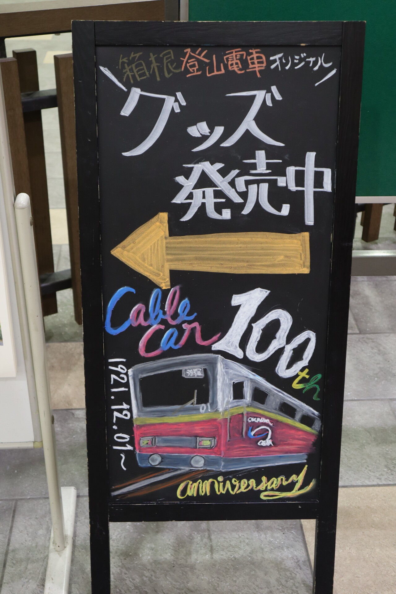 黒板アートはケーブルカーになっていました。