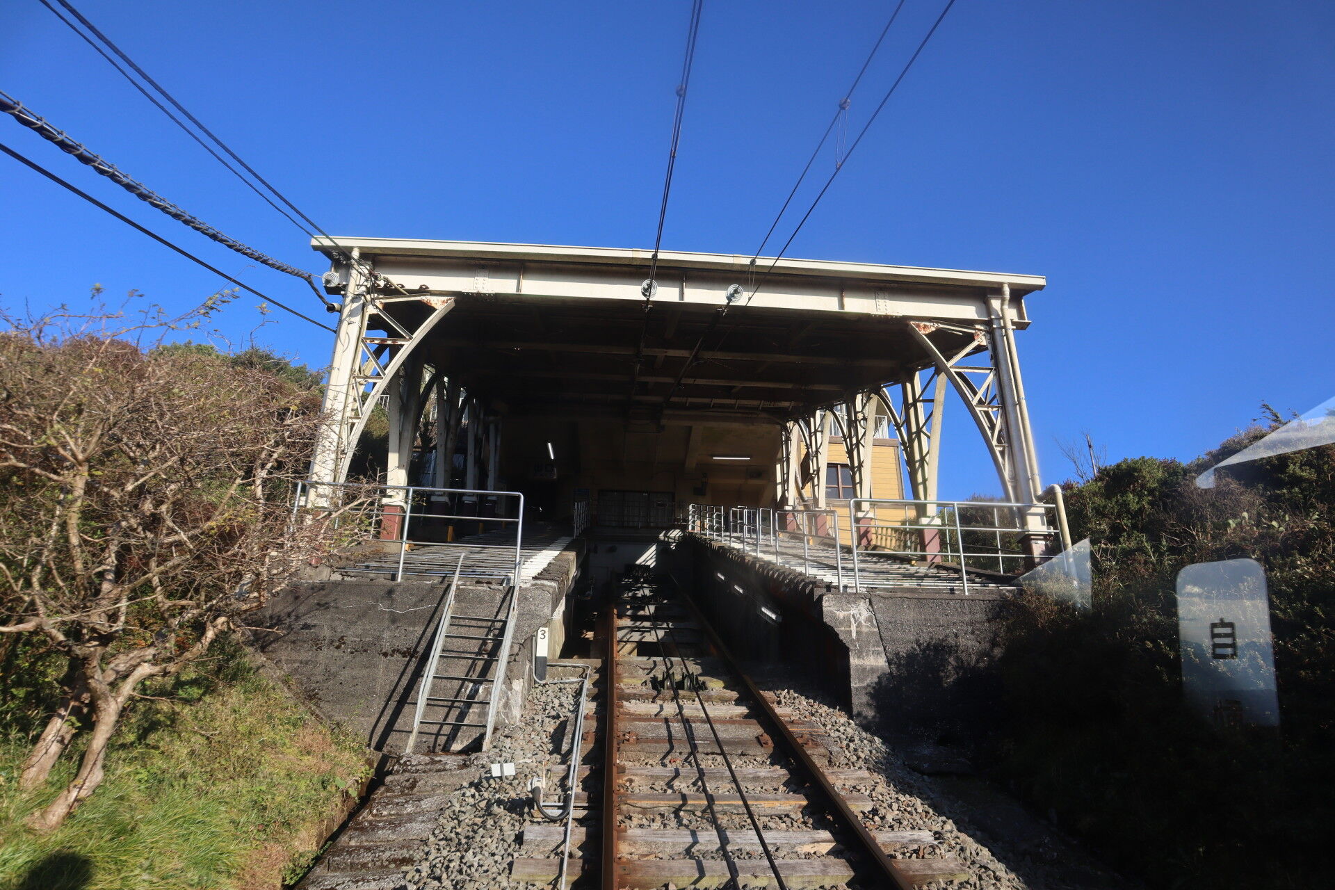十国峠ケーブルカーのホームには2灯式信号機が設置されています。