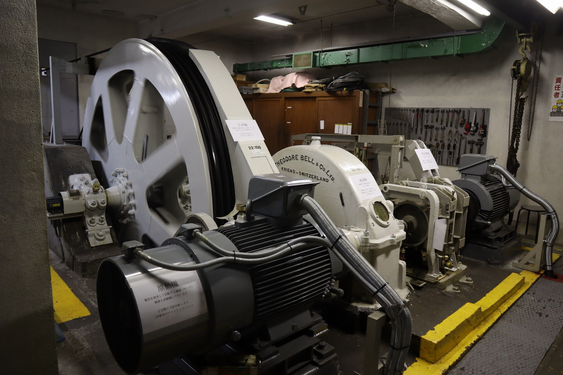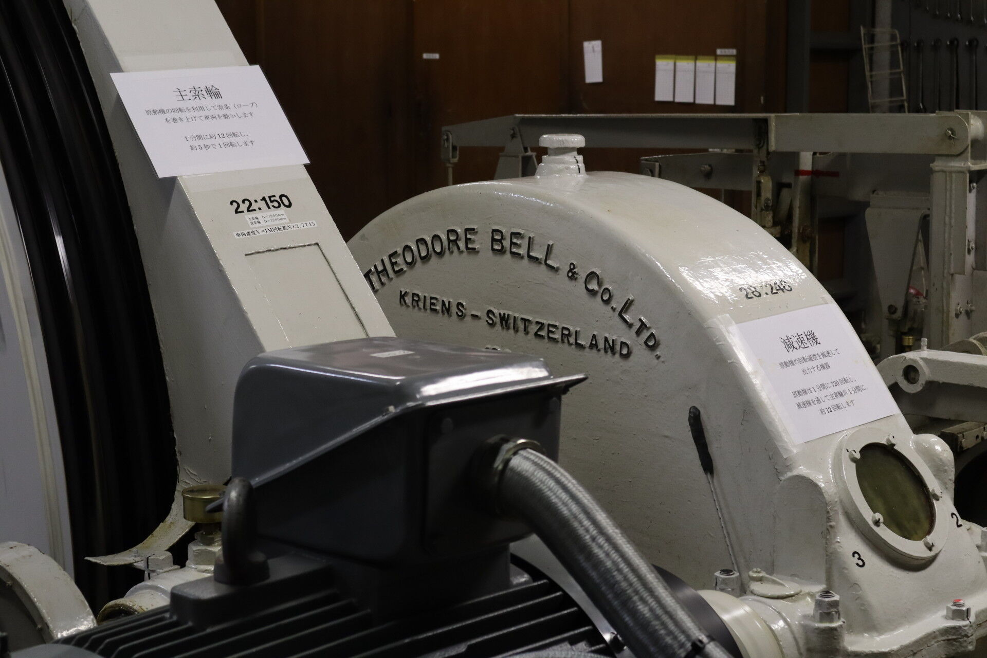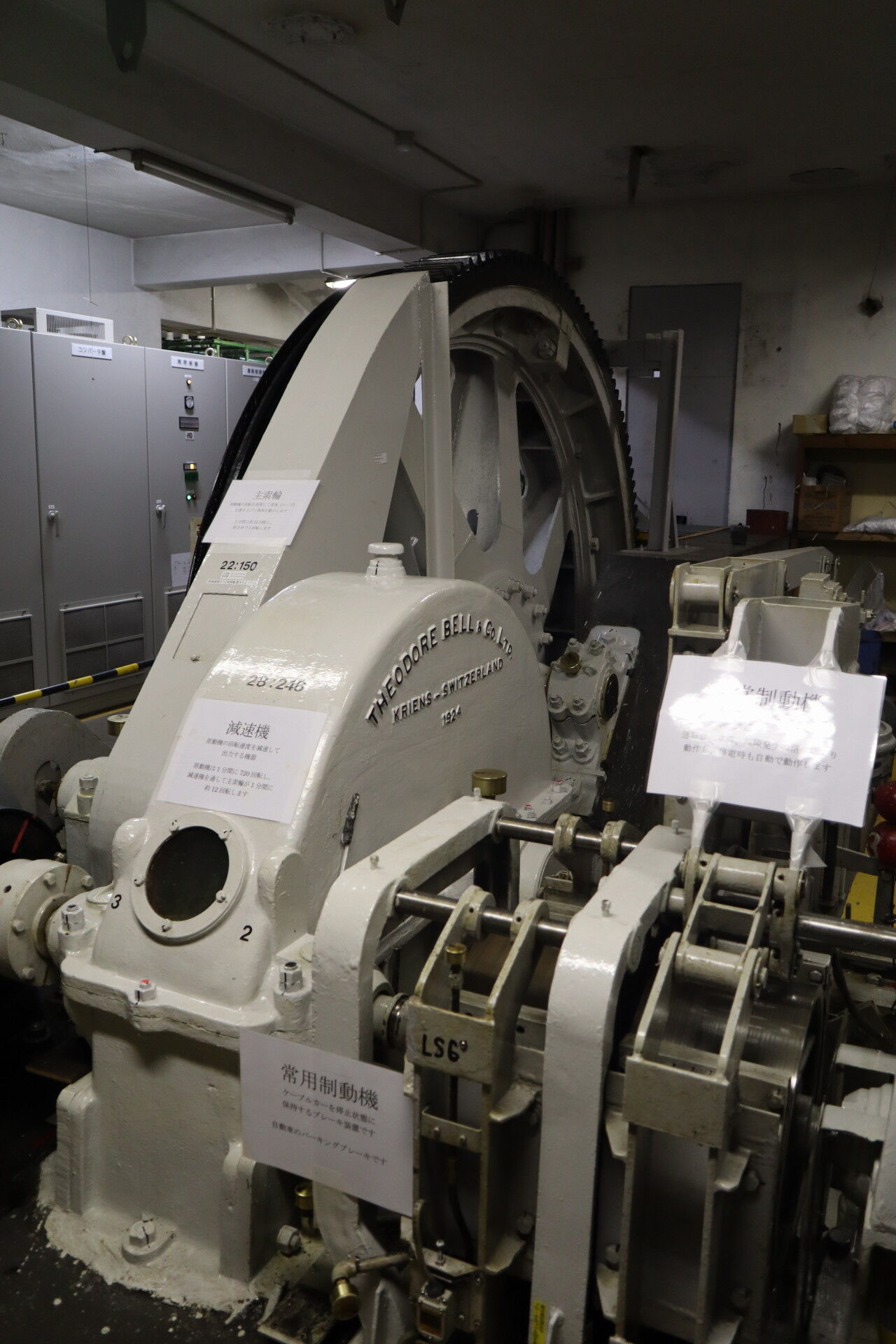 こちらがケーブルカーの心臓部、機械室です!
