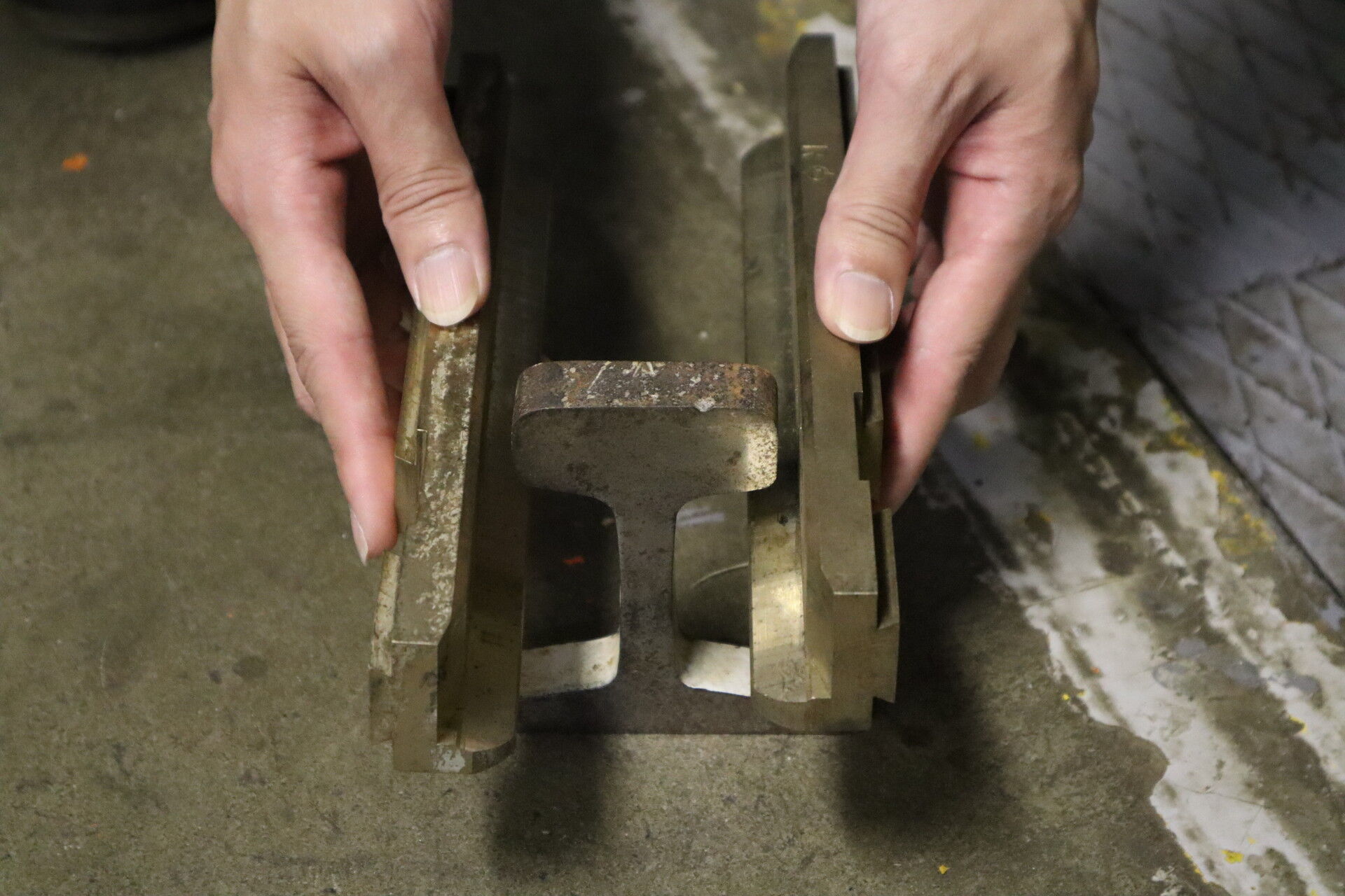 こちらは車両に設置された非常用のレール圧着ブレーキの仕組み。