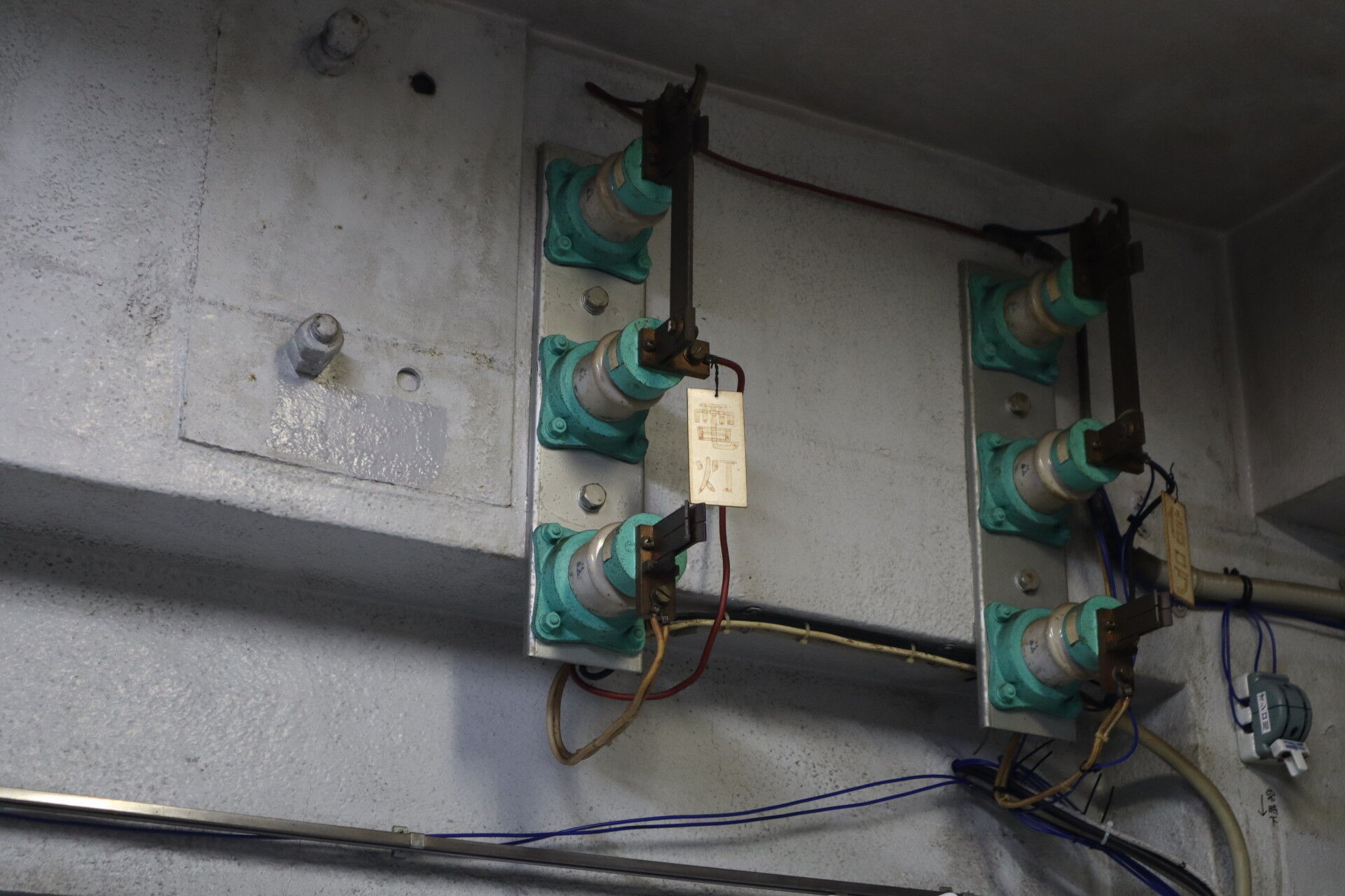 上にはなにやら碍子が。