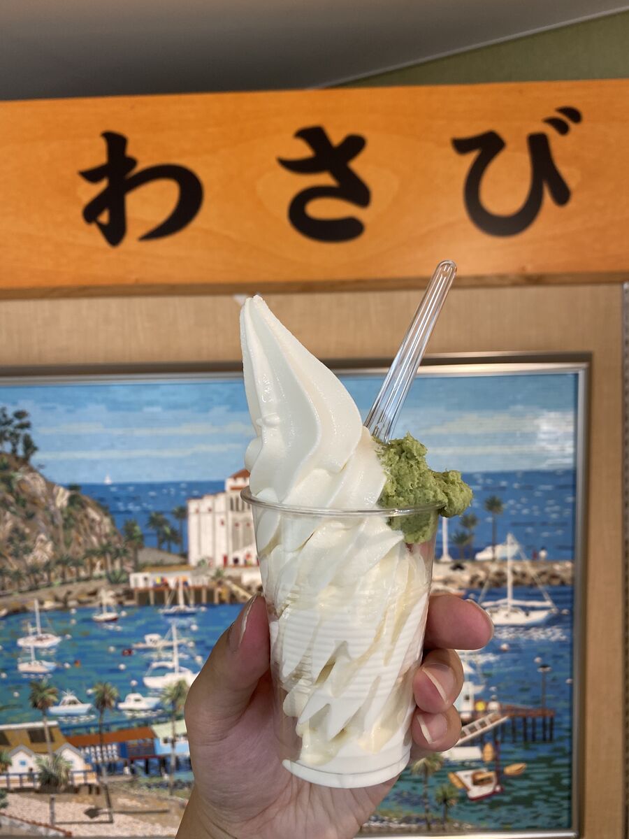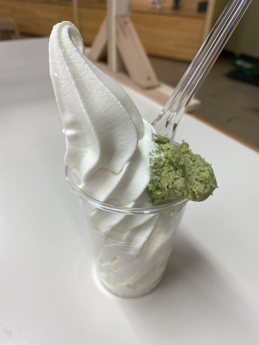 わさびソフト、バニラソフトにわさび盛り盛りって思ってたわさびソフトは一味違うというかビジュアルの豪快さがすごい。