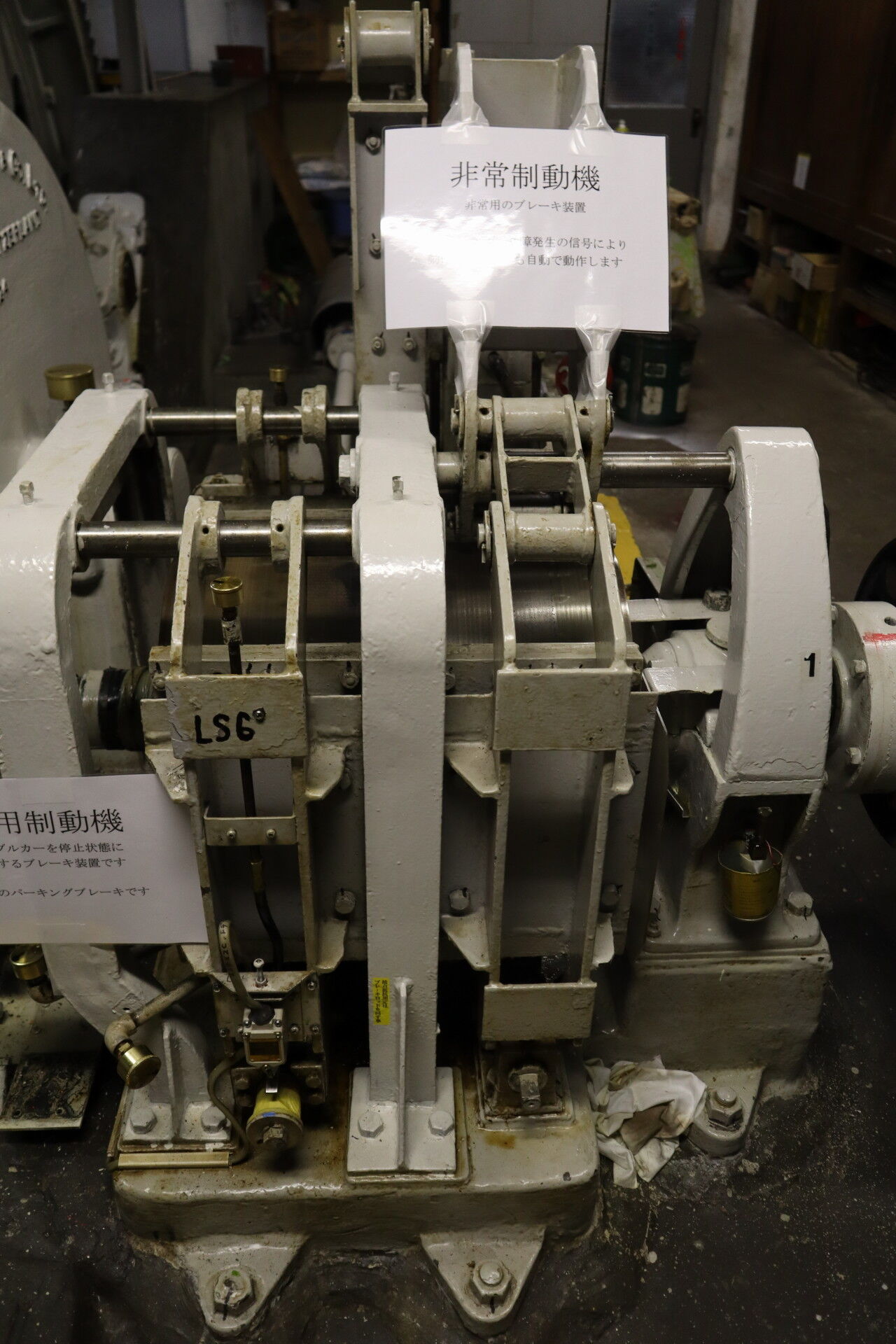 いっぽうこちらは隣に設置されている非常制動機。