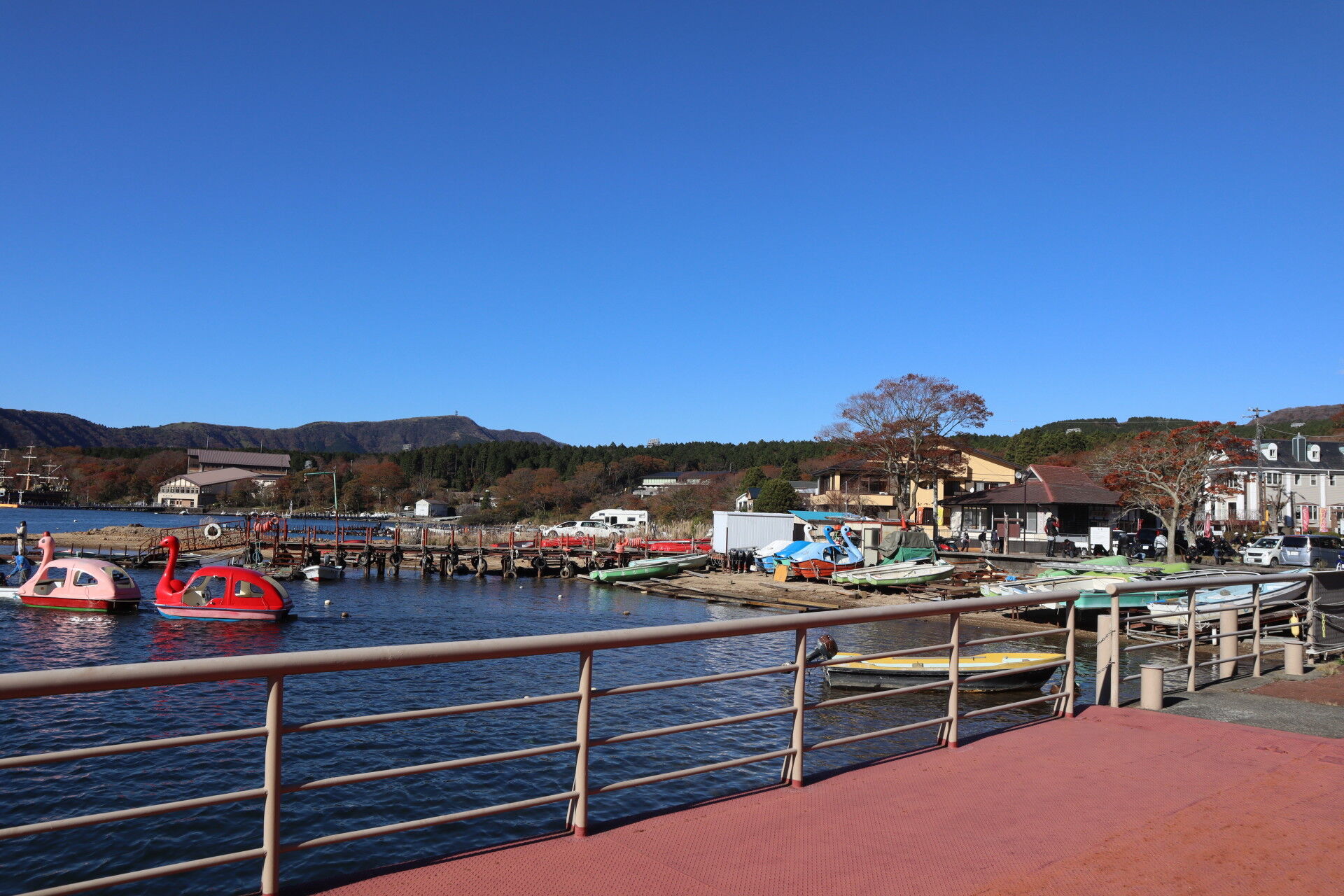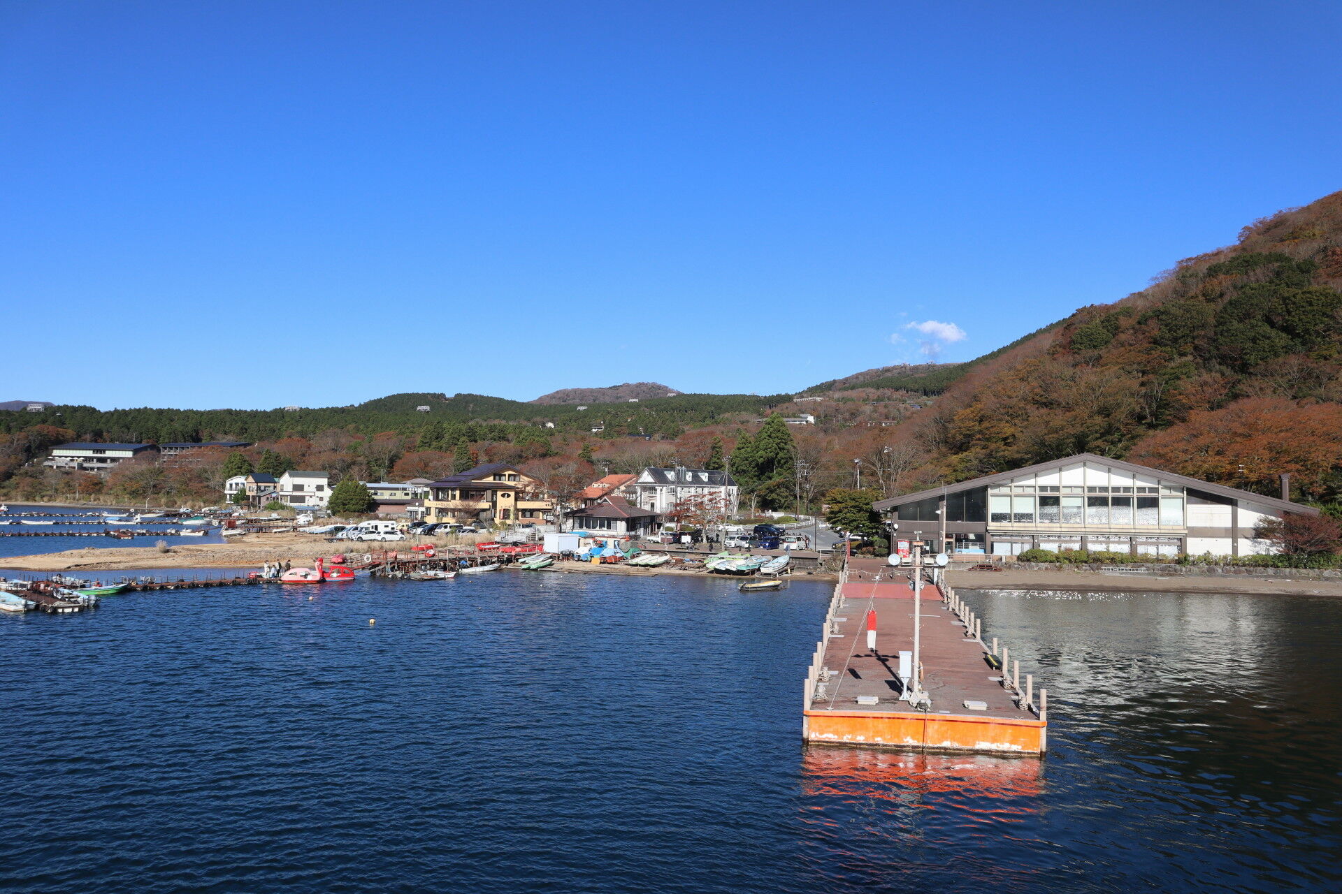 海賊船の桃源台港は徒歩5分の立地。湖尻桟橋は影が薄い…。