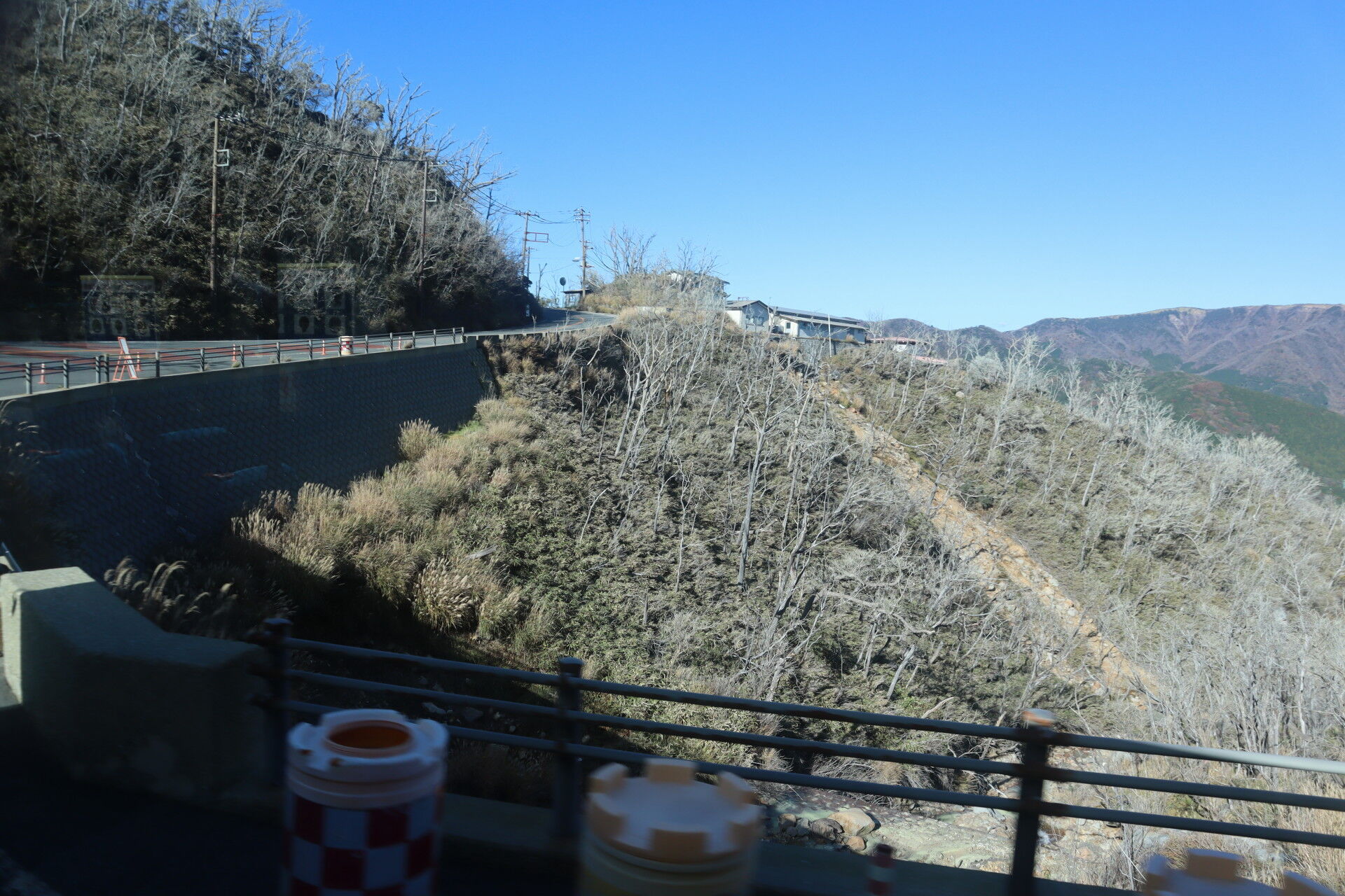 バスは大涌谷を作る冠ヶ岳の斜面を切り開いたであろうのクネクネした道をプロのドラテクでガンガン進みます。