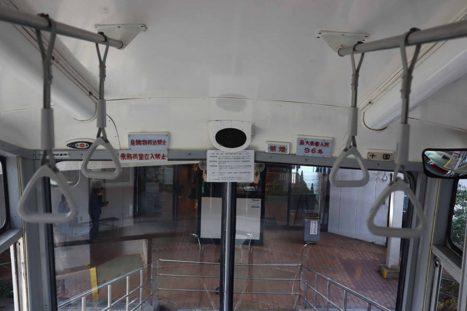 十国峠ケーブルカーは日本で2例だけの1435m m軌間の路線。