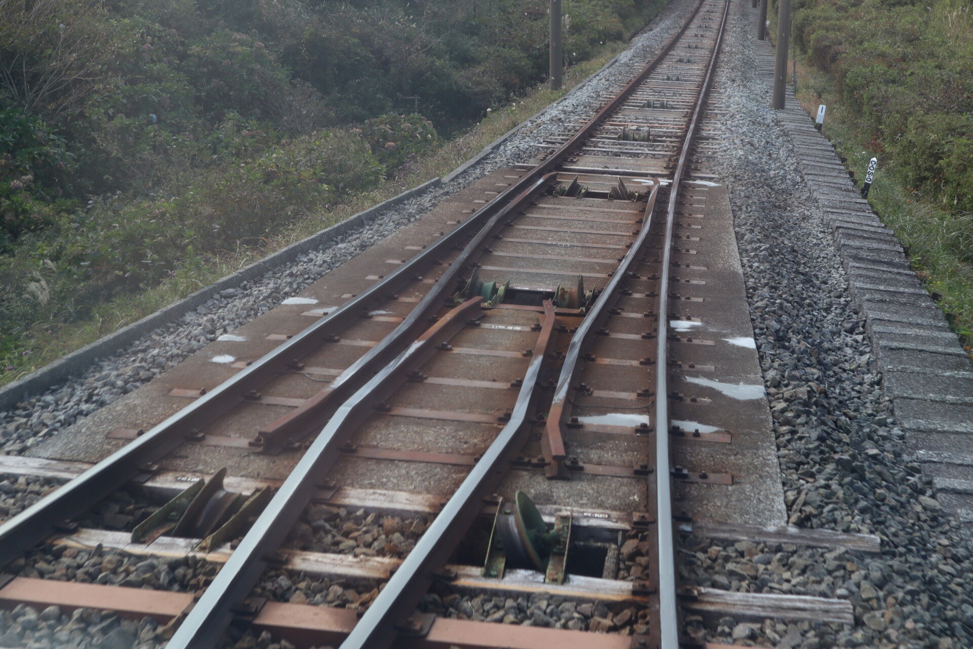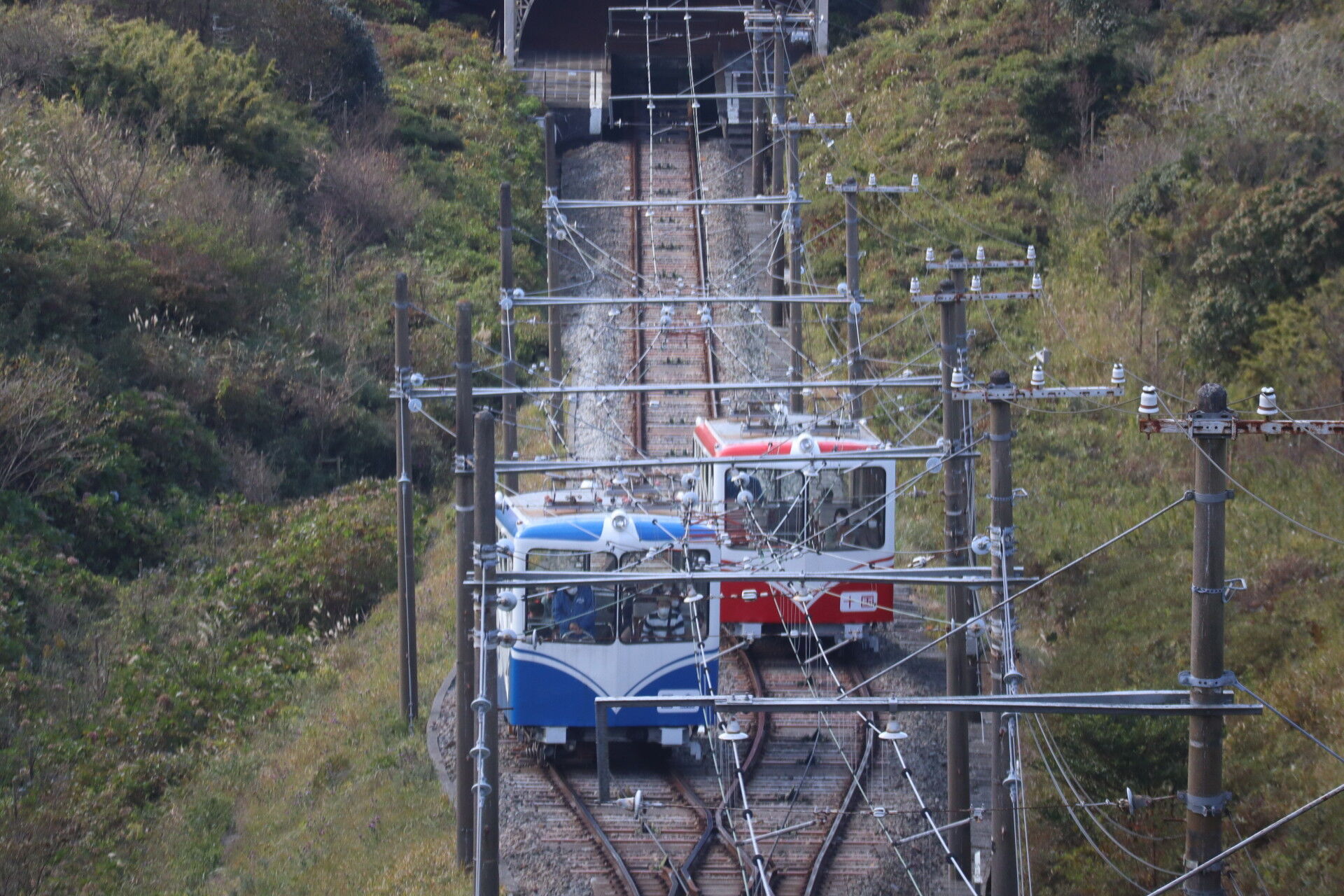 すれ違い場は架線があるのでよく見えませんが、架線があるケーブルカーも貴重になると思うのでこれはいいことです。
