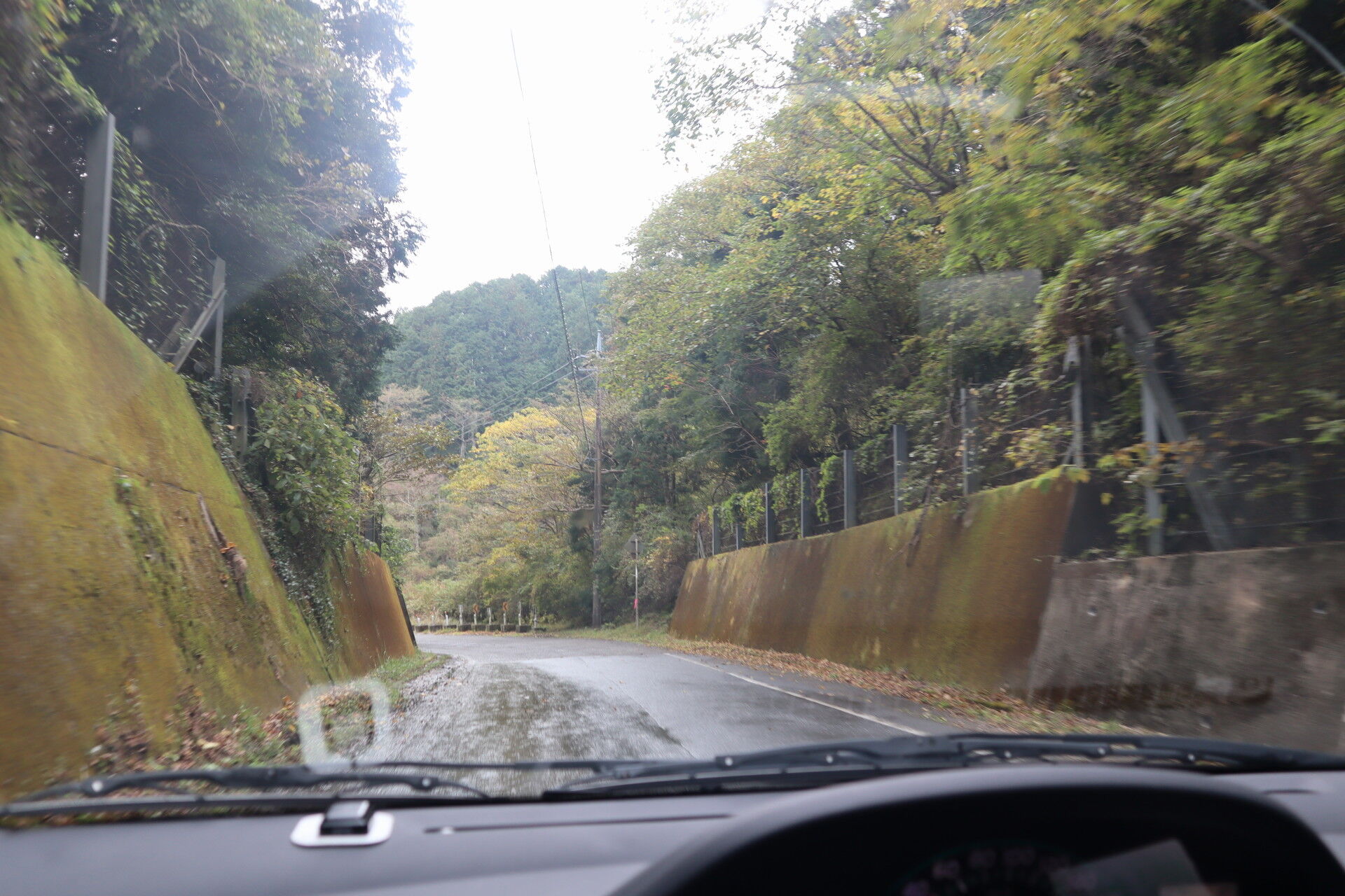 濡れた山道を走ります。
