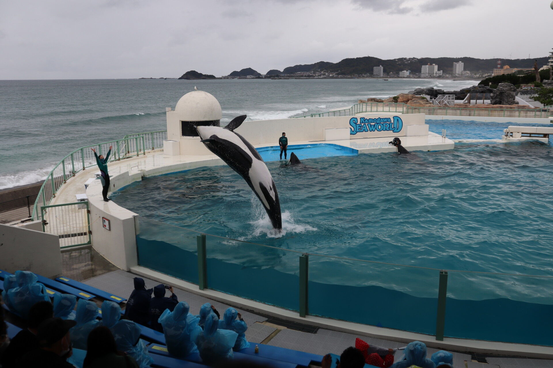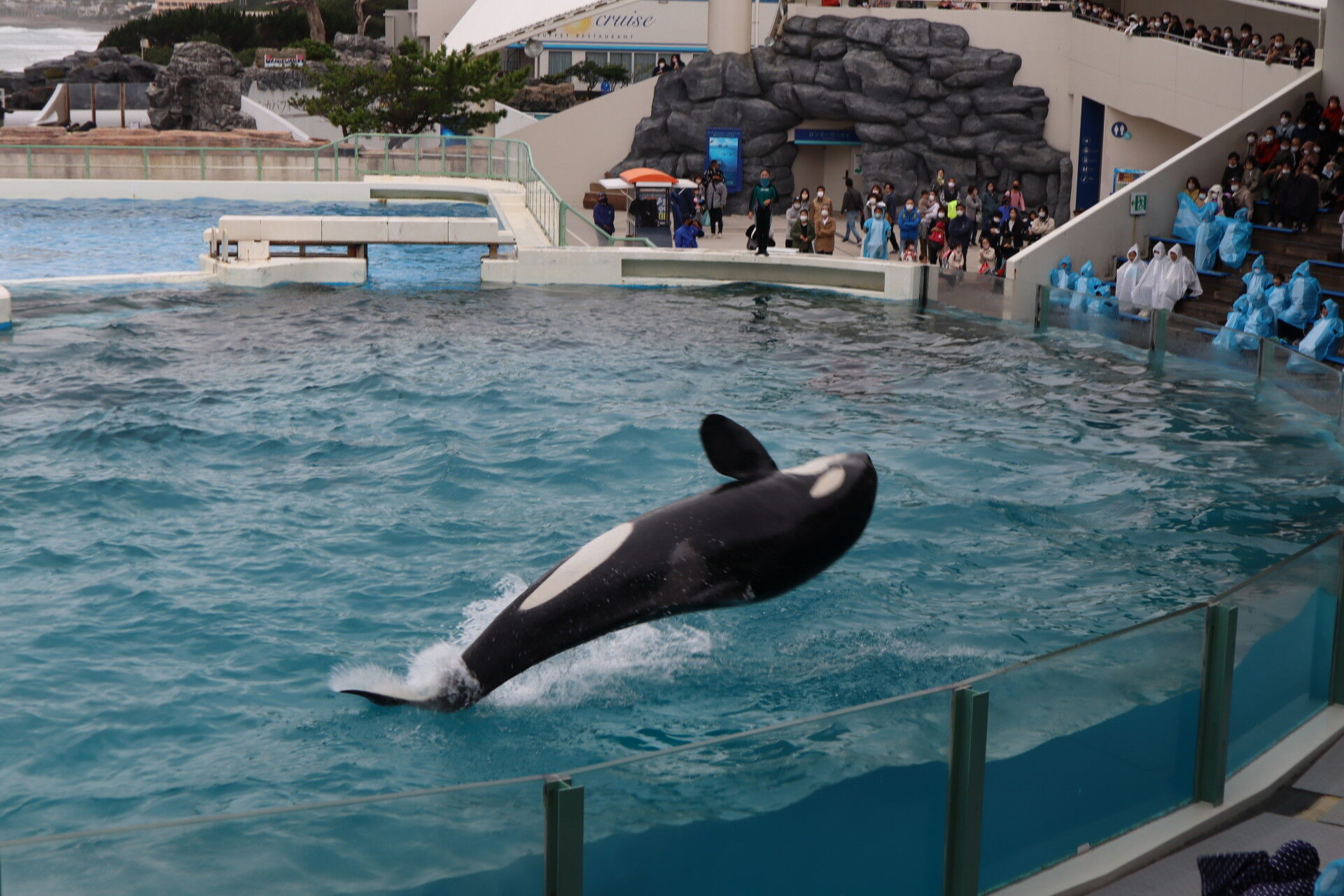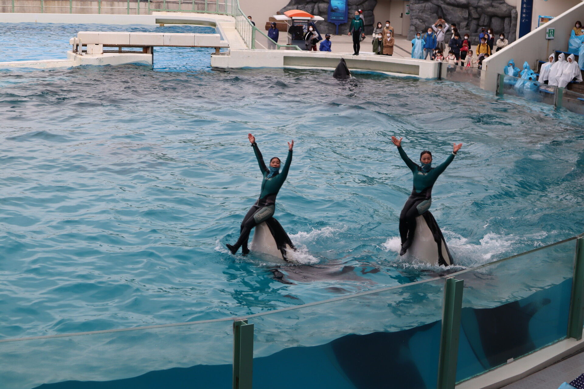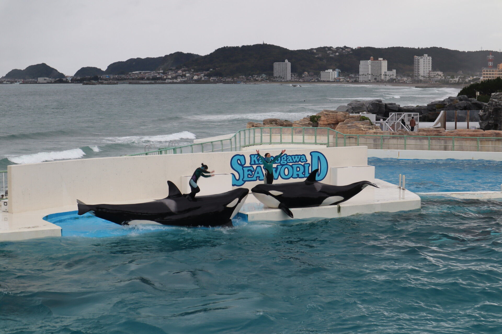 鴨川シーワールドのシャチプールは、ショーをする大型プールと、待機用の小型プールの2つ。