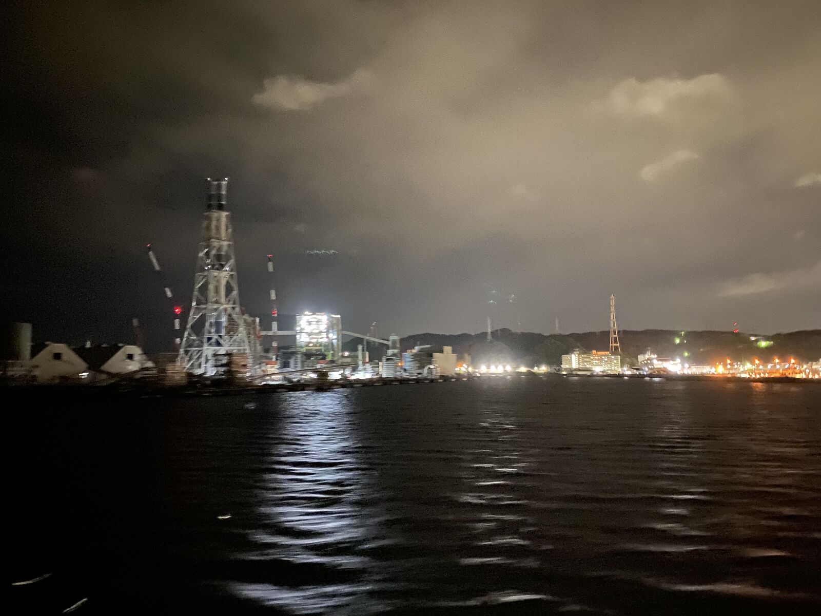 さて、海沿いの暗い街に、一際明るい場所が見えてきました。