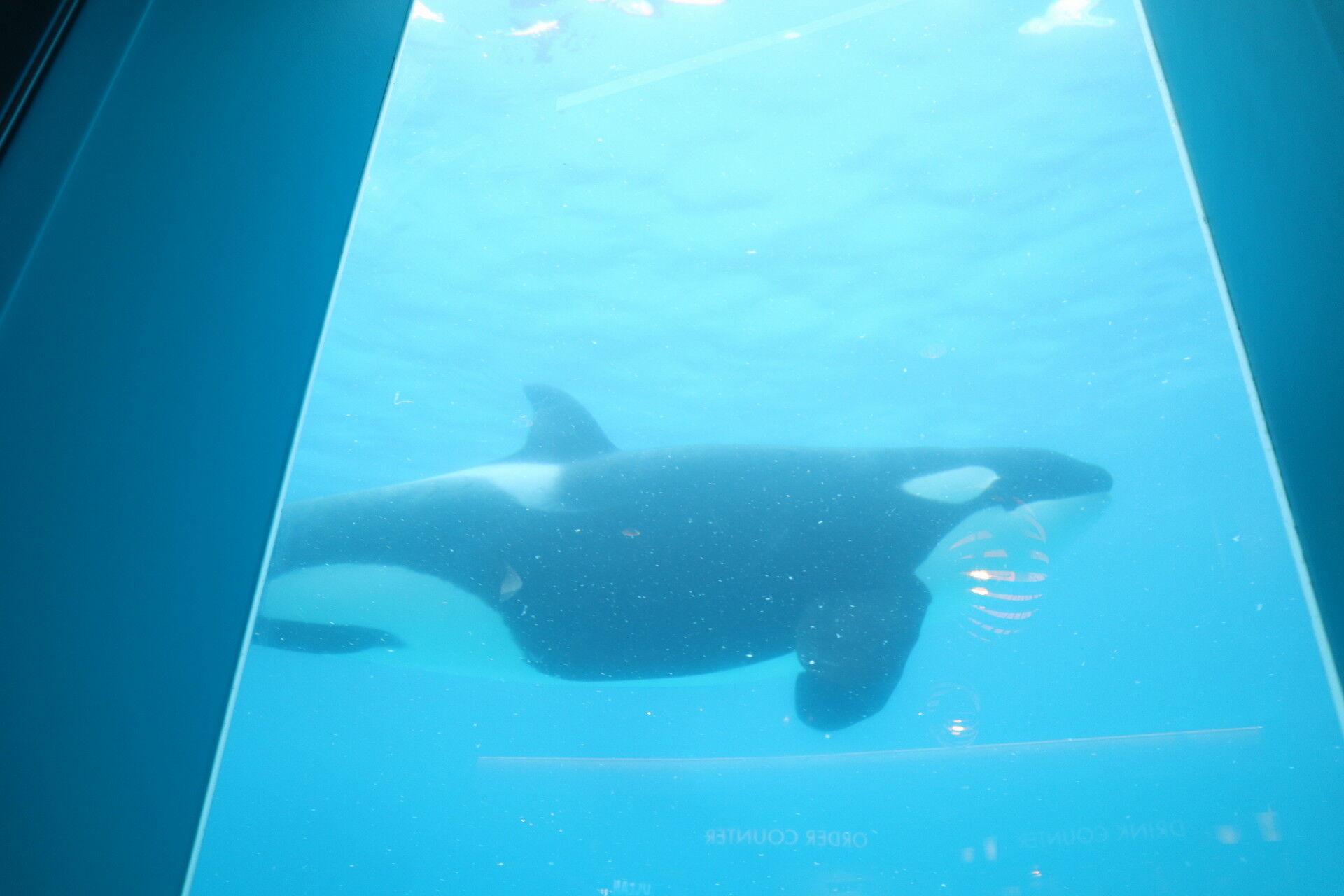 やはりそれなりの水圧があるためか、窓ガラスは細長く、シャチの姿を追えるほど大きくはありません。
