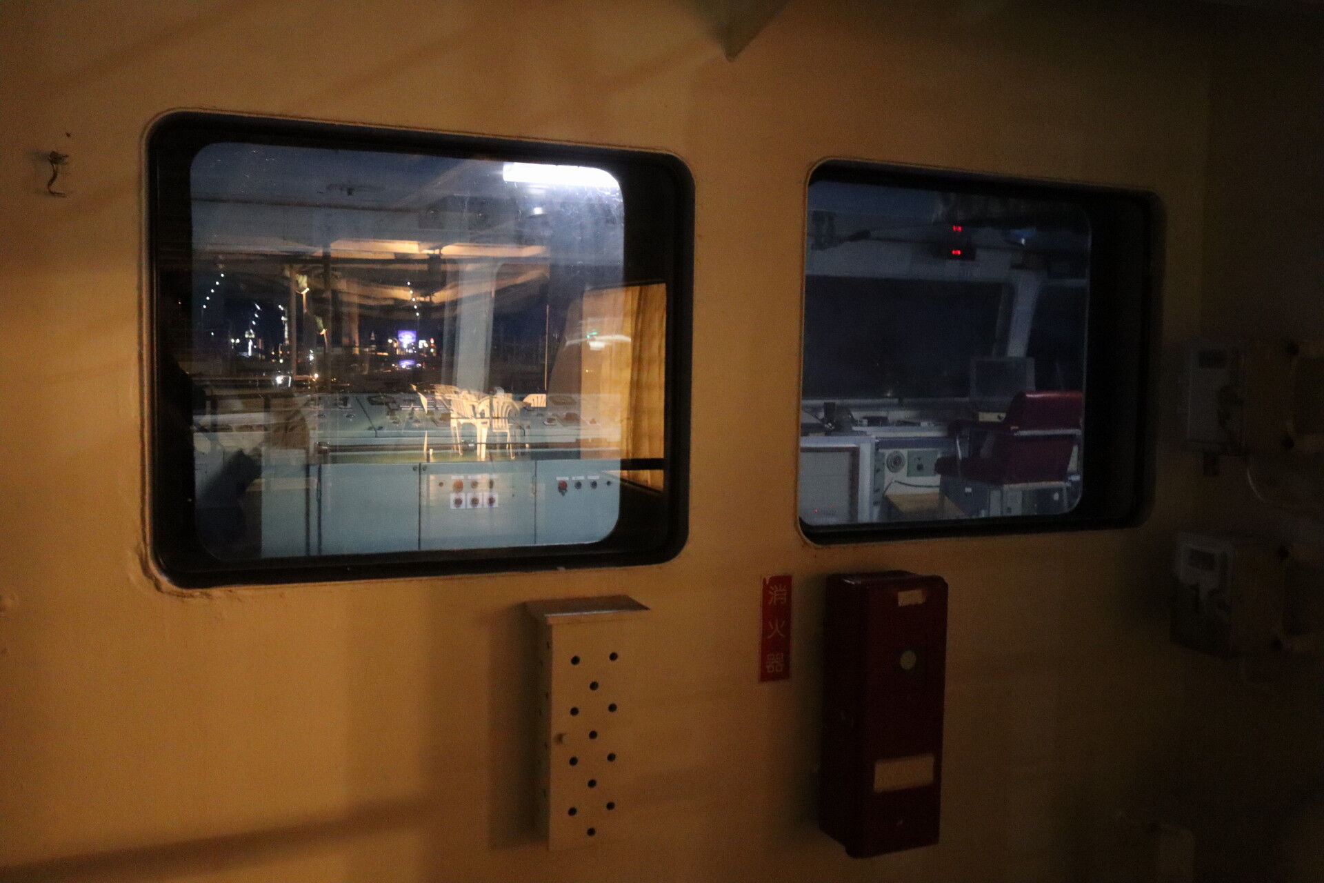夜間なので、前の窓の光が漏れないようカーテンが閉められています。