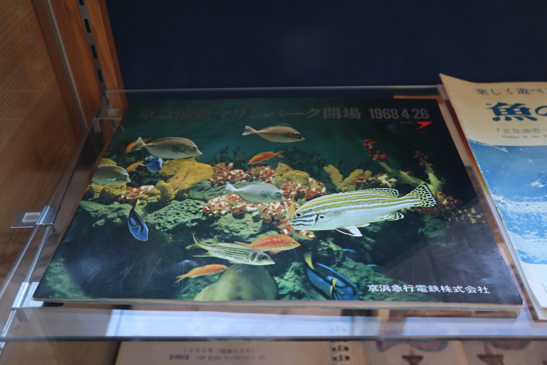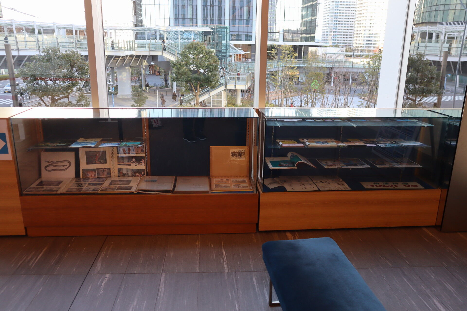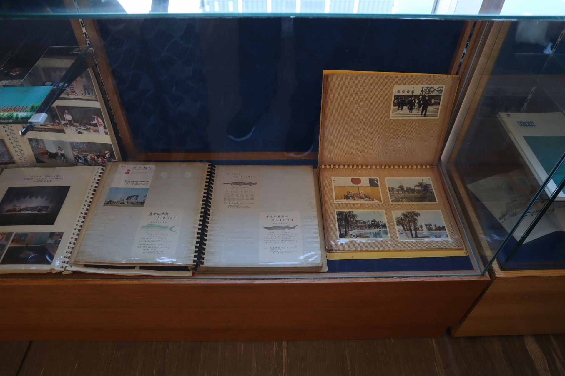 左のショーケースはアルバムやパンフレットが展示されています。