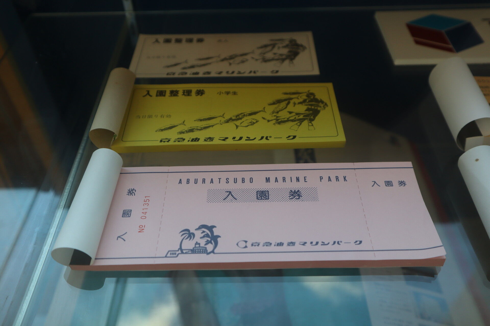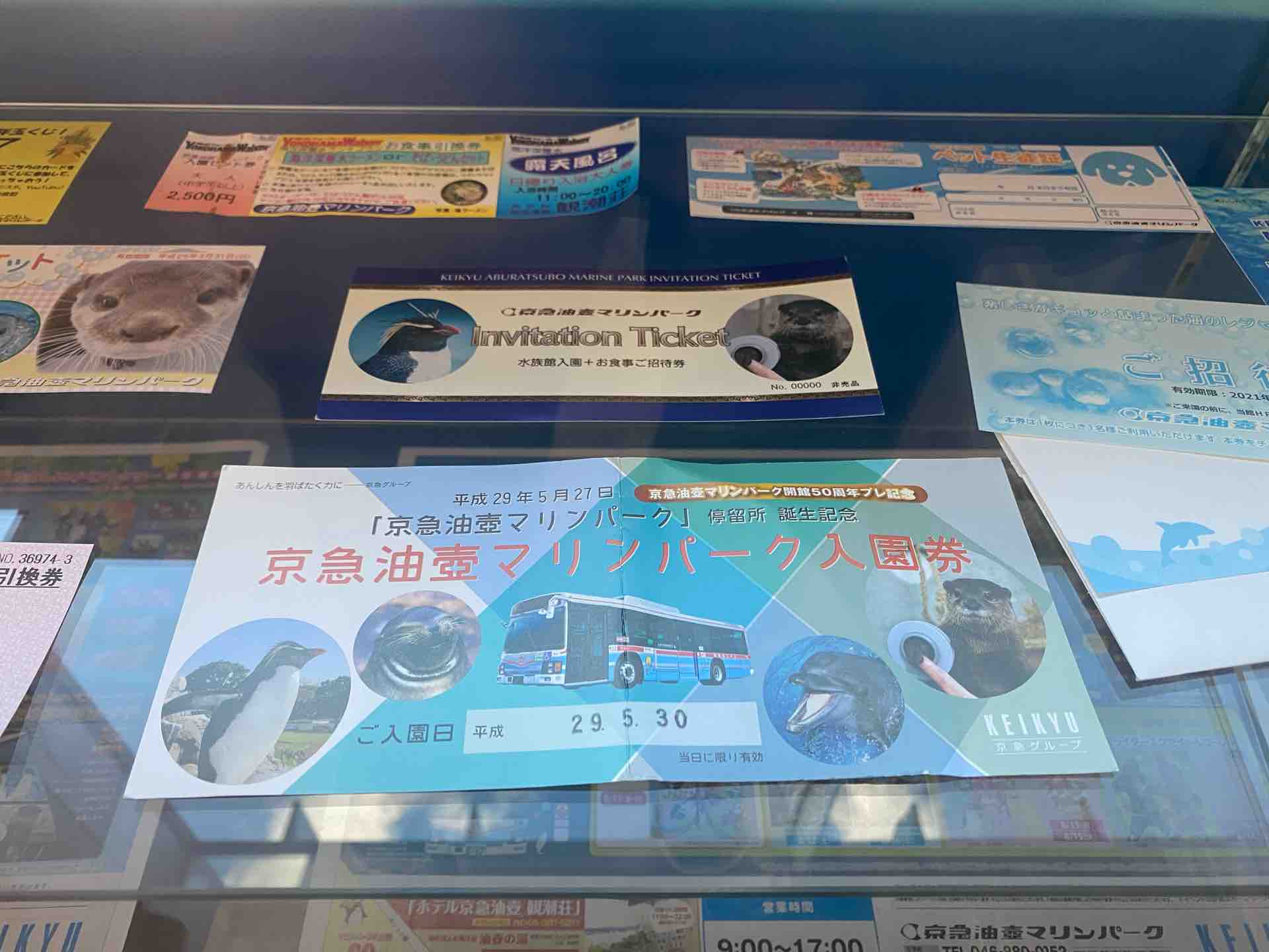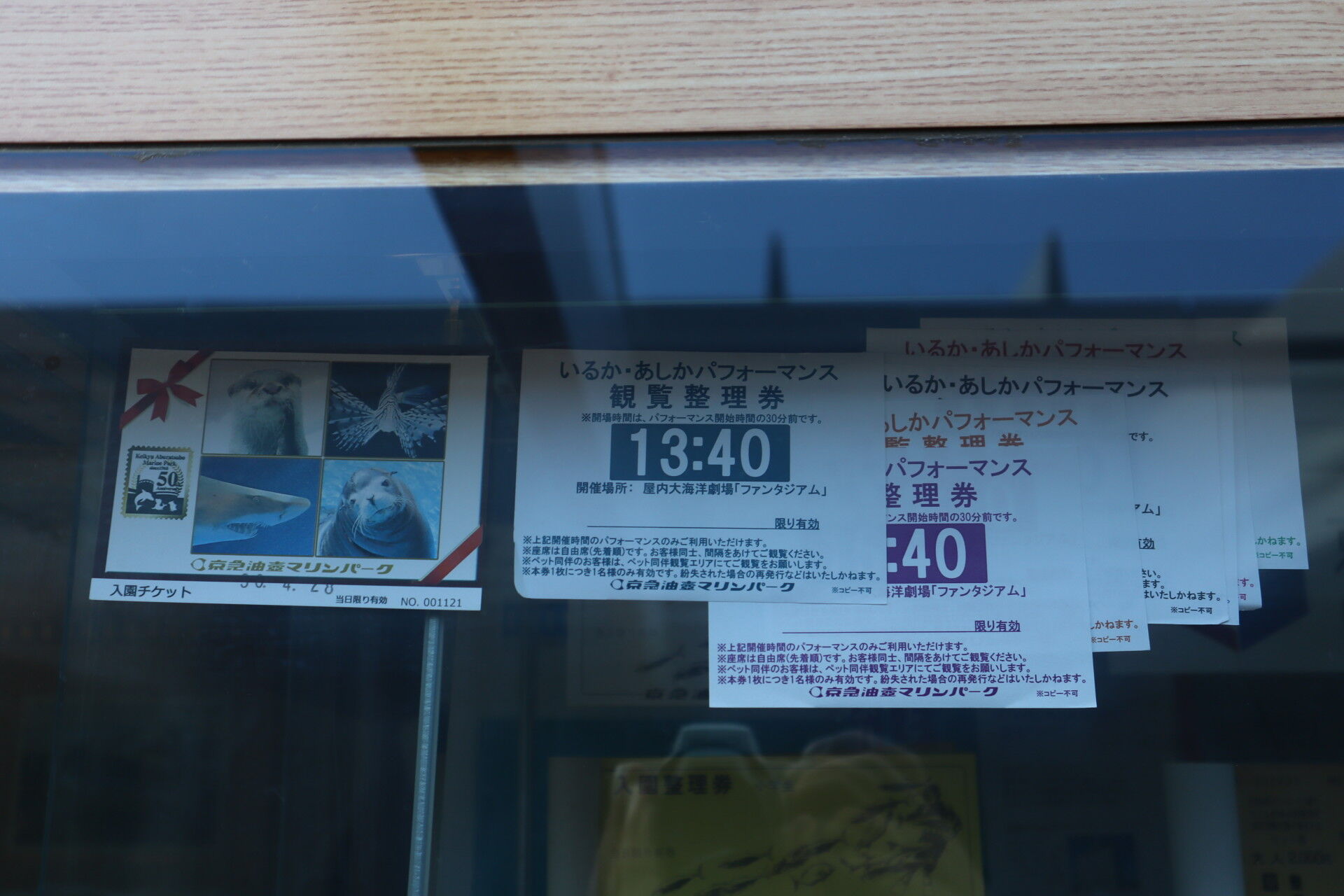 いるか・あしかパフォーマンス観覧整理券が展示物として陳列されていました。