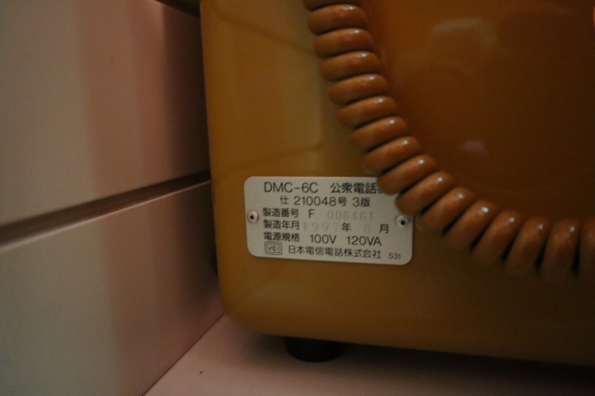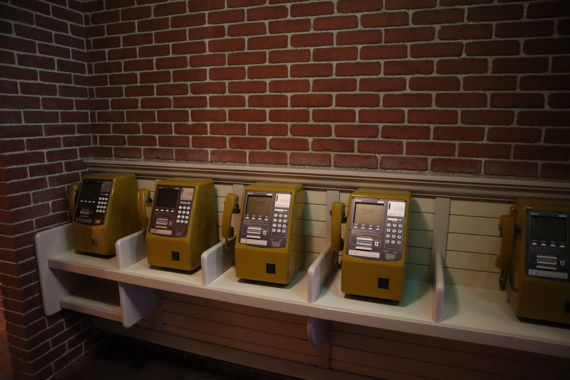男子トイレの奥の女子トイレに向かう通路にあって、危うく見逃すところで勝田さんにそこに電話あったよって言われて確認。