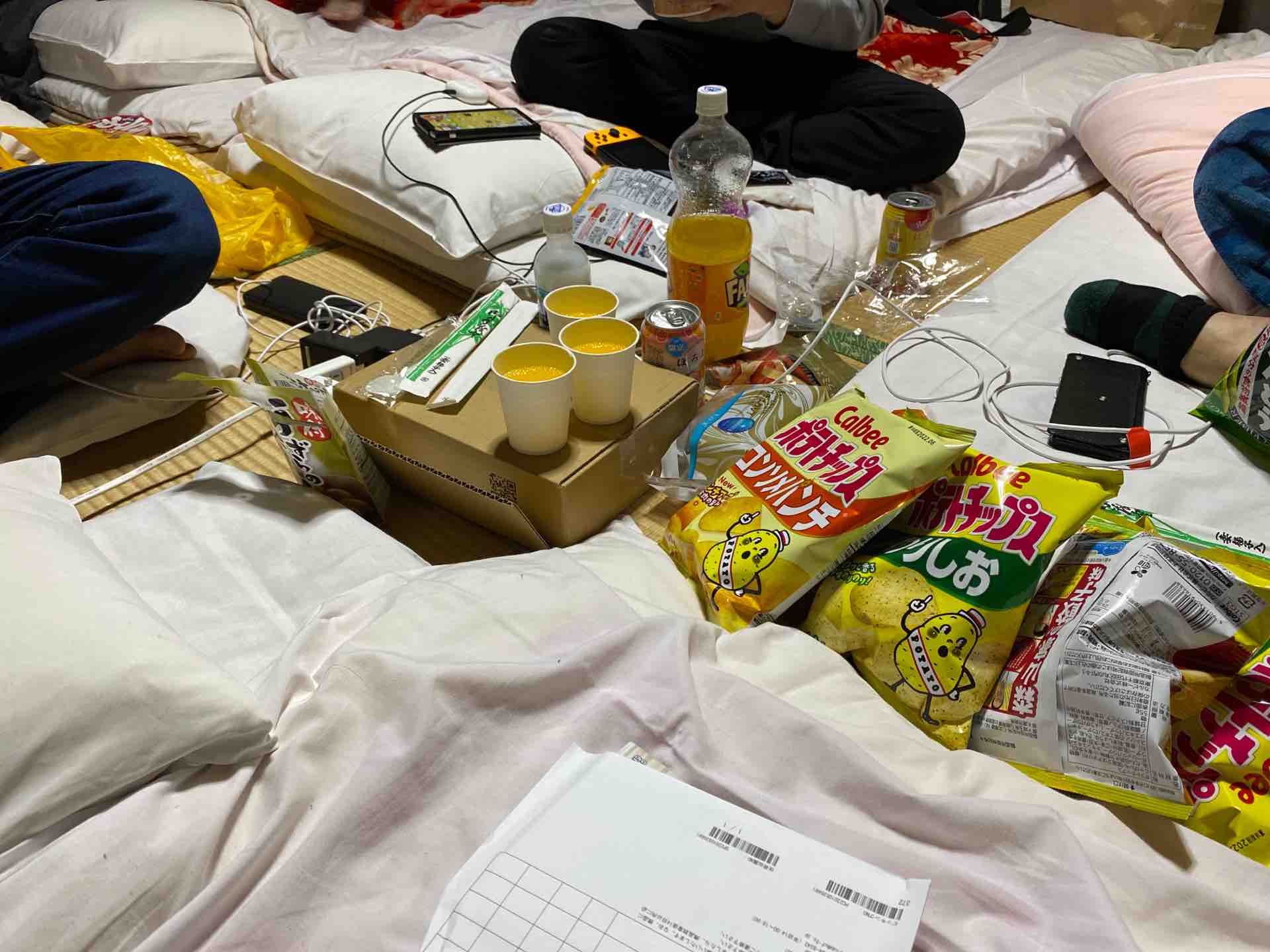 部屋に着いたら一斉にお菓子広げて食べ始めるし……