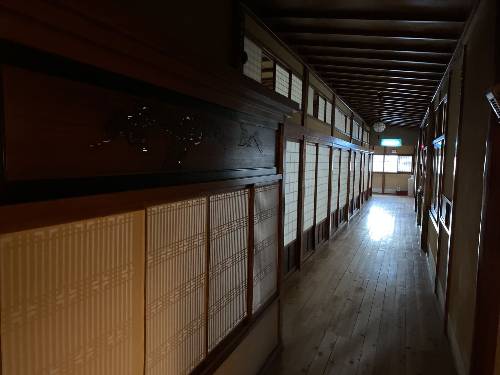 木造建築の長い廊下。