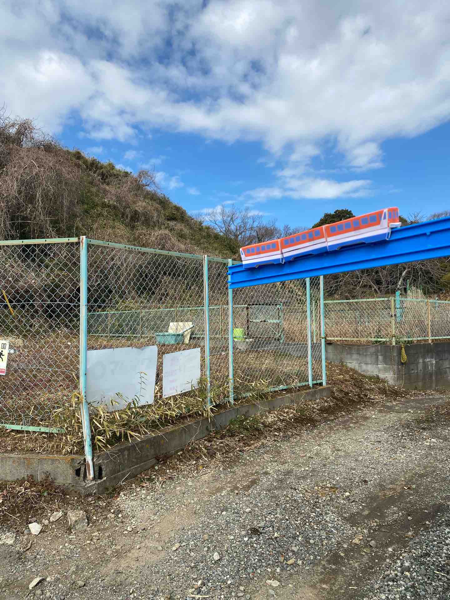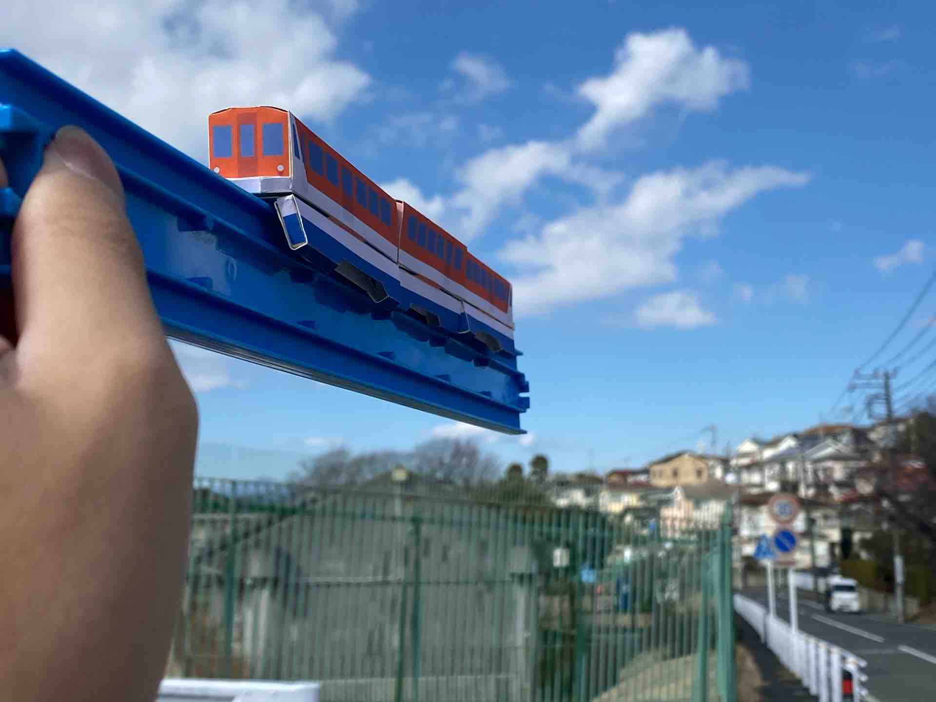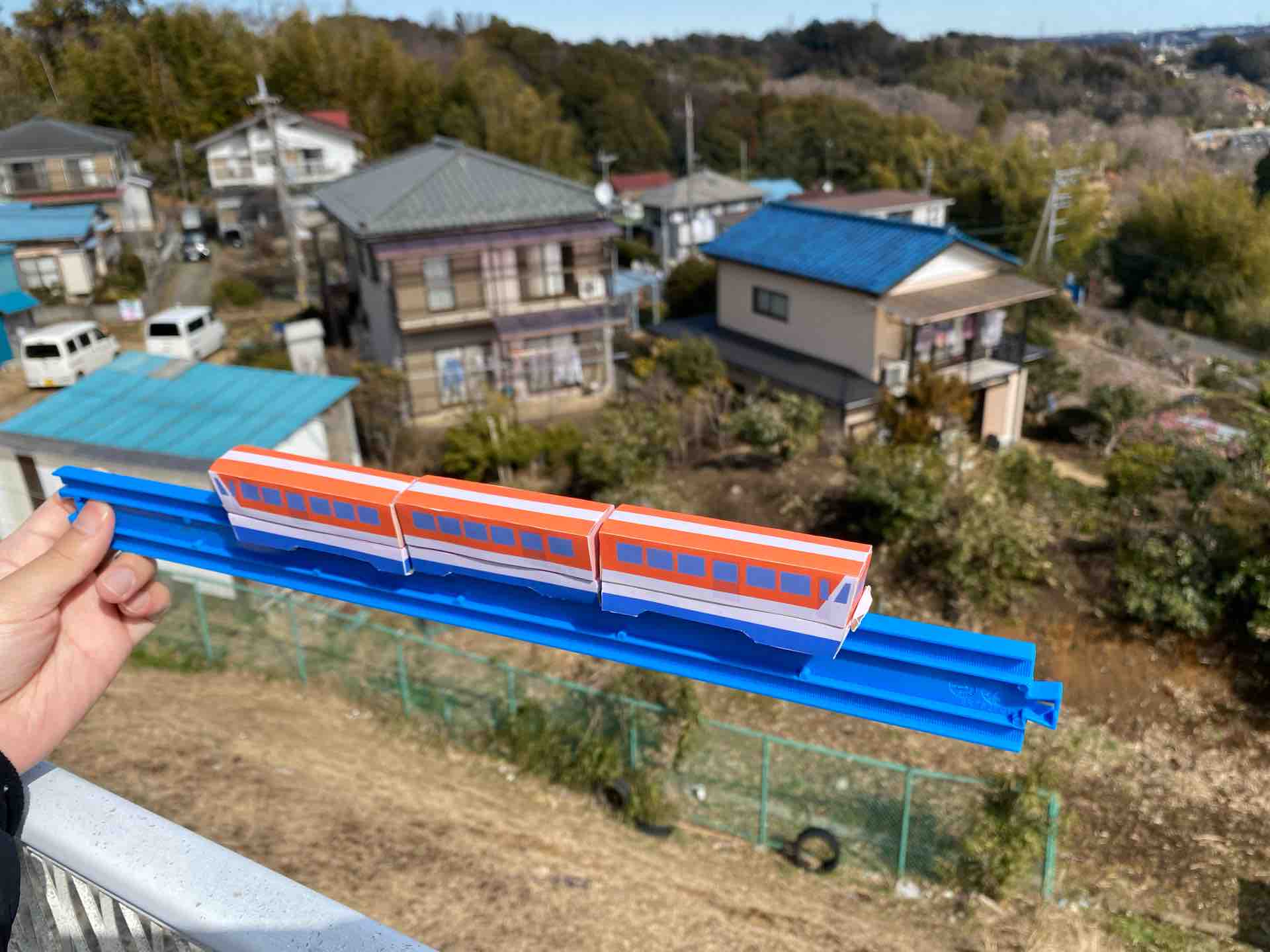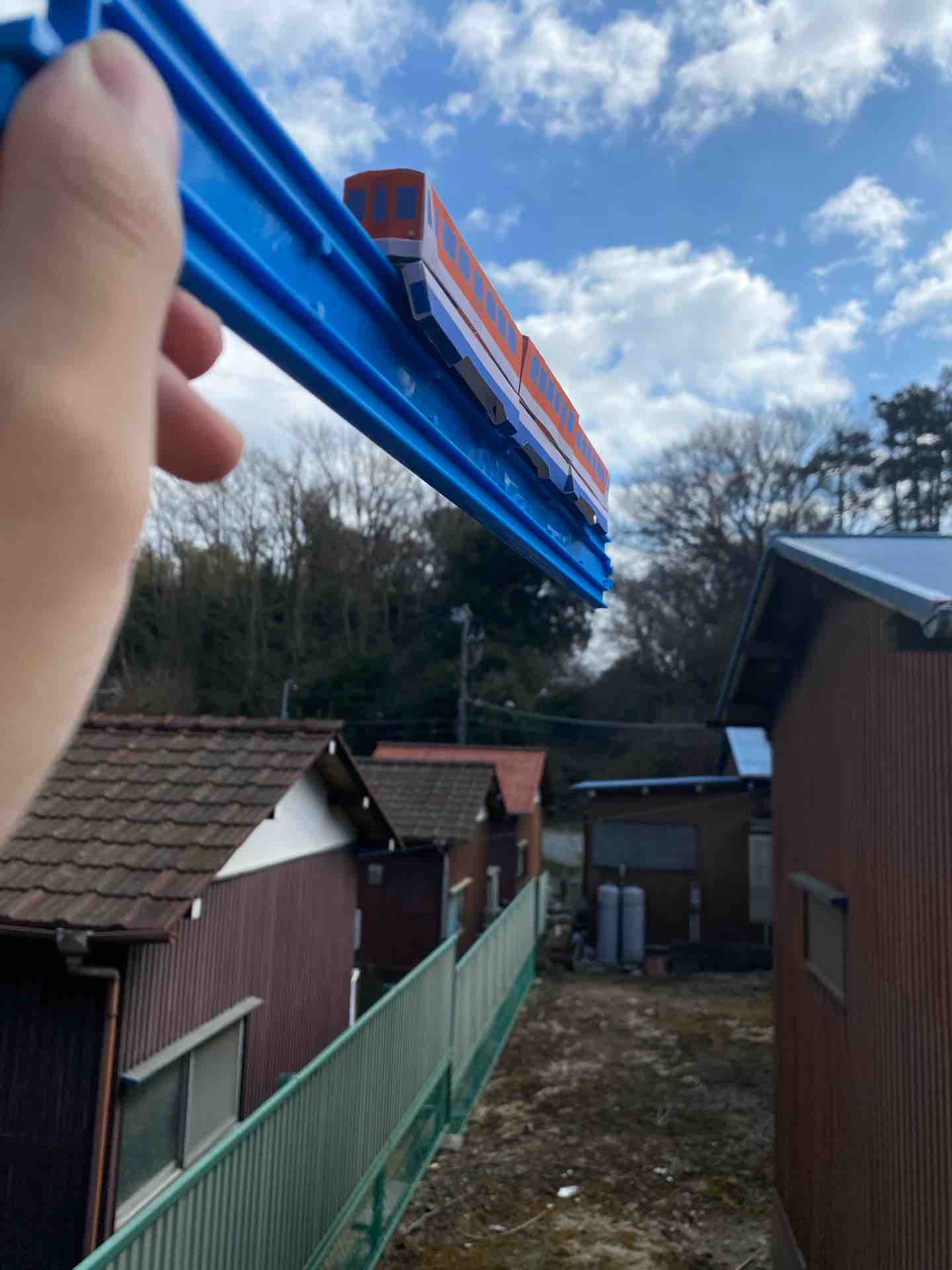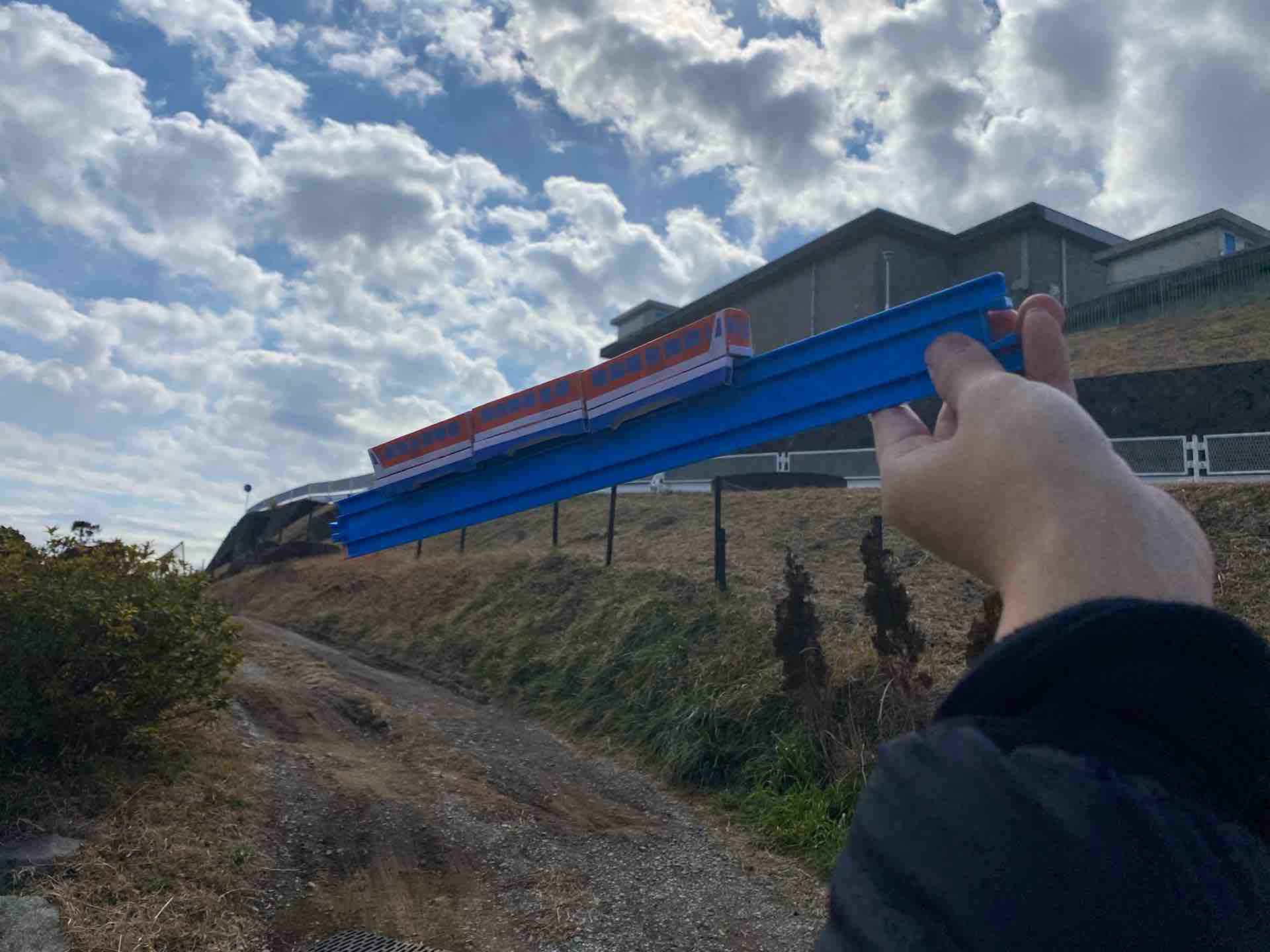 モノレールは緑フェンスの左の駐車スペースみたいな区画を走っていることが分かりました。