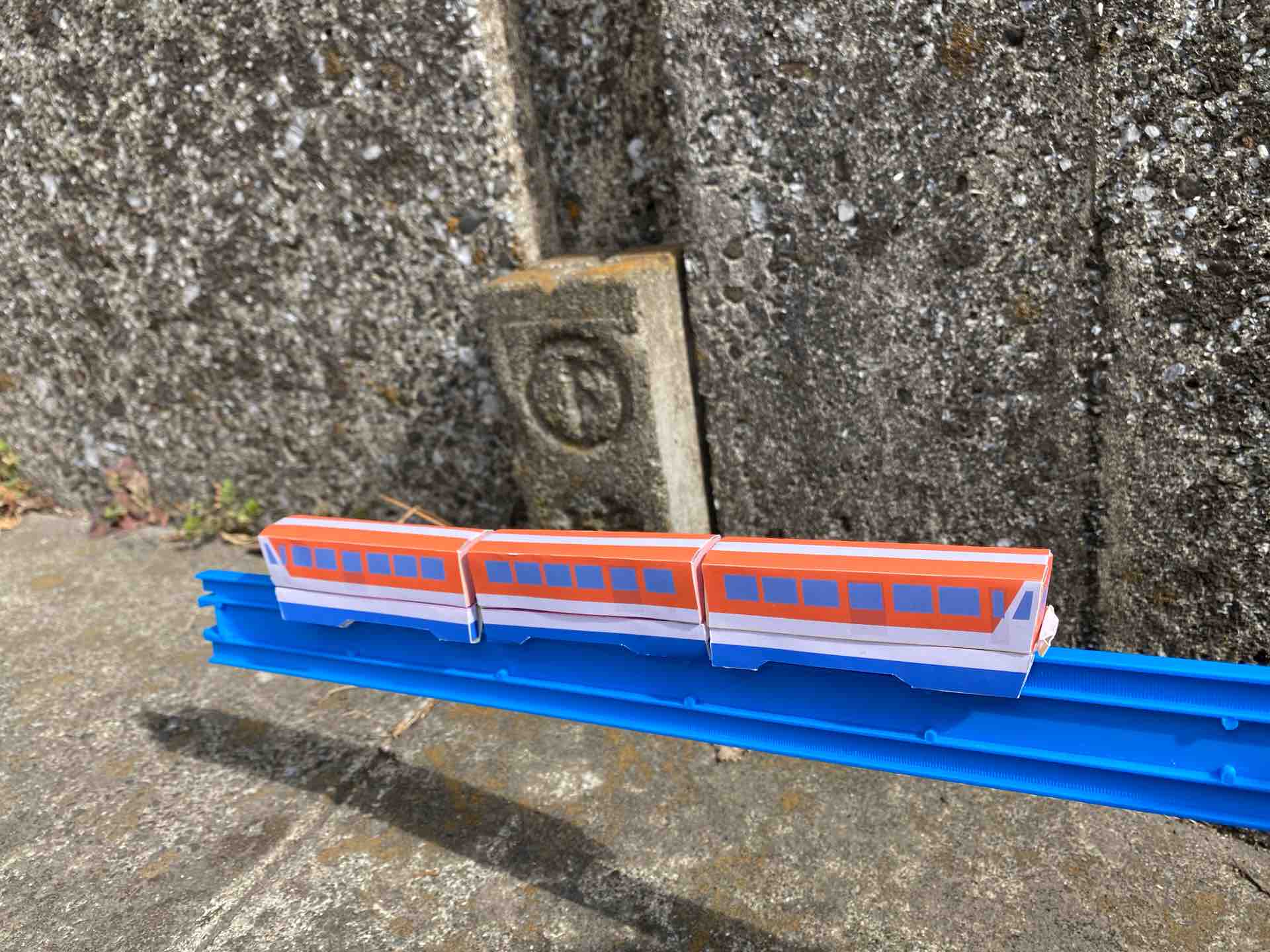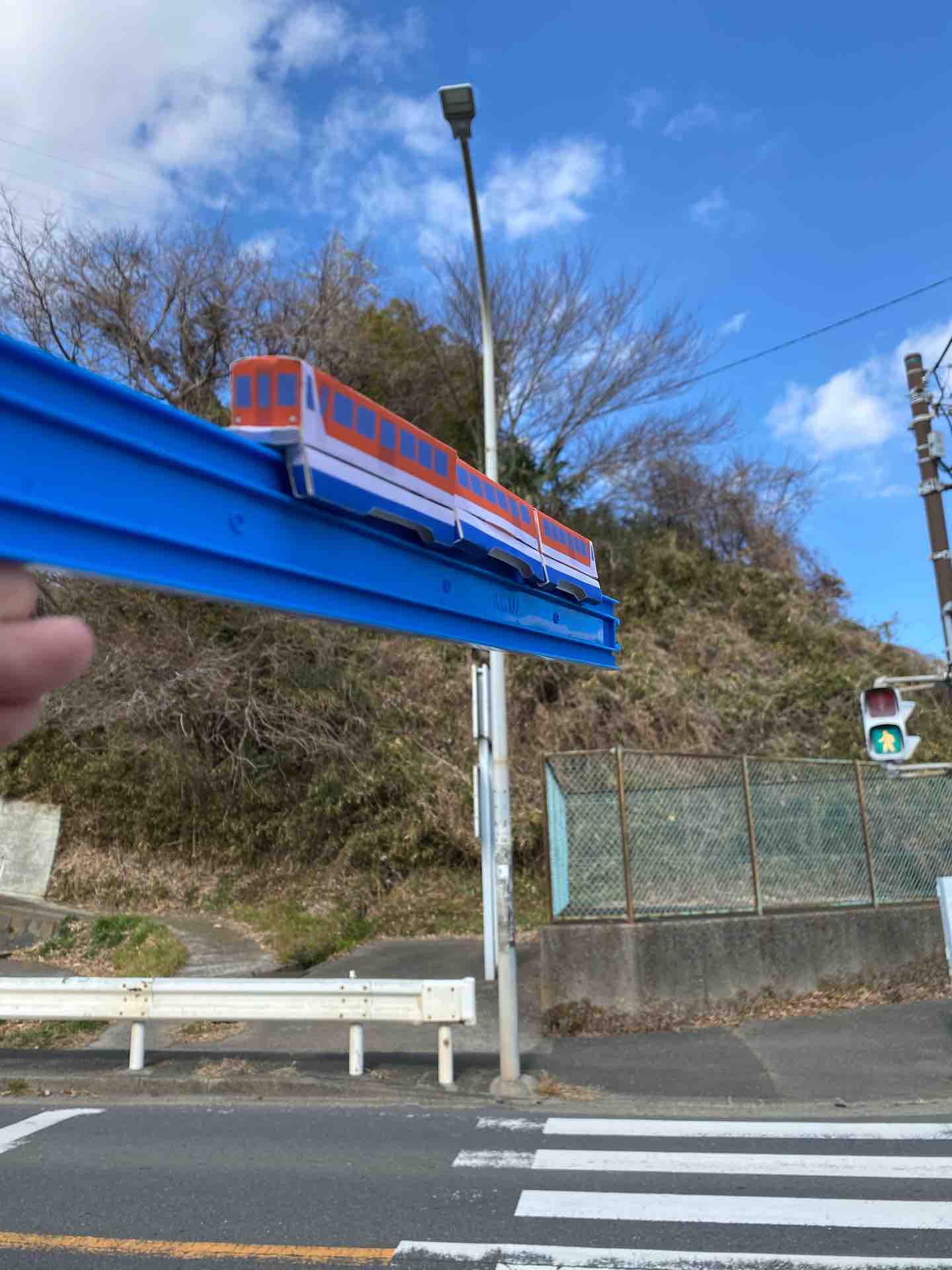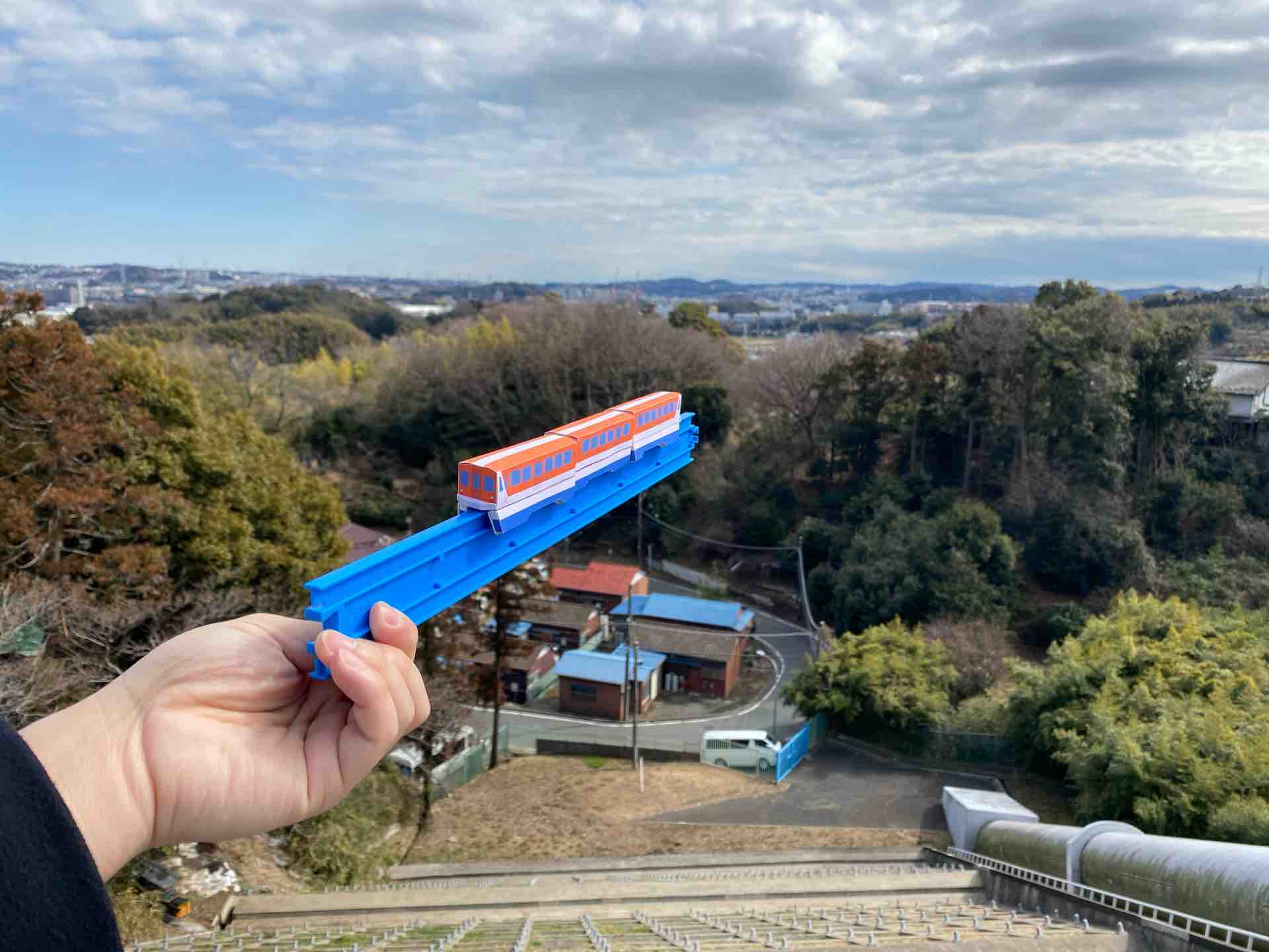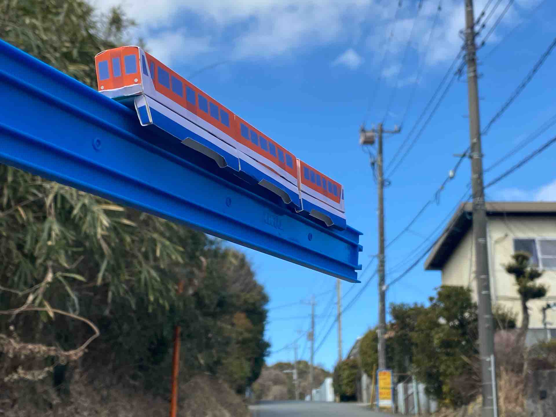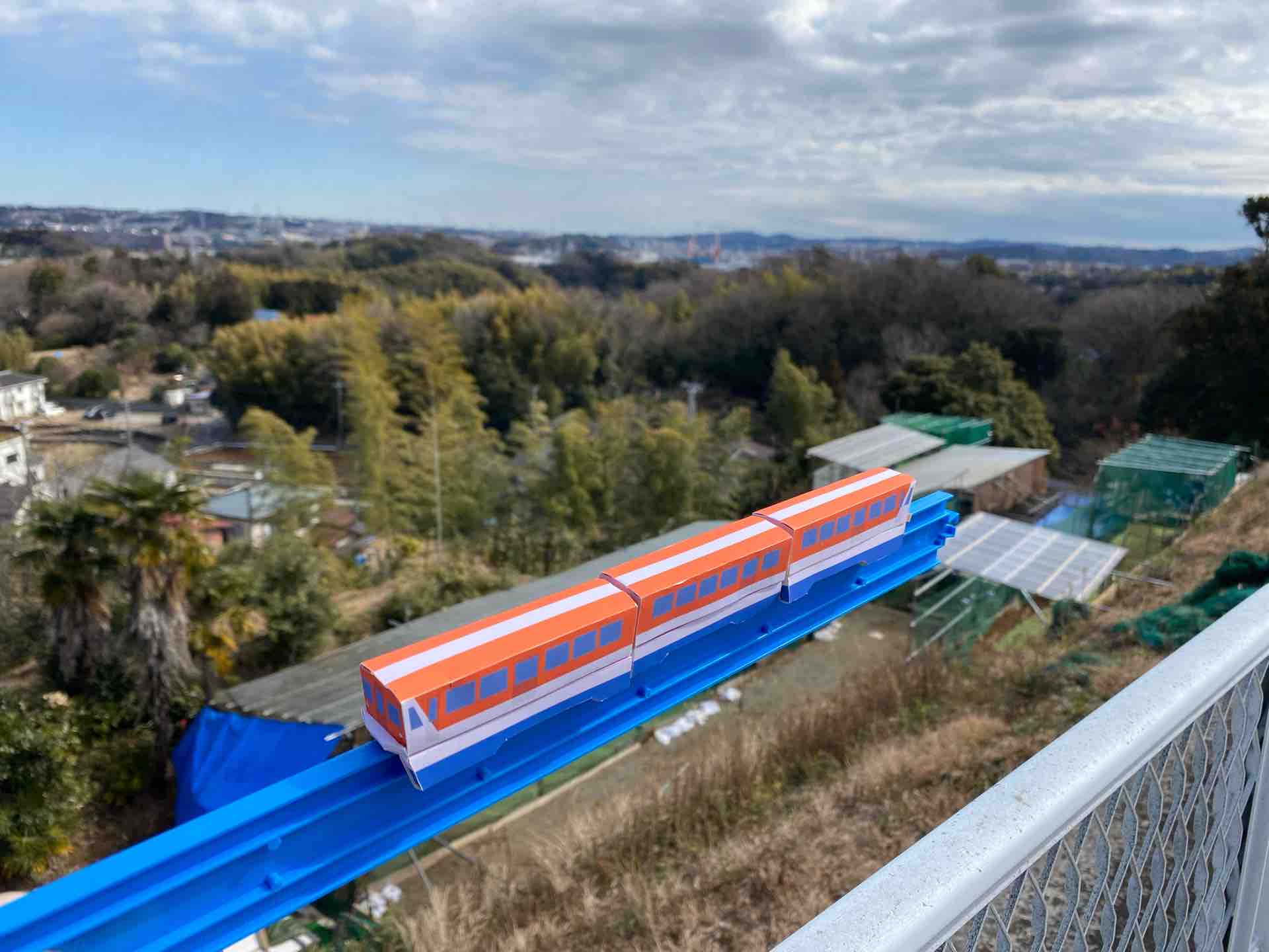 モノレールは緑フェンスの左の駐車スペースみたいな区画を走っていることが分かりました。
