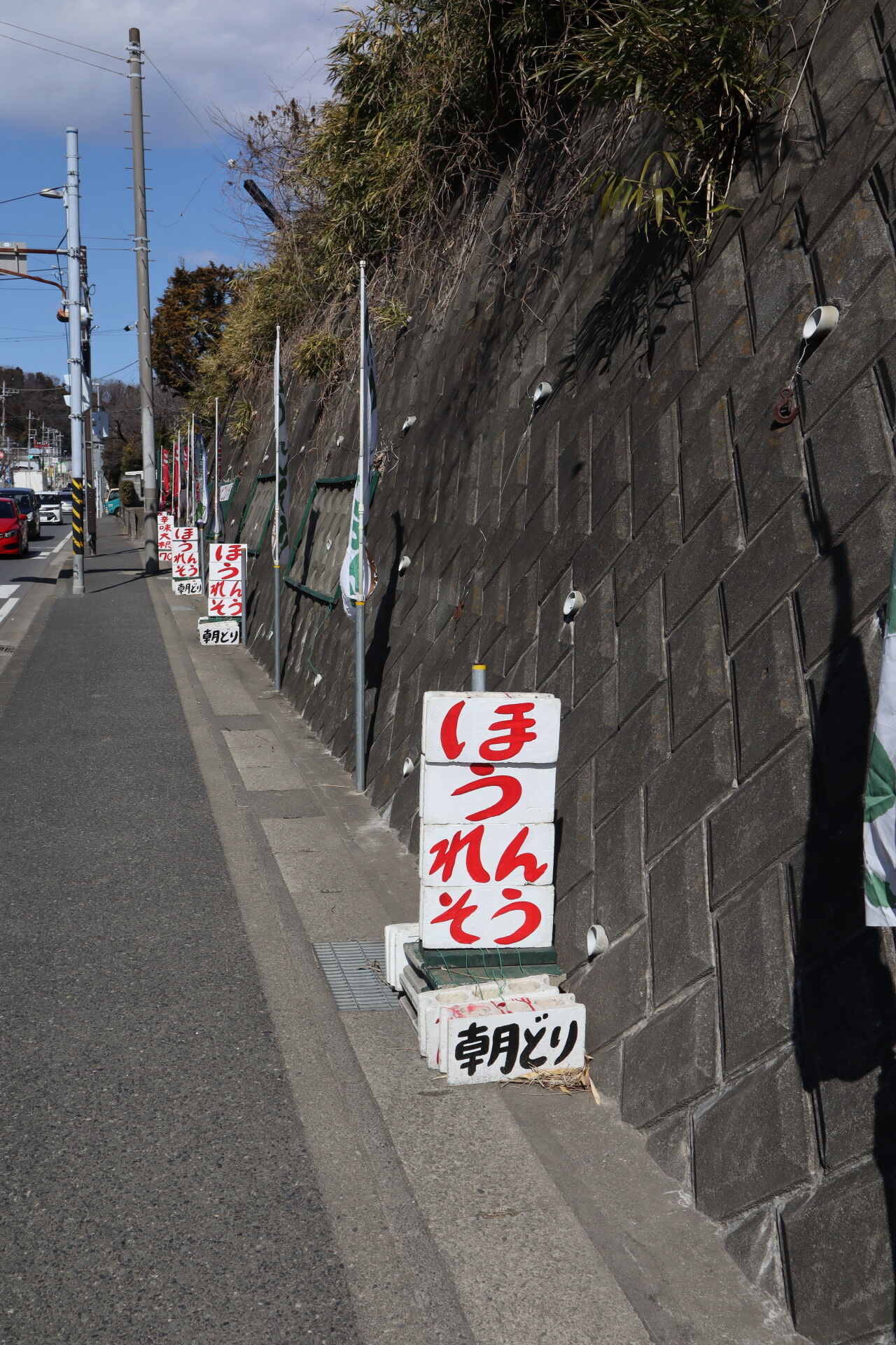 ここの野菜の直売所、手書き看板が沢山あって、どうやら有名なところらしい。