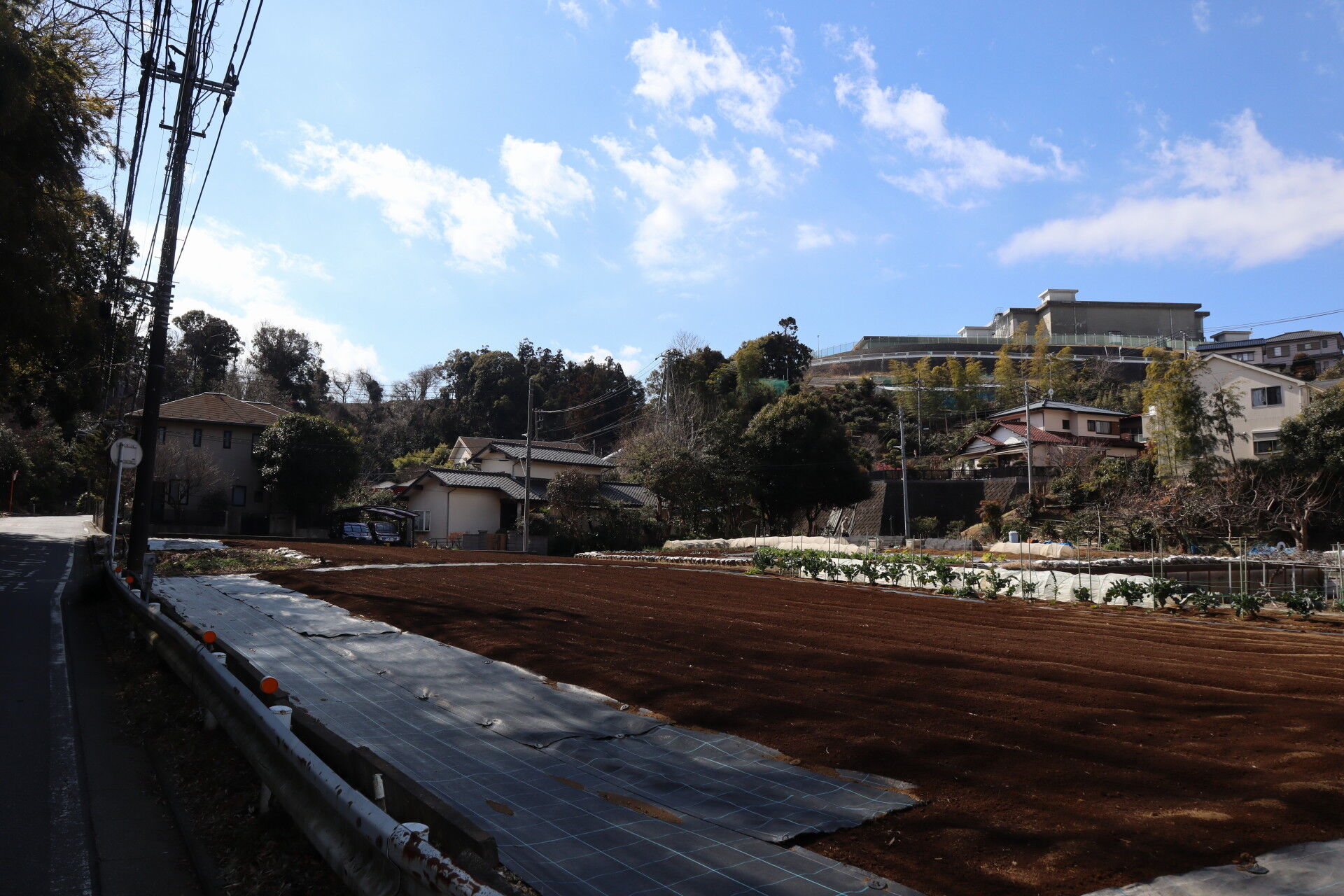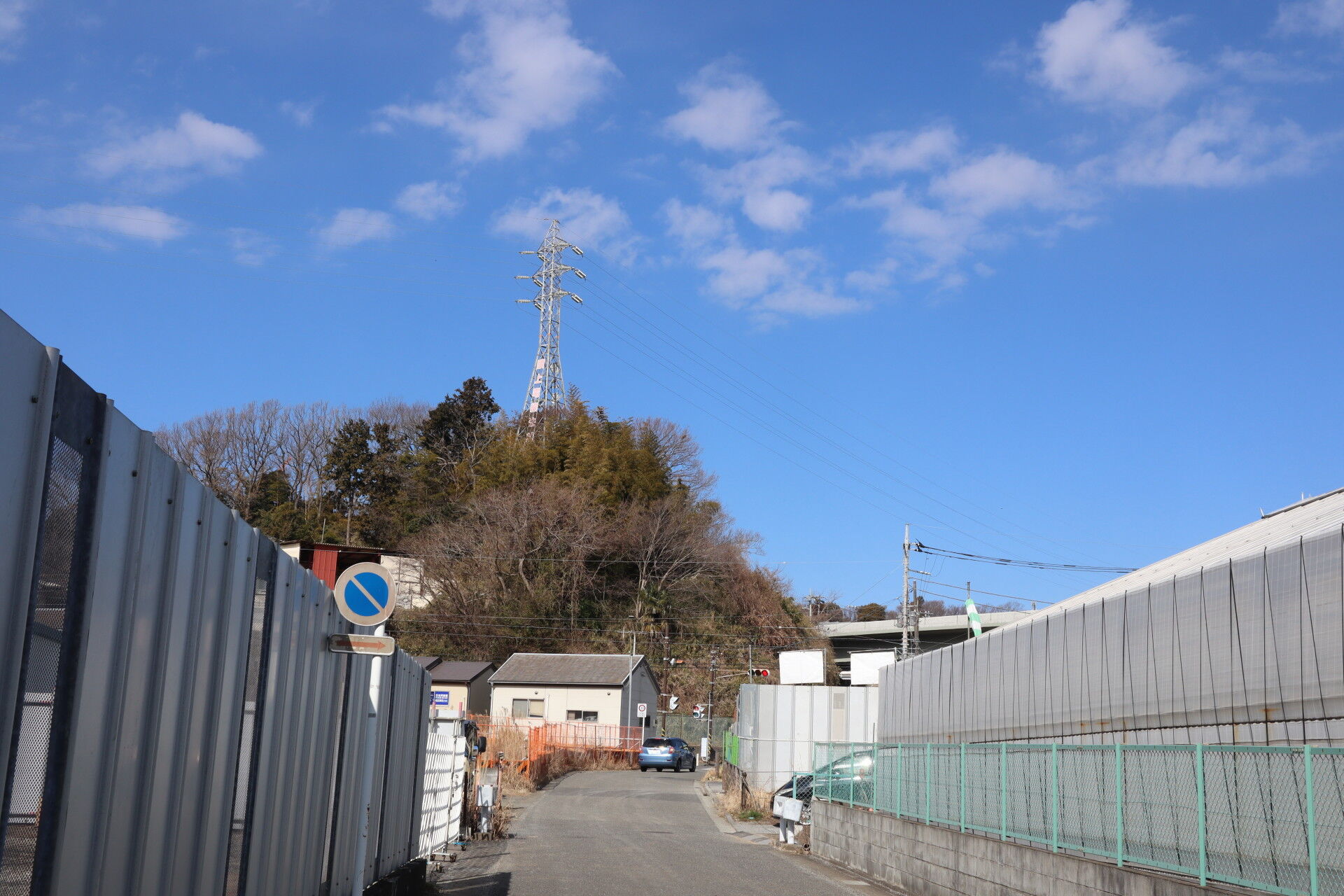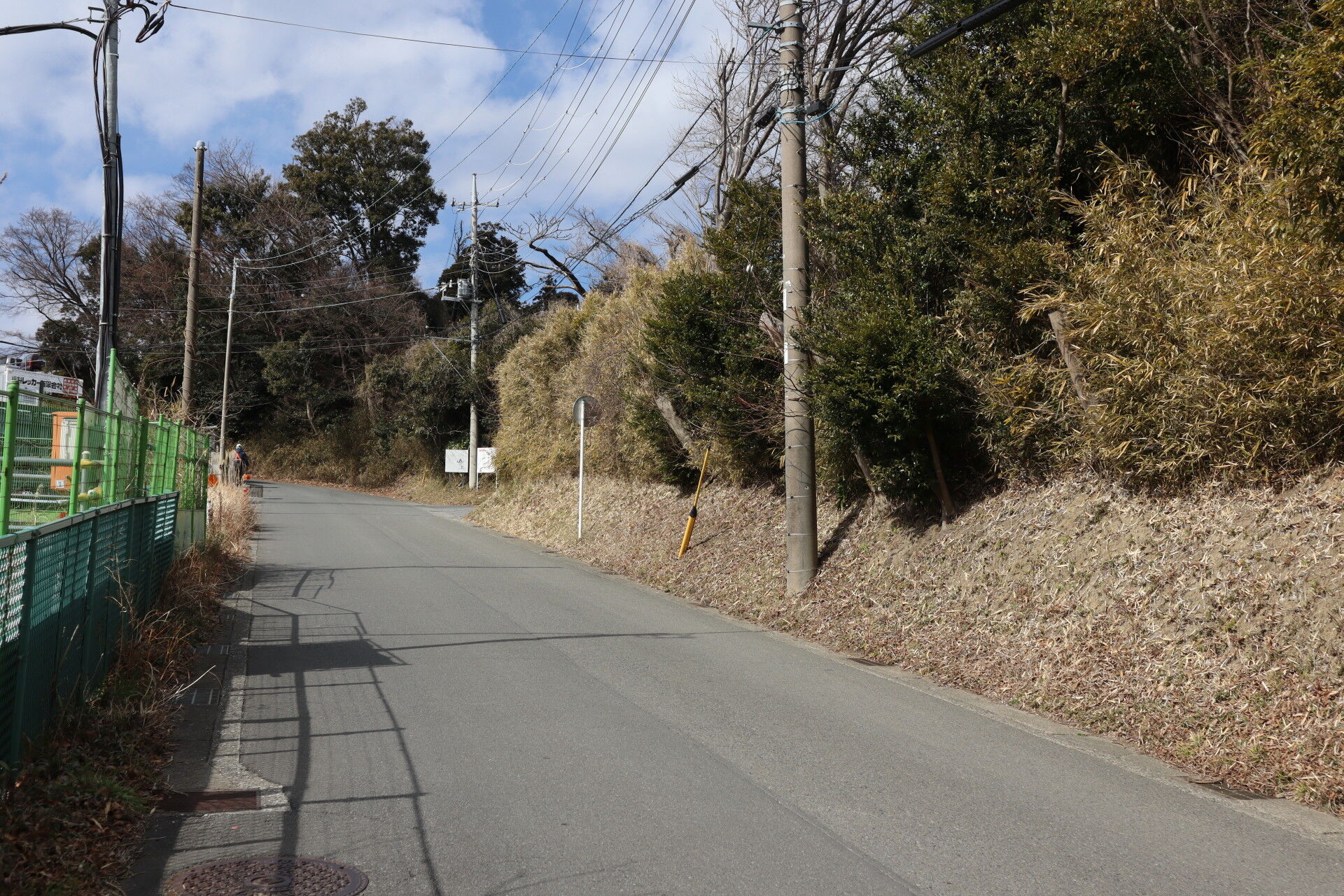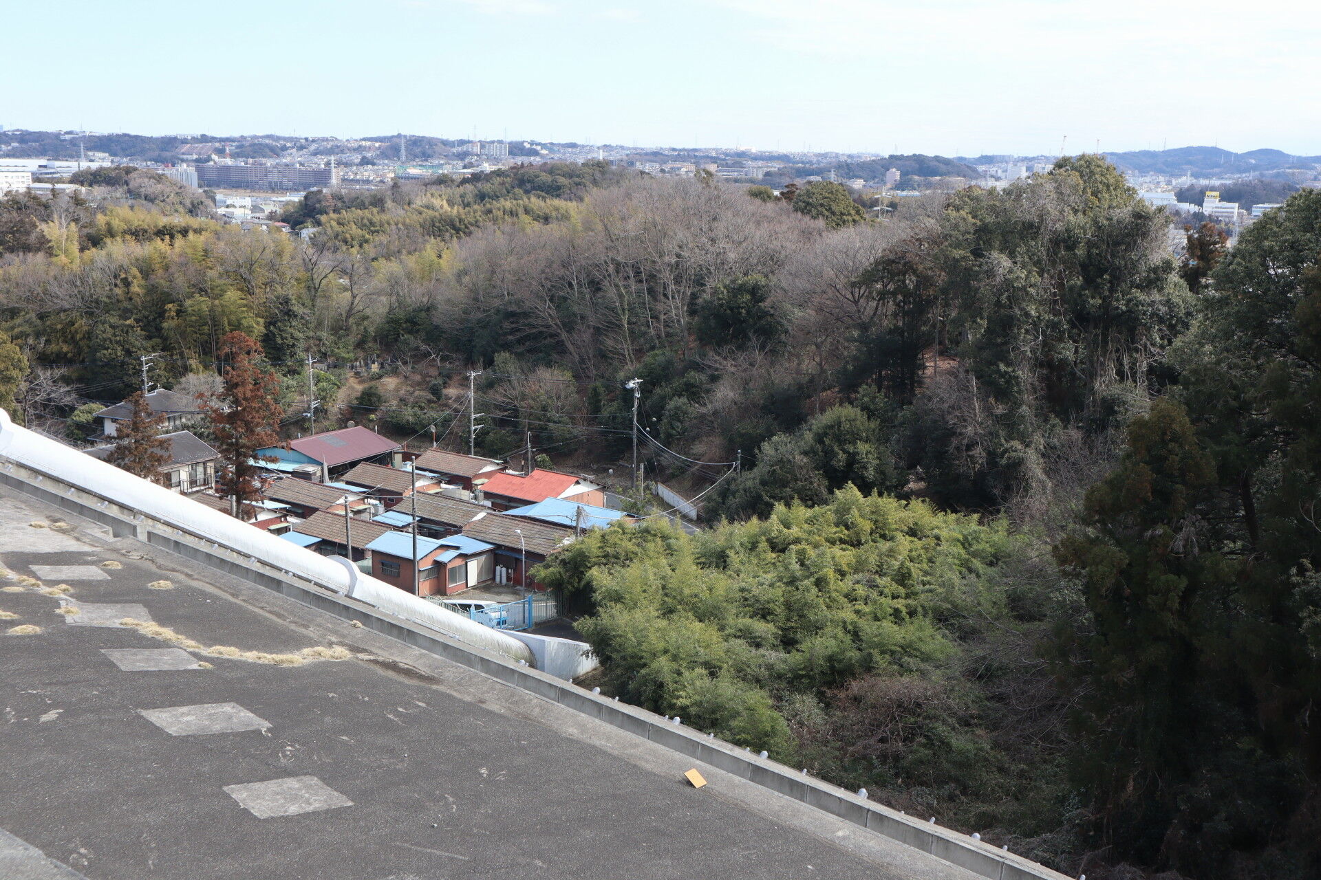 下から見るとここがモノレールの跡地。右が浄水場、左が大船駅方面です。