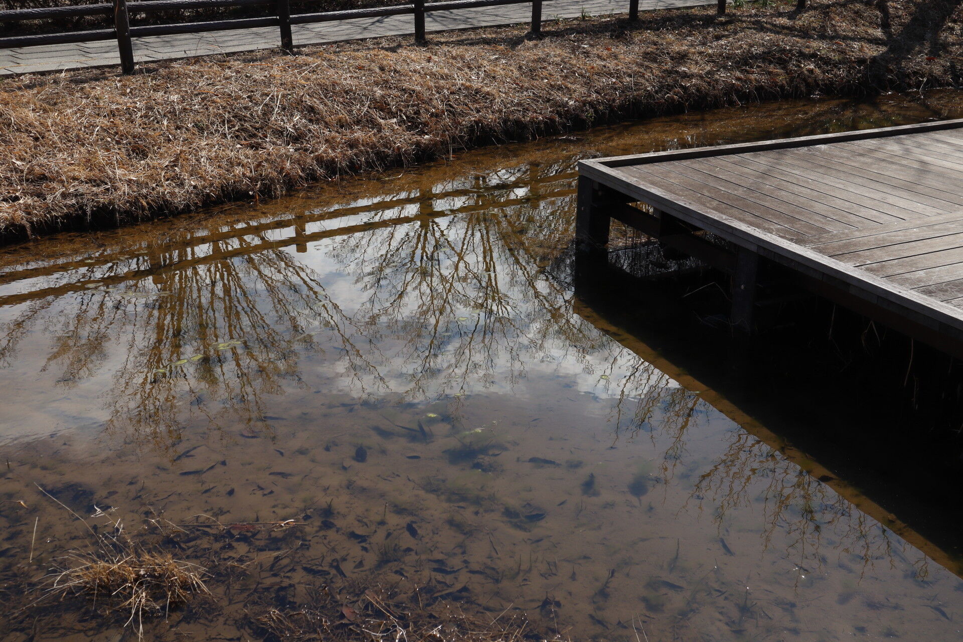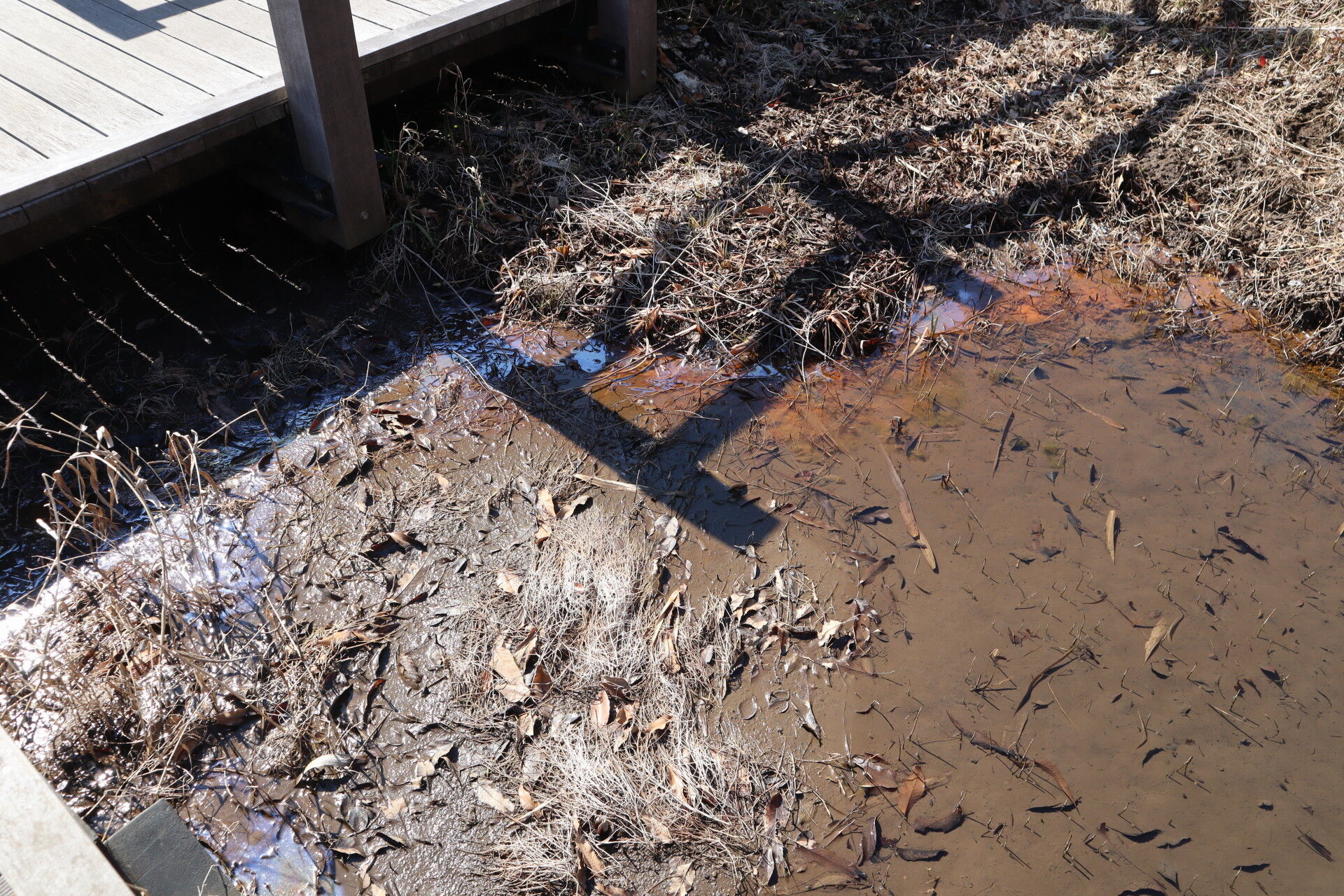 歩いてみると小魚が泳いでいるのも見えました。あっという間に隠れてしまいましたが…。果たして何が泳いでいるのでしょう。メダカ?