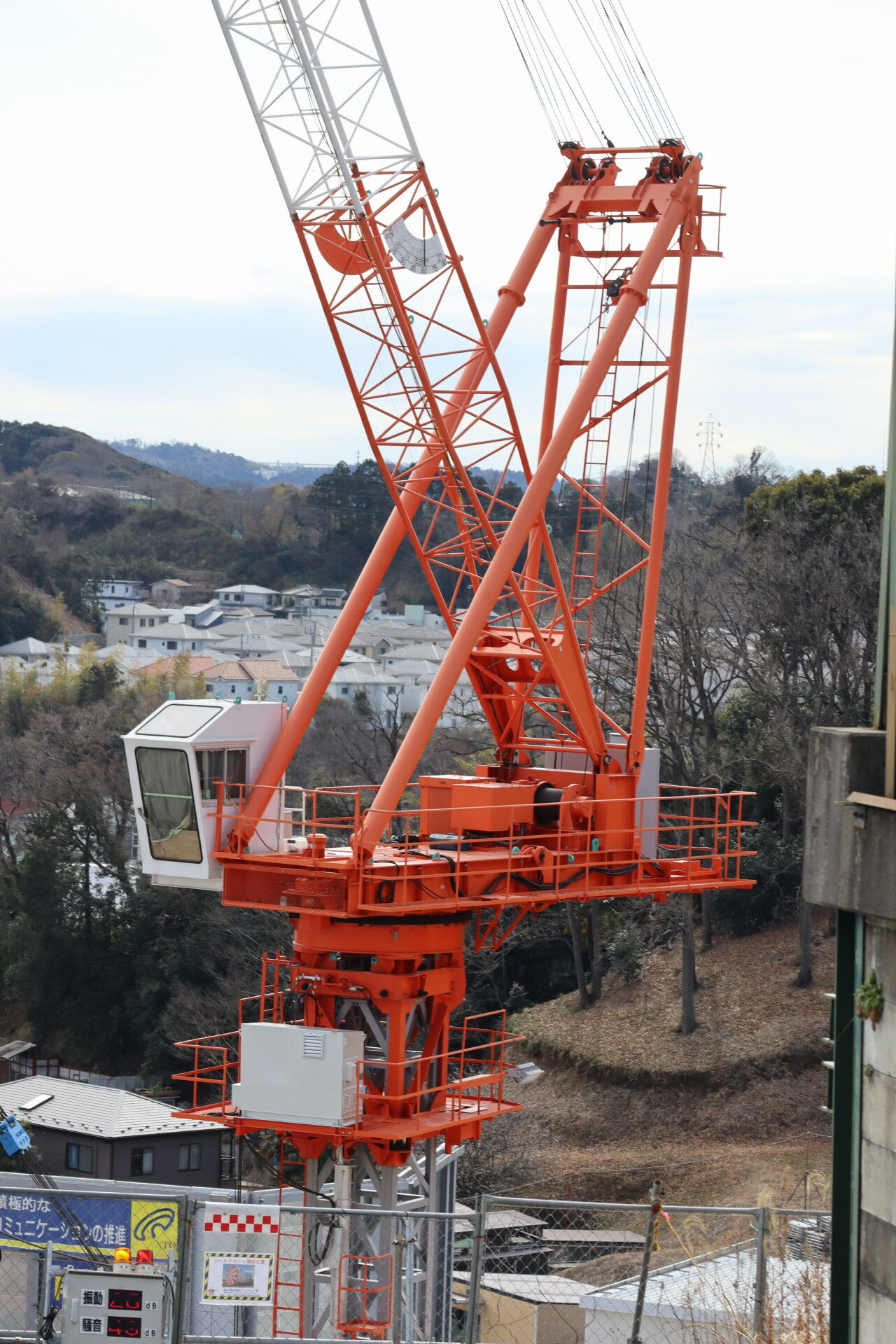 ジブクレーンの操縦席をこんな近くで見れることありますか?地形の利ですね。