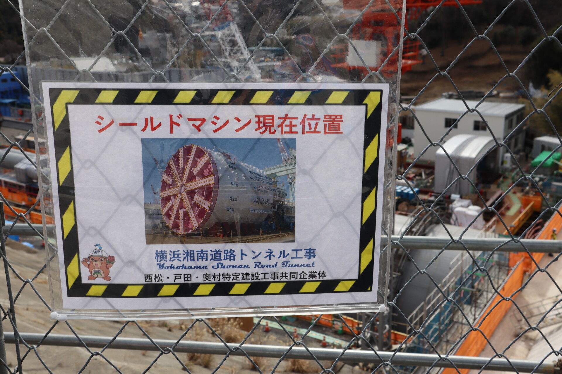 途中、横浜環状南線のシールドトンネルの基地がありました。
