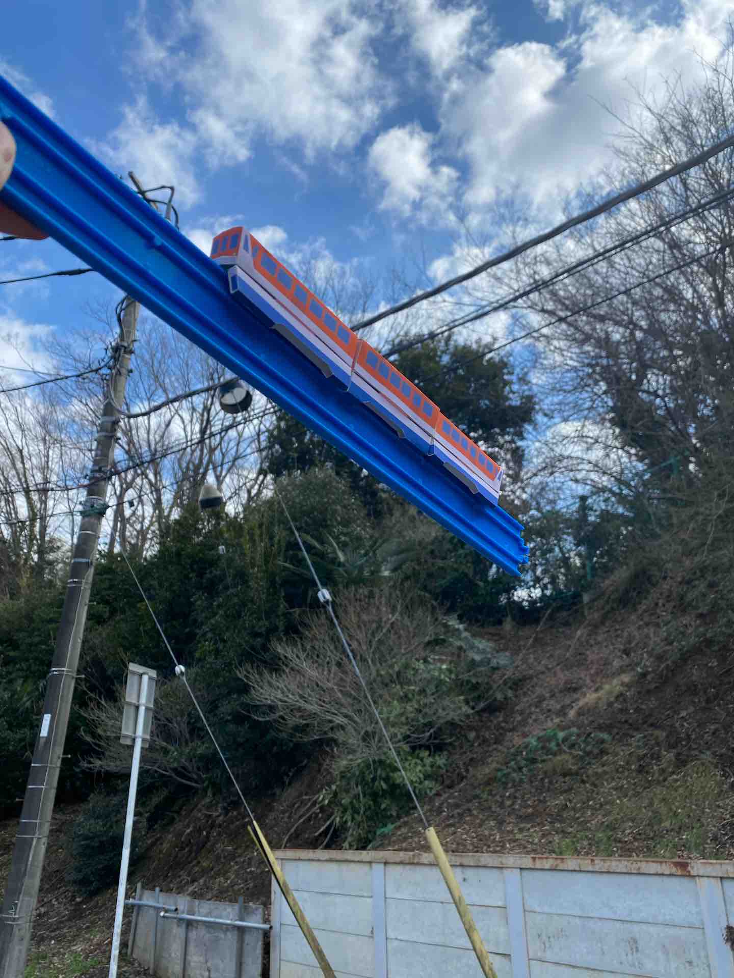 モノレールの線路を避けていたために、電線が一か所、低くなっているんです。